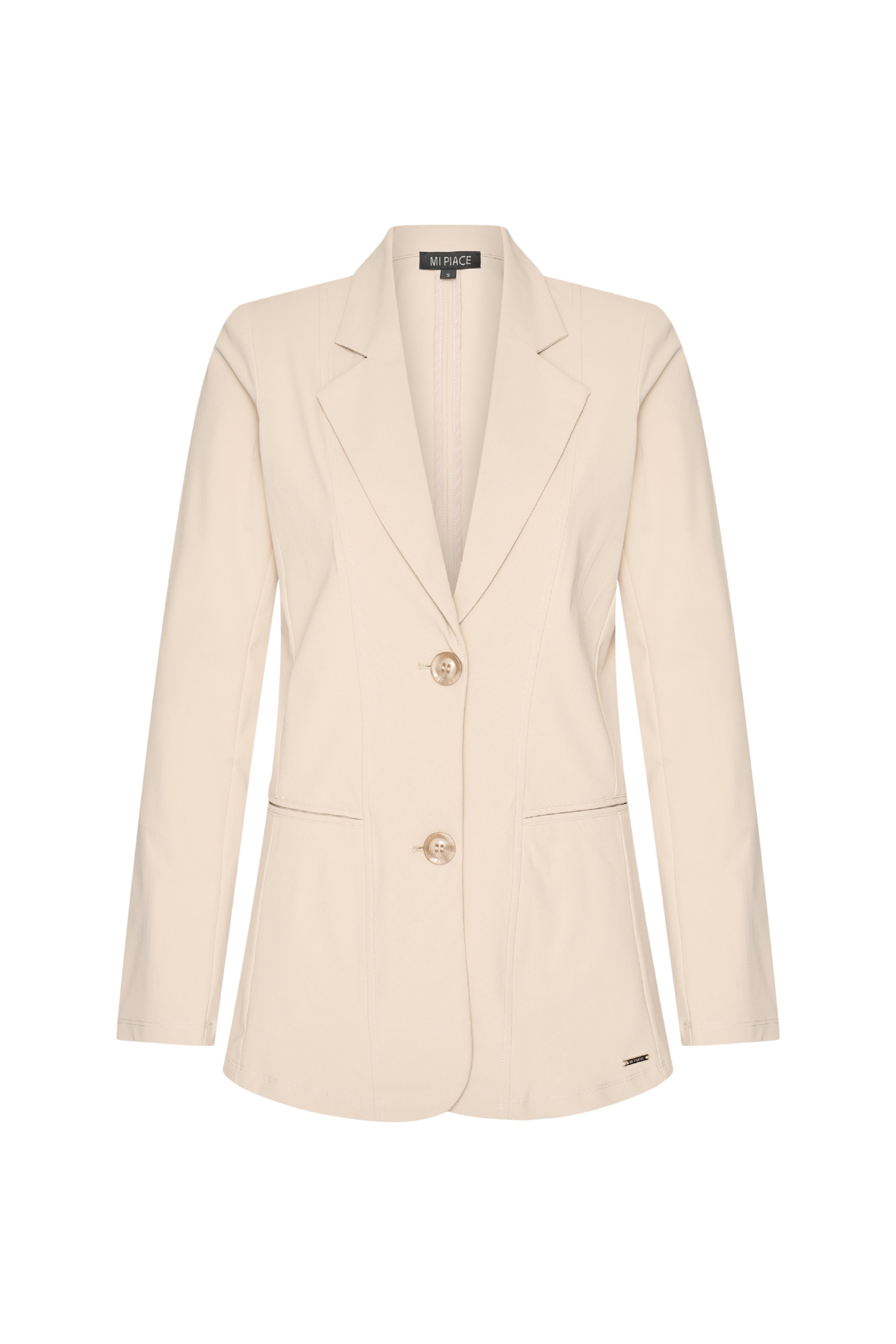 De Mi Piace Travel Blazer Beige is een stijlvolle essential met een moderne uitstraling. Dankzij de flatterende pasvorm, soepele stretchstof en verfijnde details is deze blazer ideaal voor zowel werk als vrije tijd. Comfort en klasse in รฉรฉn.