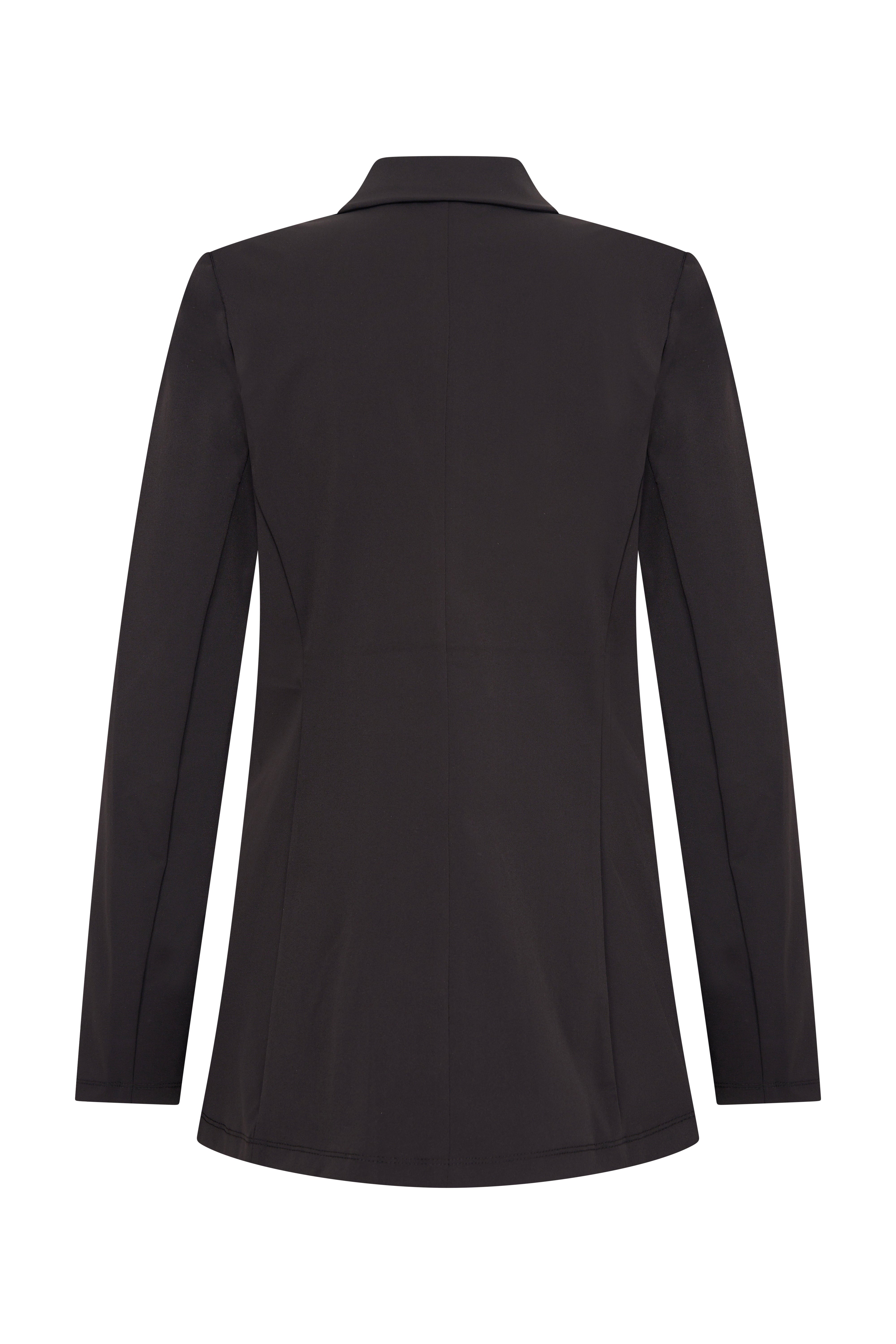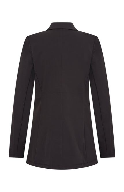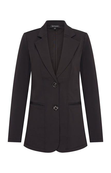 De Travel Blazer Black van Mi Piace is een elegant, lang model met een aansluitende pasvorm. Gemaakt van comfortabele travelstof die kreukvrij en soepel is. De twee knopen en rechte belijning geven deze blazer een stijlvolle, tijdloze uitstraling.