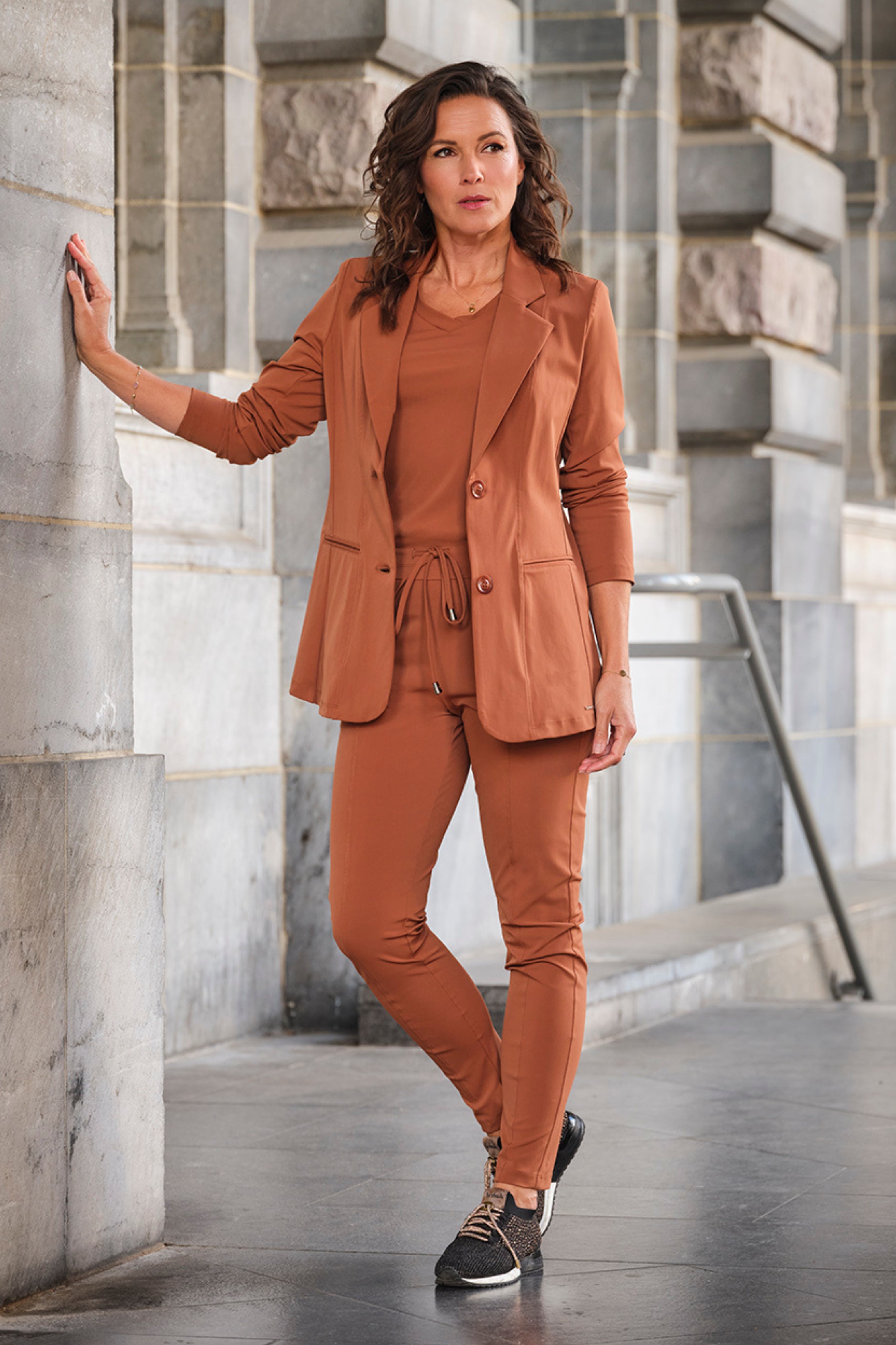 De Travel Blazer Caramel van Mi Piace is een elegante blazer met twee knopen en klassieke revers. Gemaakt van lichte, kreukvrije travelstof die comfortabel draagt. Perfect voor een zakelijke look of stijlvol casual te combineren.