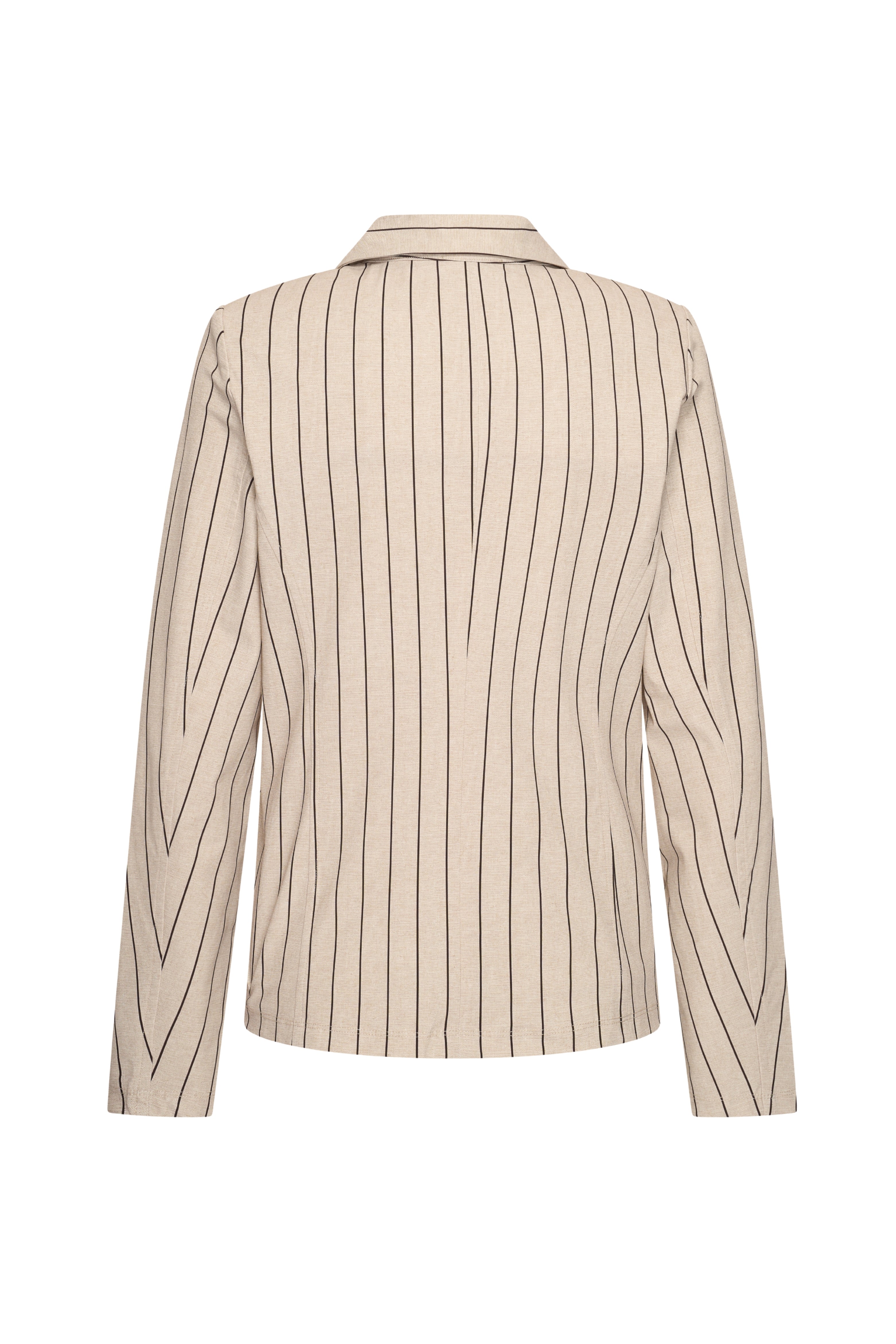 De Travel Blazer Classic Stripe Print Latte van Mi Piace heeft een tijdloze krijtstreep en een elegante, vrouwelijke pasvorm. De comfortabele travelstof maakt dit item ideaal om als co-ord set te dragen of te combineren met een basic top en jeans.