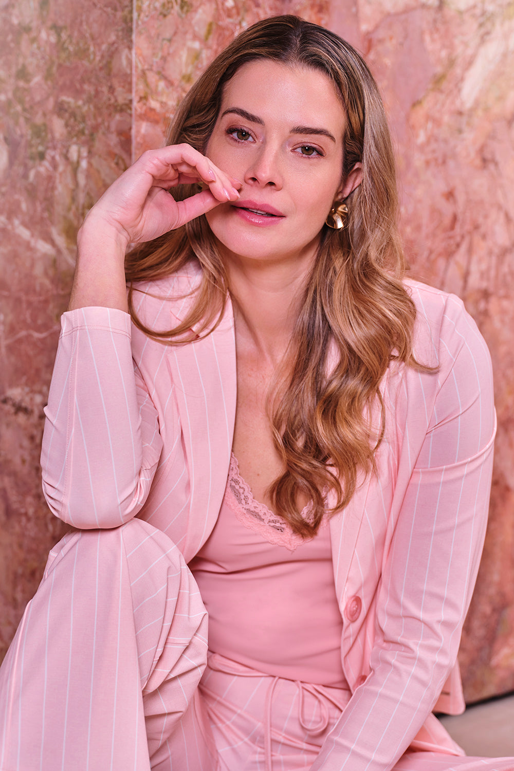 De Travel Blazer Classic Stripe Print Mellow Rose van Mi Piace geeft je outfit een zachte en vrouwelijke touch. De klassieke streep en soepele travelstof zorgen voor een elegante look die je zowel compleet als co-ord draagt als casual kunt stylen.
