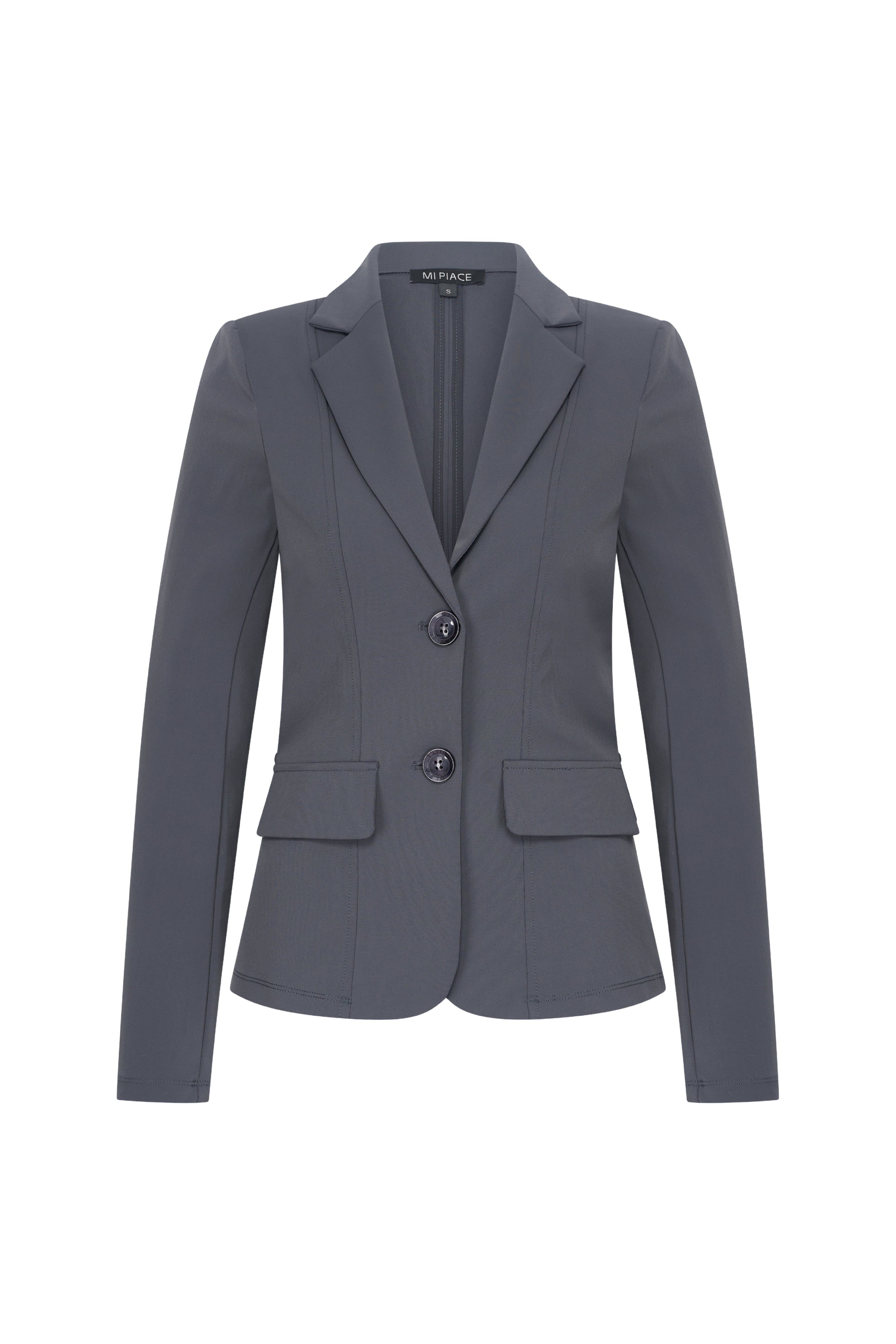 De Travel Blazer Dark Grey van Mi Piace is een elegante getailleerde blazer van kreukvrije travelkwaliteit. Voorzien van twee knopen en klepzakken. Comfortabel, stijlvol en geschikt voor elke gelegenheid.