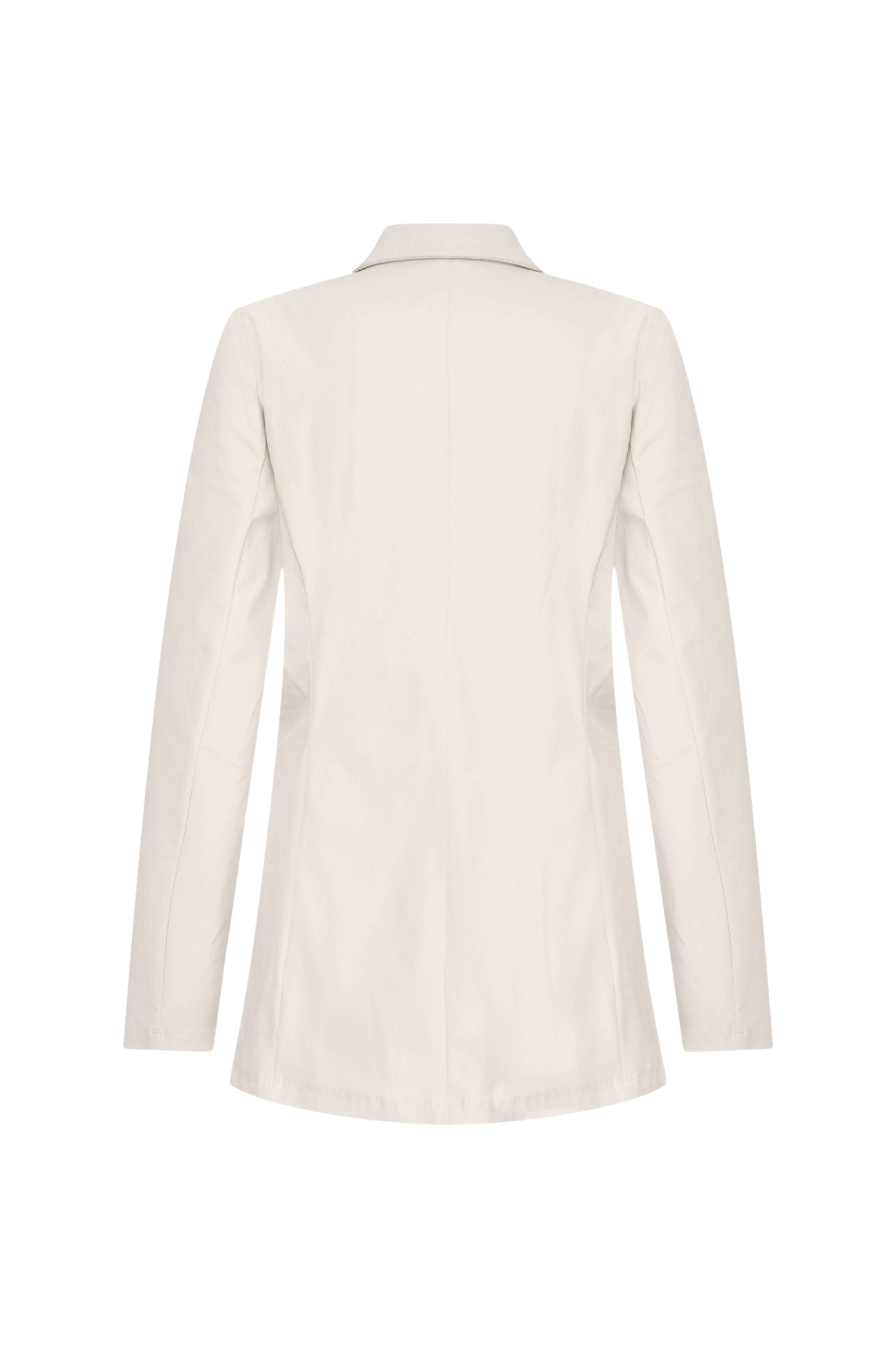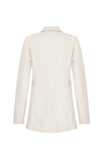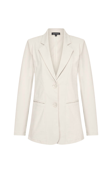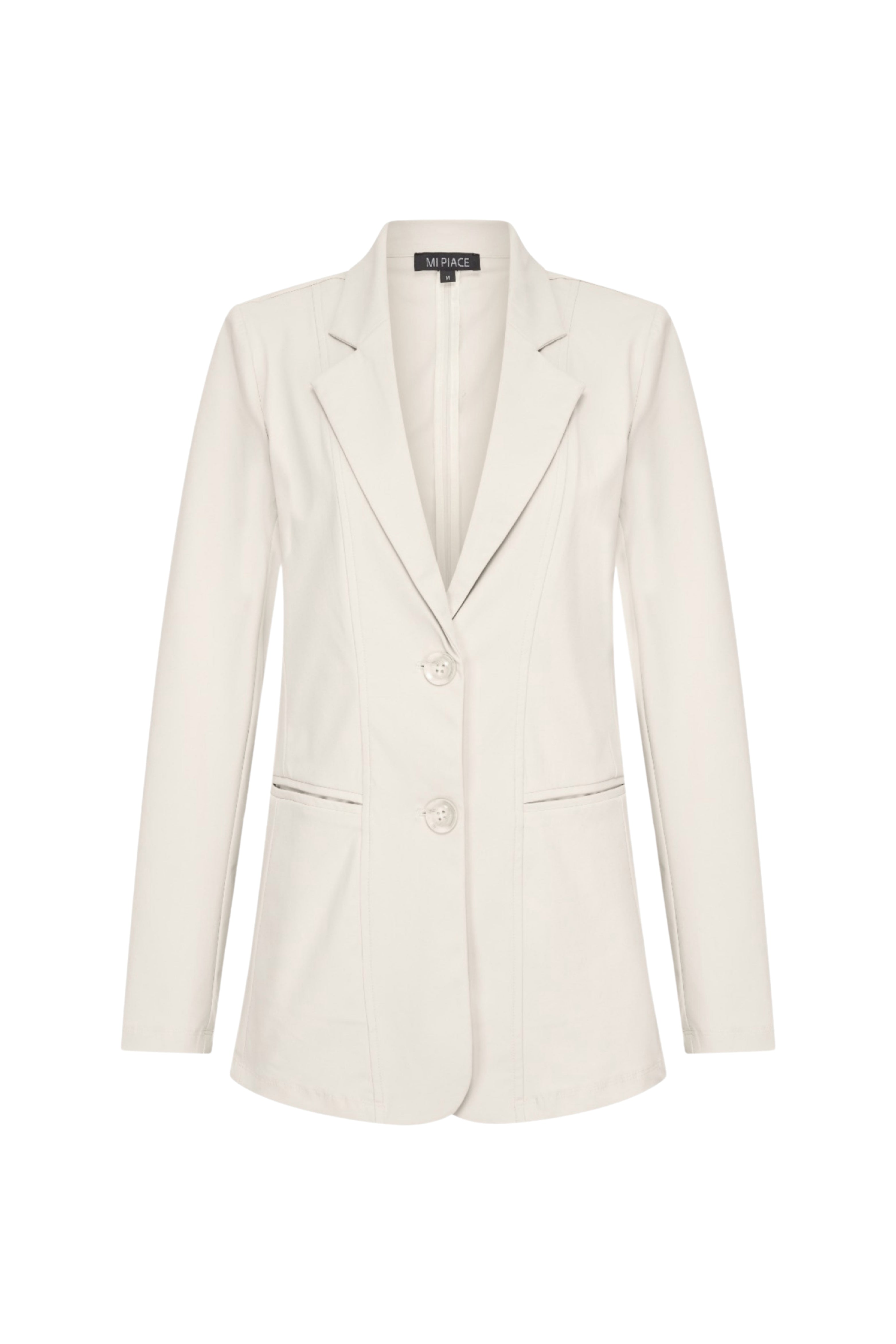 Stap in de wereld van pure elegantie met de mid blazer van Mi Piace. Uitgevoerd in de subtiele en veelzijdige kleur kit, is deze blazer de belichaming van verfijning. De reisstof garandeert niet alleen comfort maar ook een chique uitstraling.