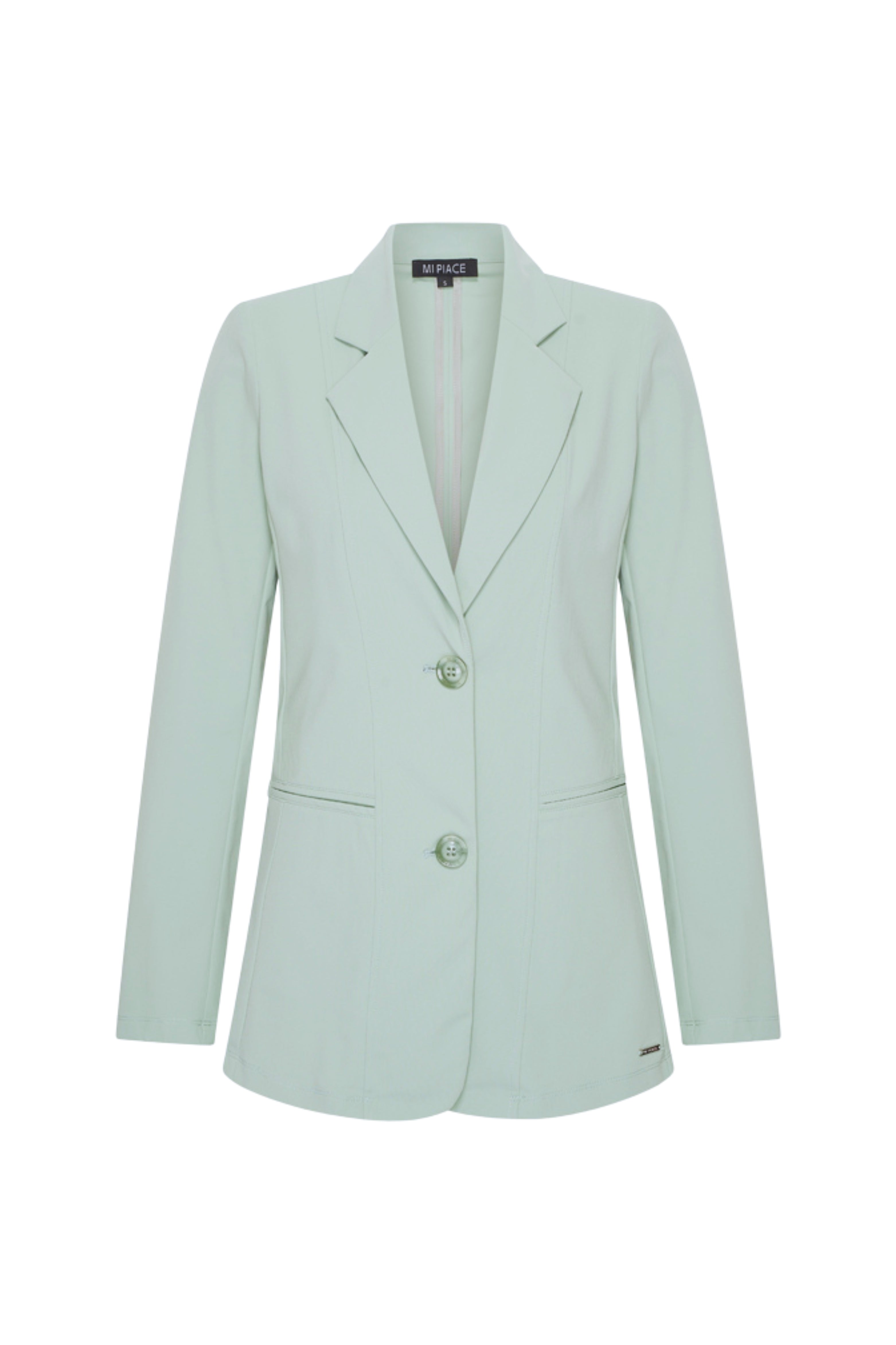 De Travel Blazer Lilypad van Mi Piace is een stijlvolle blazer in een flatterende pasvorm. Gemaakt van kreukvrije travelstof en uitgevoerd in de zachte kleur Lilypad. Perfect voor zowel zakelijke als casual looks. Elegant én comfortabel!