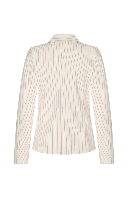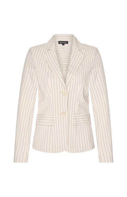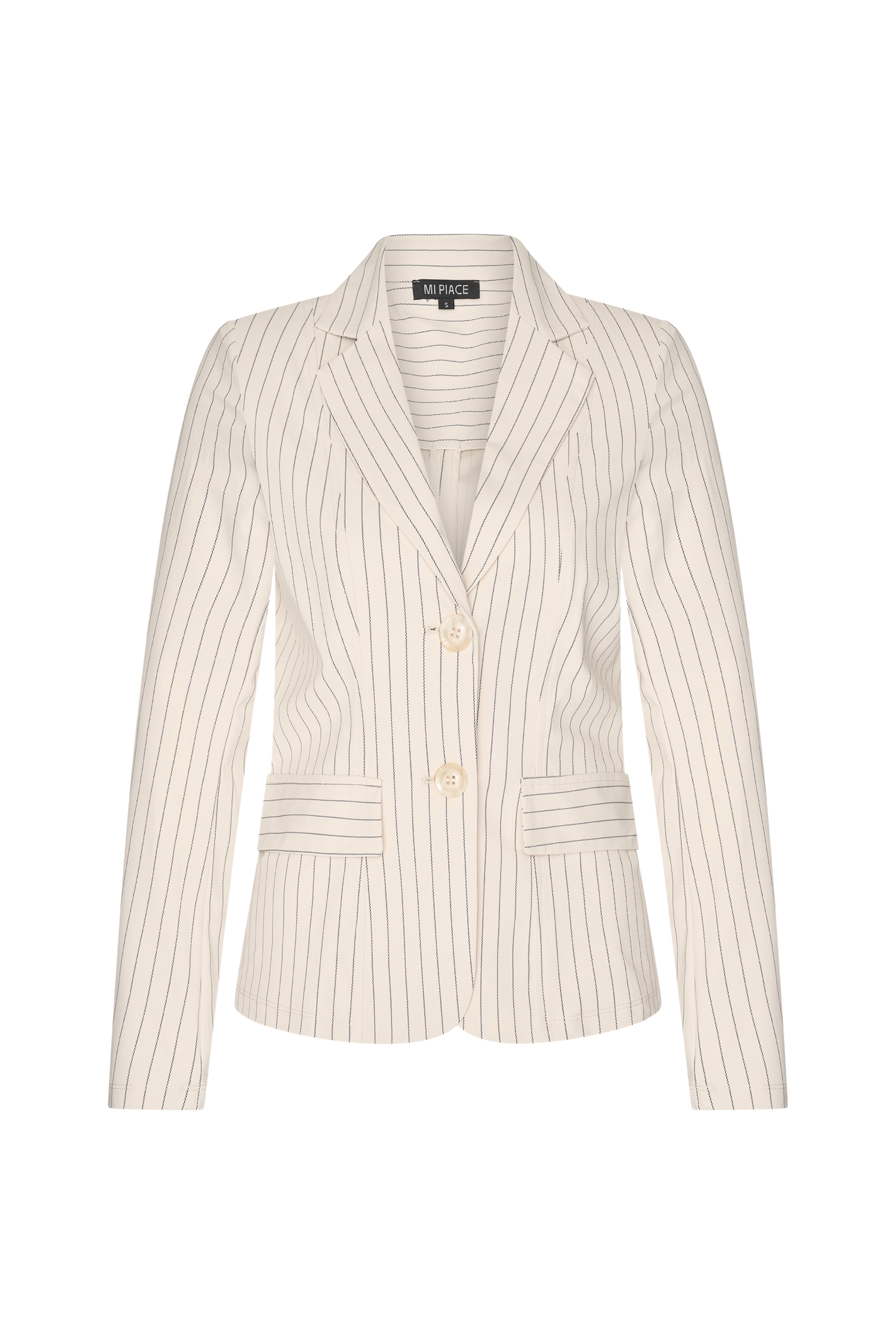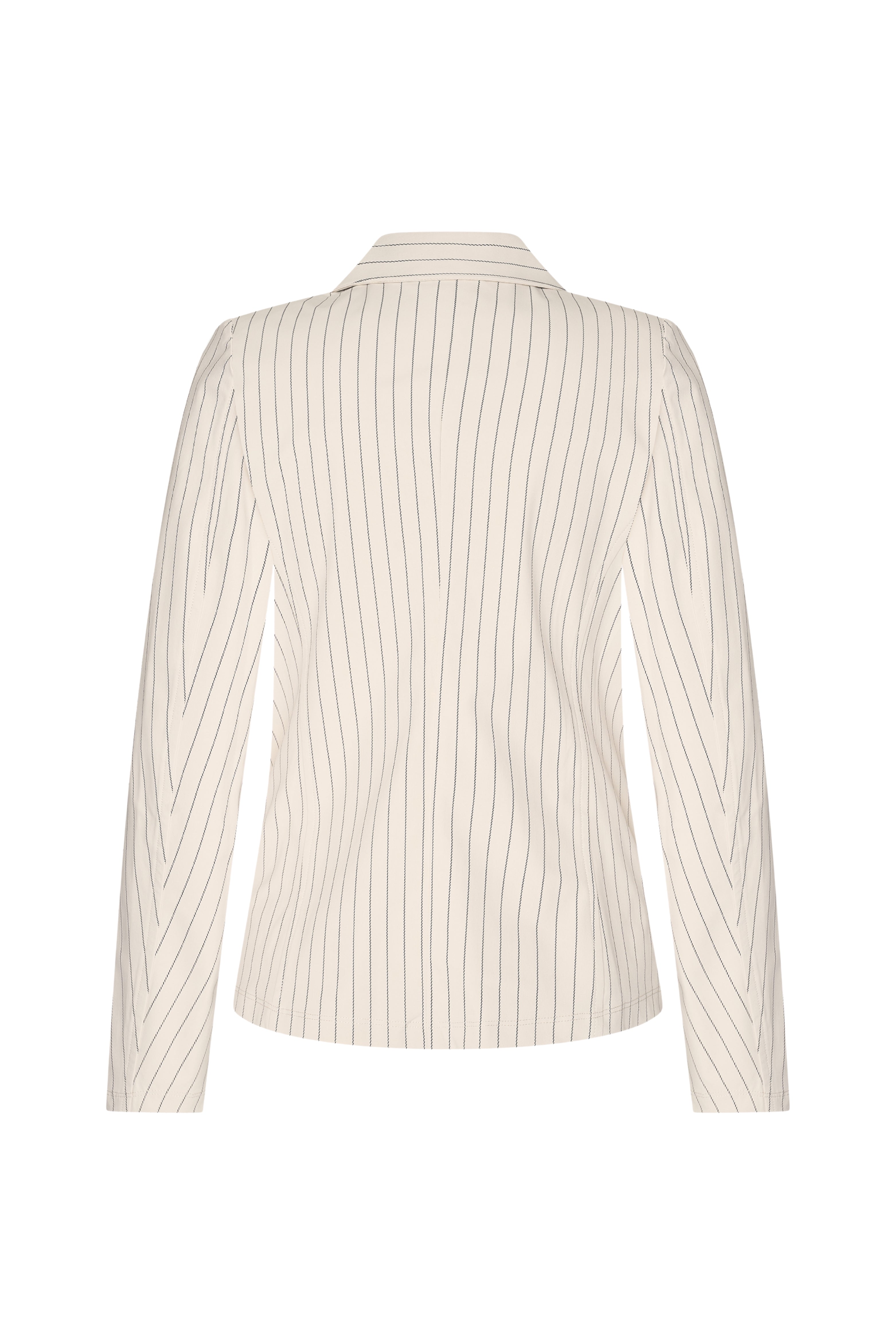 De Mi Piace Travel Blazer Pin Stripe Print Kit Dark Blue is een elegante blazer met een fijne krijtstreep in donkerblauw. De flatterende pasvorm en stretchy travelstof maken dit een perfecte blazer voor elke dag.