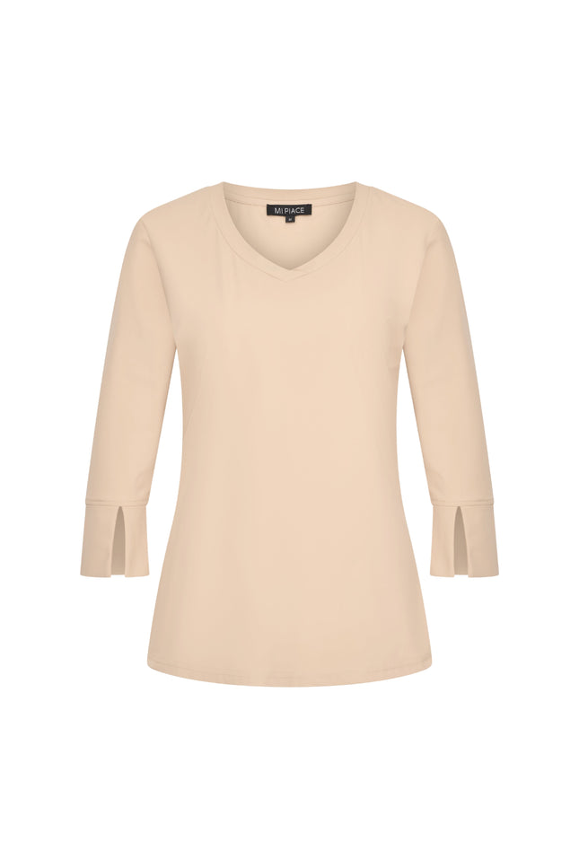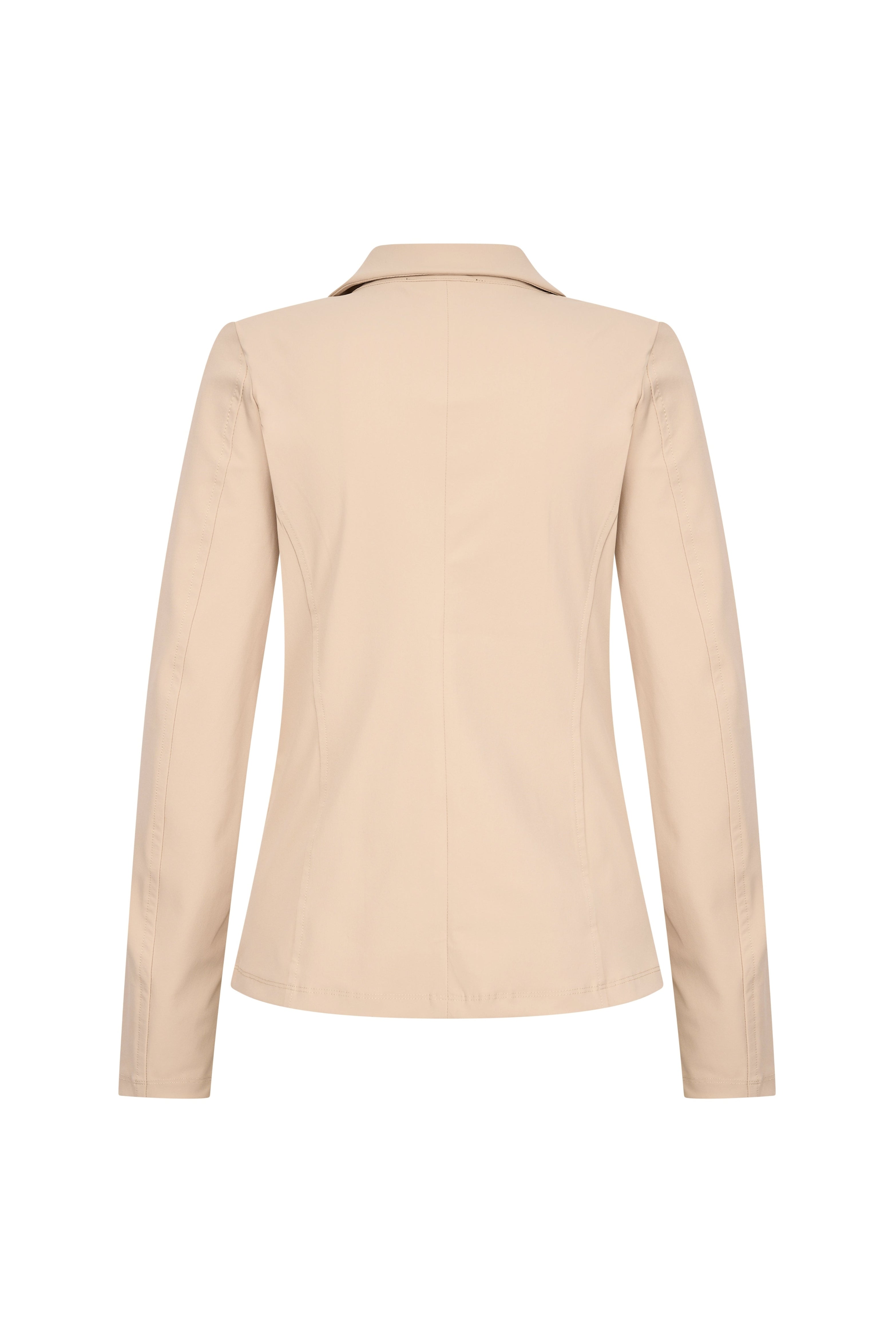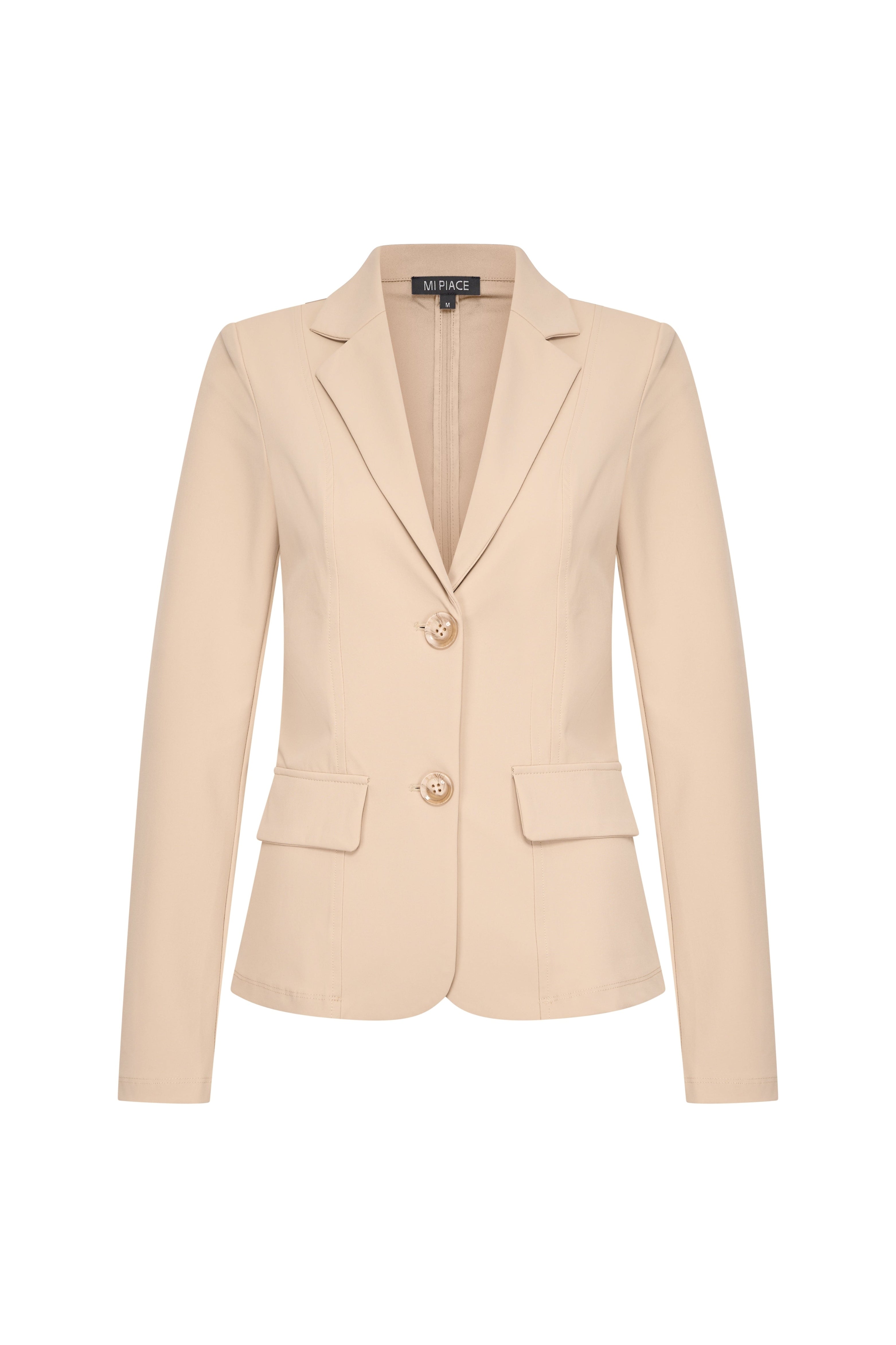De Travel Blazer Sand van Mi Piace is een stijlvolle blazer met een zachte zandkleur. Het korte, aangesloten model accentueert de taille op elegante wijze. Gemaakt van comfortabele, kreukvrije travelstof voor een verzorgde look, elke dag opnieuw.