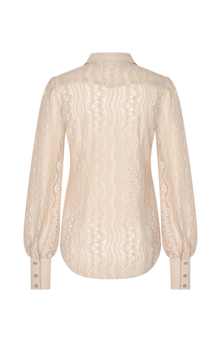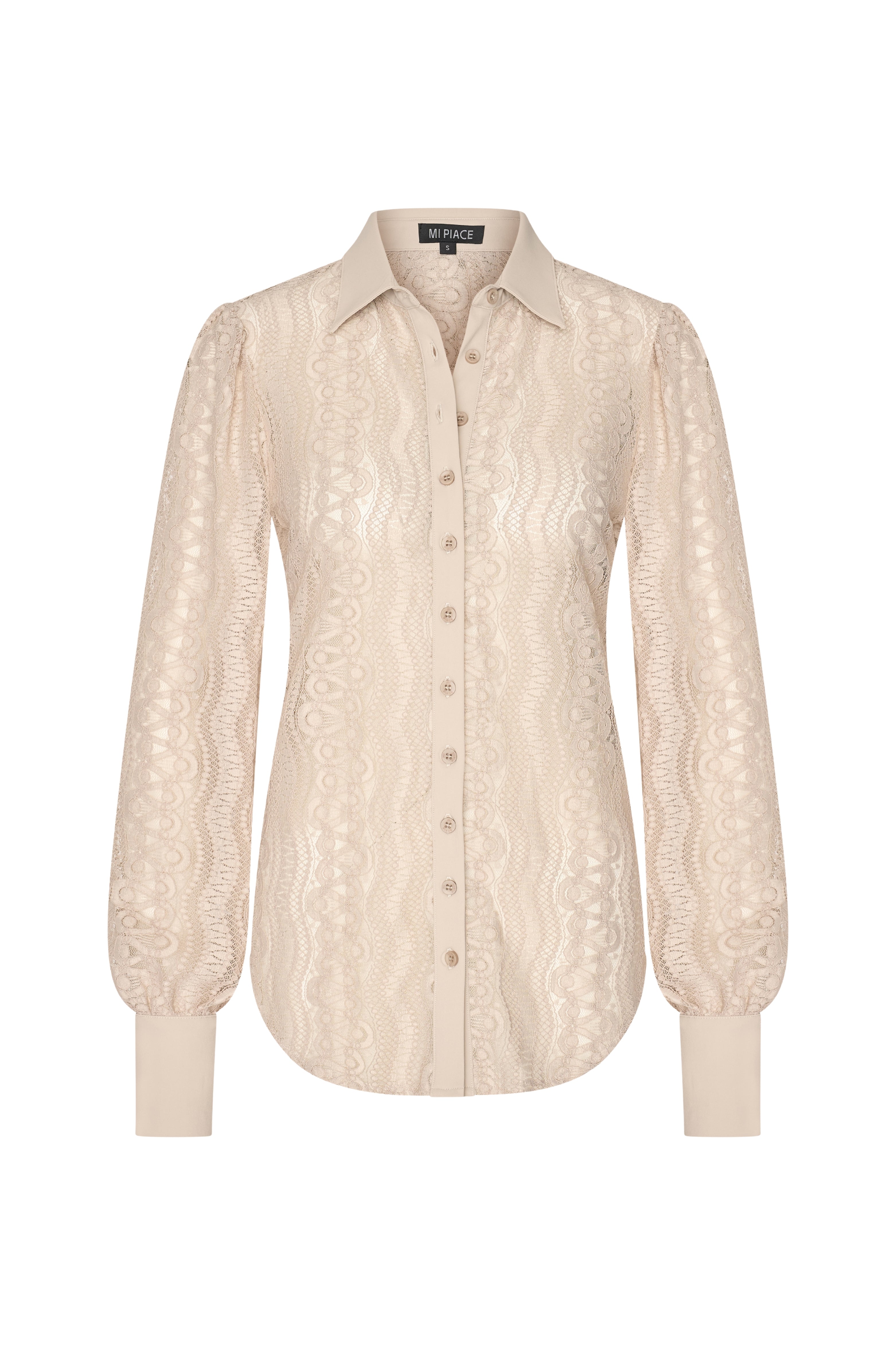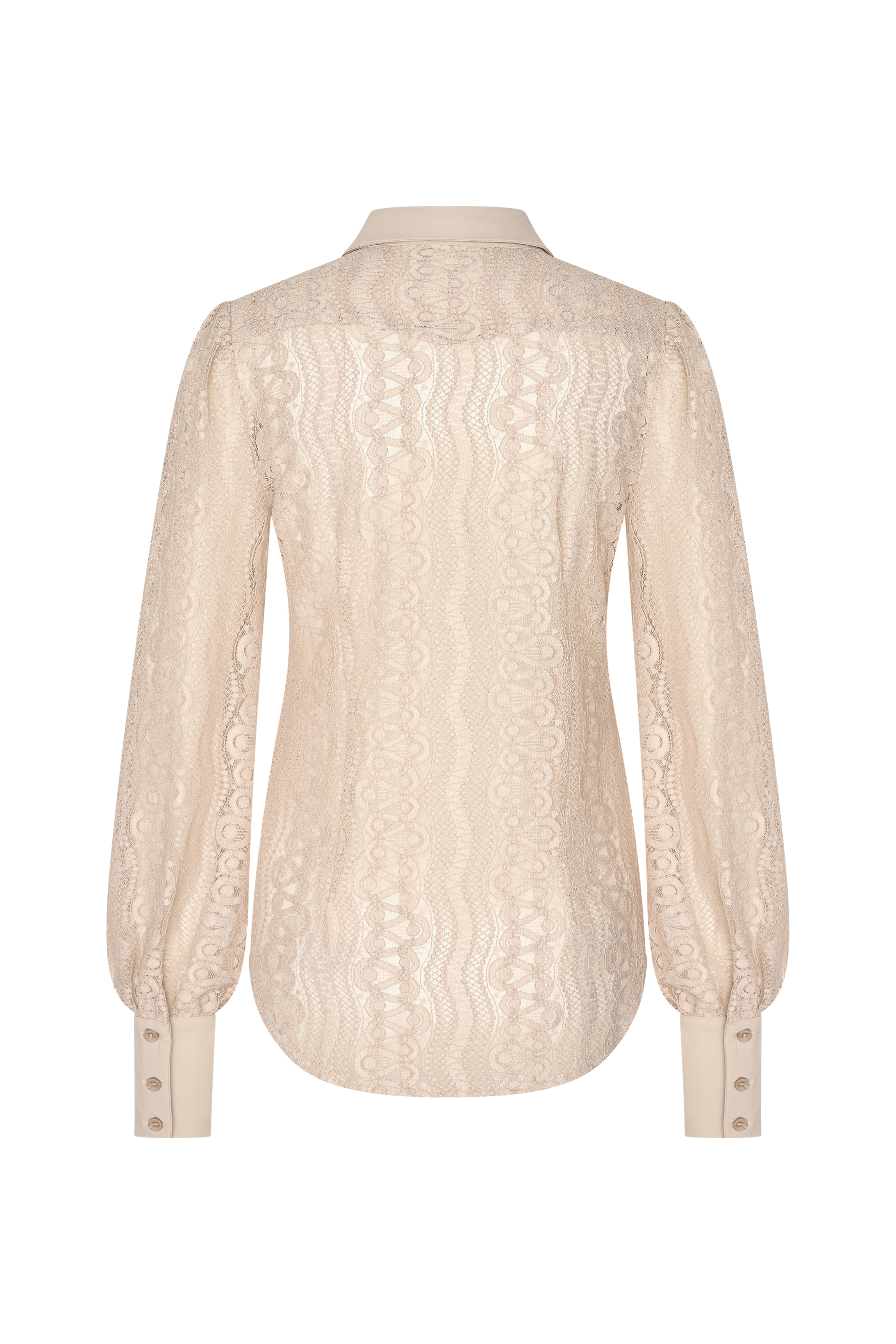 De Mi Piace Travel Blouse Beige is een verfijnde blouse met een vrouwelijke kantstructuur en klassieke kraag. De luchtige travelkwaliteit en transparante mouwen maken dit item perfect voor een elegante, stijlvolle look.