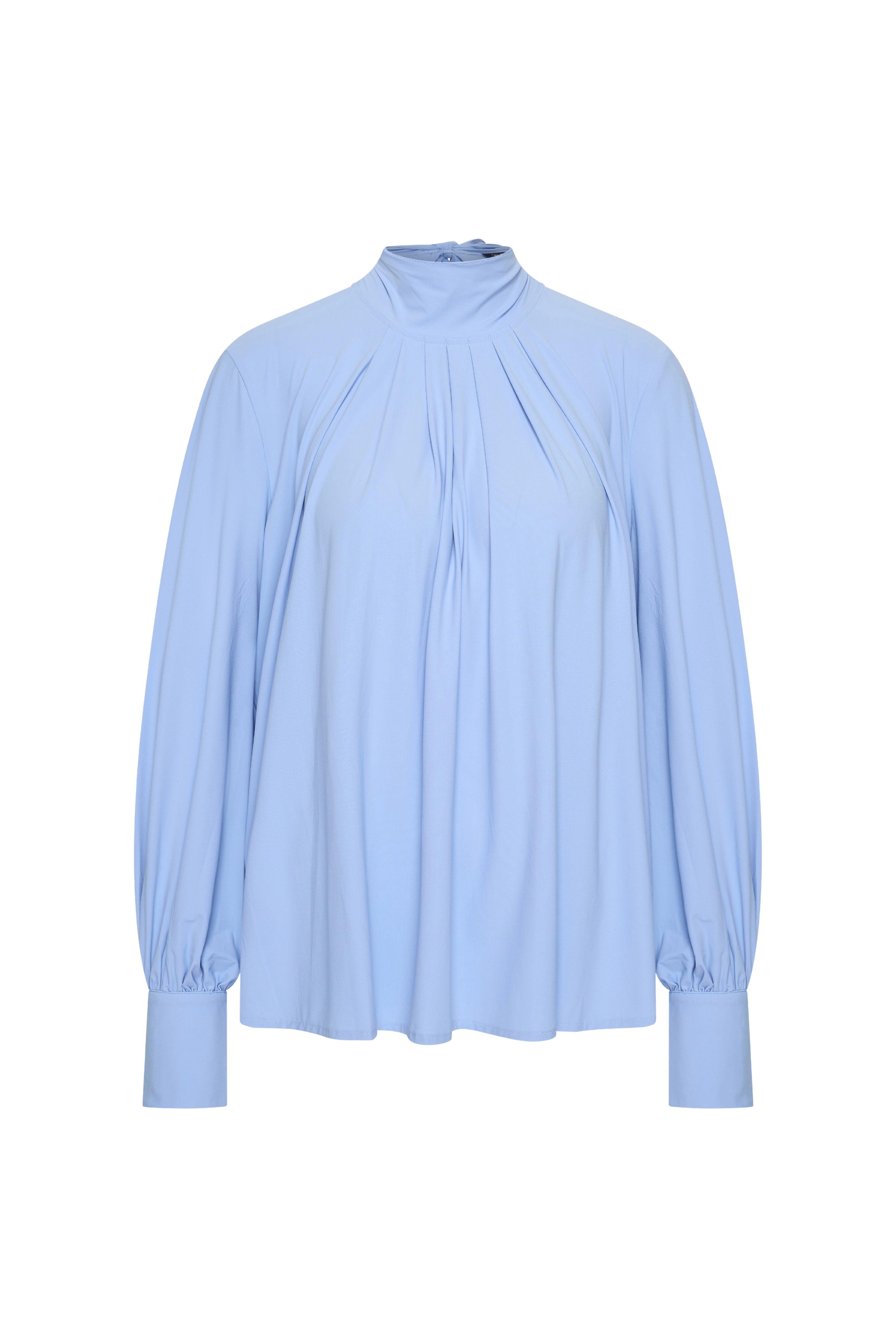 Travel Blouse Bow Light Lavender Blue van Mi Piace is een elegante blouse met een vrouwelijke uitstraling. De hoge hals met strikdetail en subtiele plooien geven het item een verfijnde look. De soepele travelstof zorgt voor comfortabel draaggemak en een mooie valling.