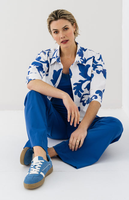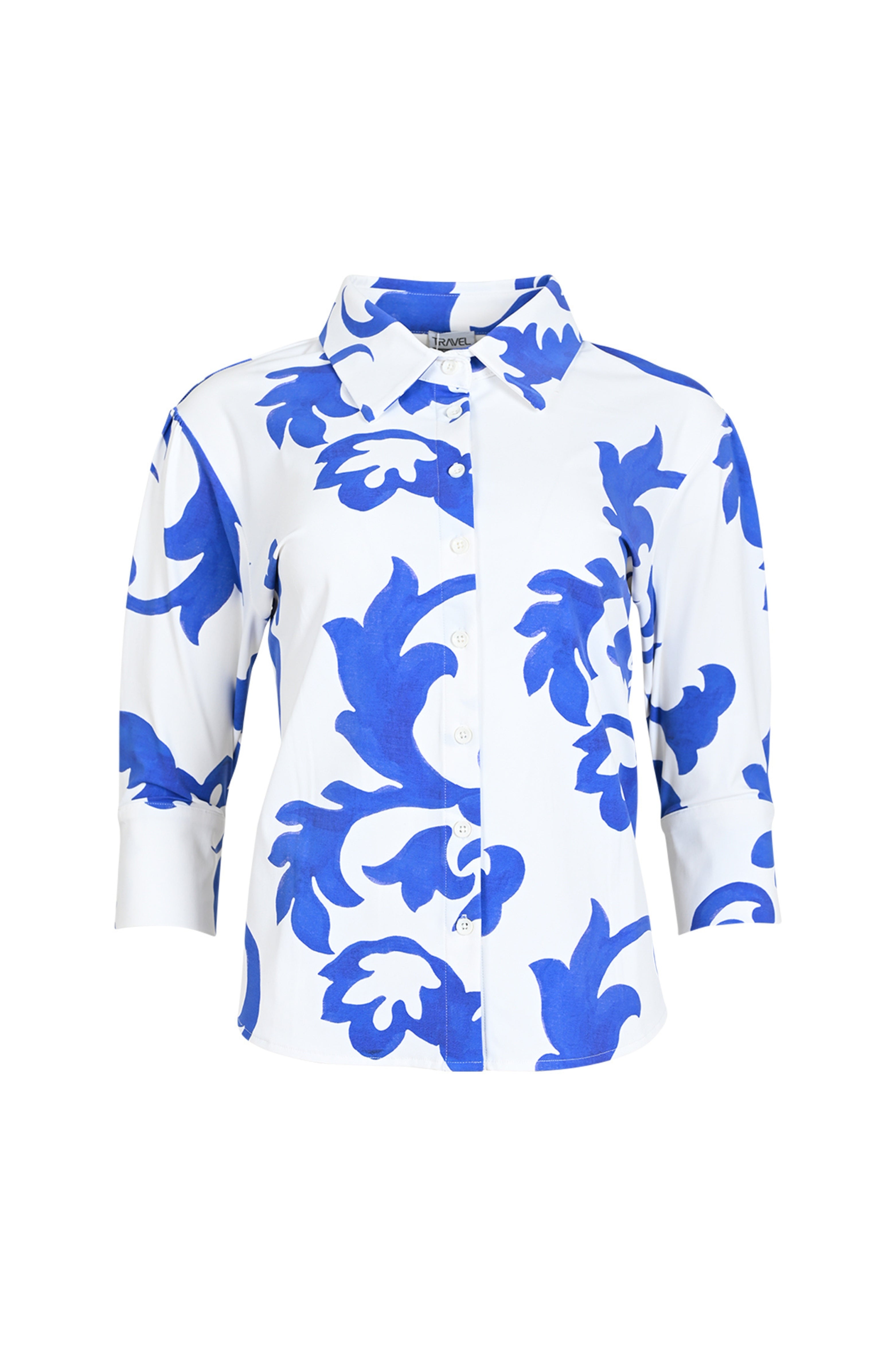 Fris, krachtig en vrouwelijk: de Elerie blouse in Arctic Blue is dé eyecatcher voor het nieuwe seizoen. Met een speelse botanische print in helder blauw op een witte ondergrond straalt deze blouse power en stijl uit. Gemaakt van travelstof voor ultiem comfort.