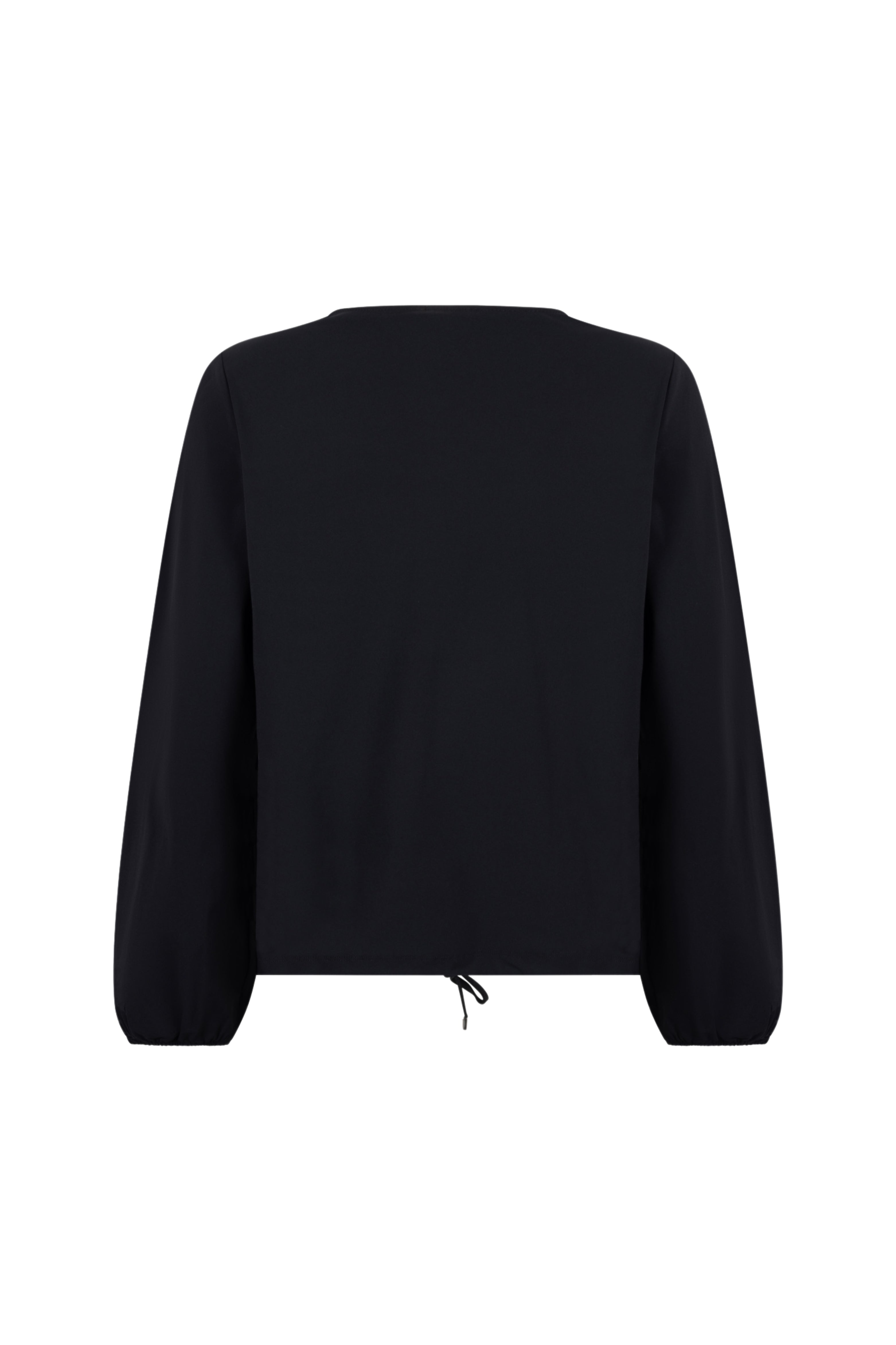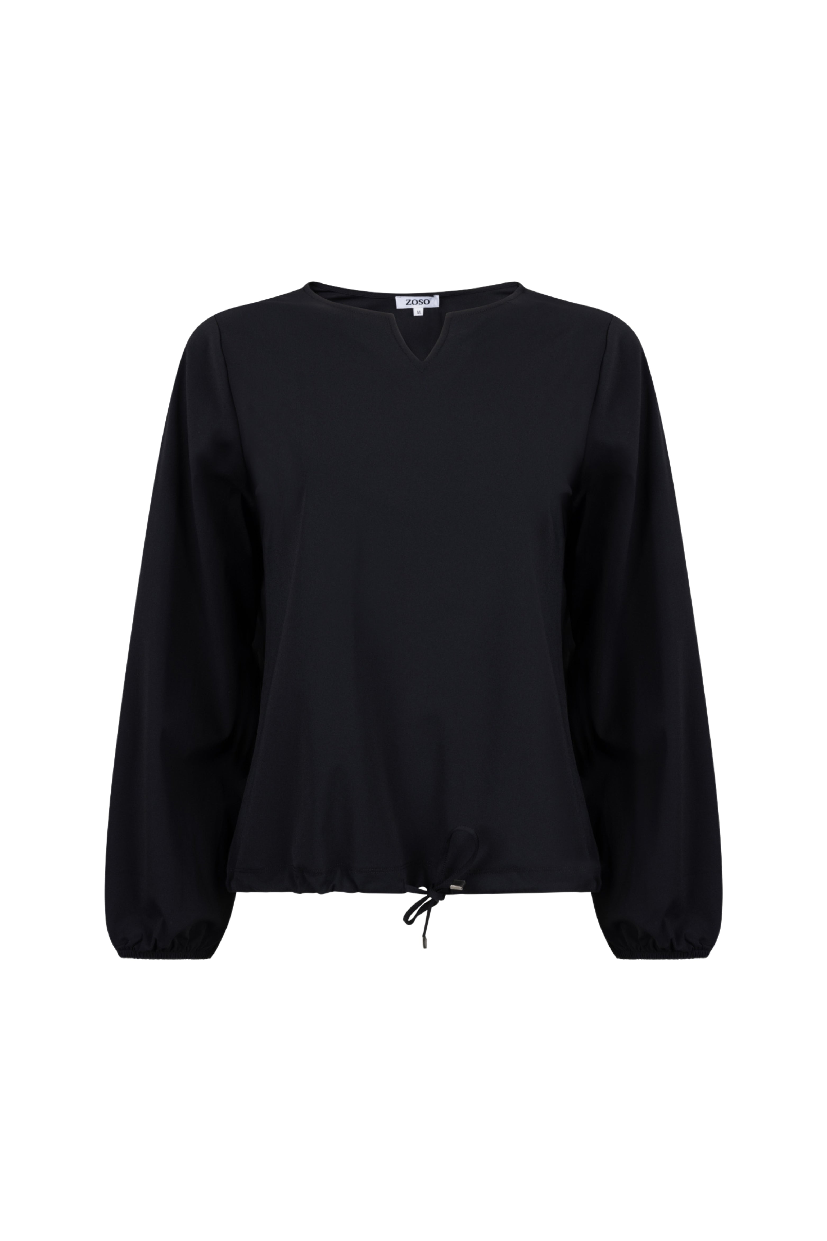 Travel Blouse Joan Black van Zoso is een moderne blouse in comfortabele travelstof. Het model heeft een subtiel v-detail, lange ballonmouwen en een strikkoord in de zoom voor een sportieve look. Dankzij de tijdloze zwarte kleur is dit item perfect voor zowel casual als zakelijke combinaties.
