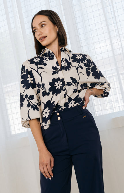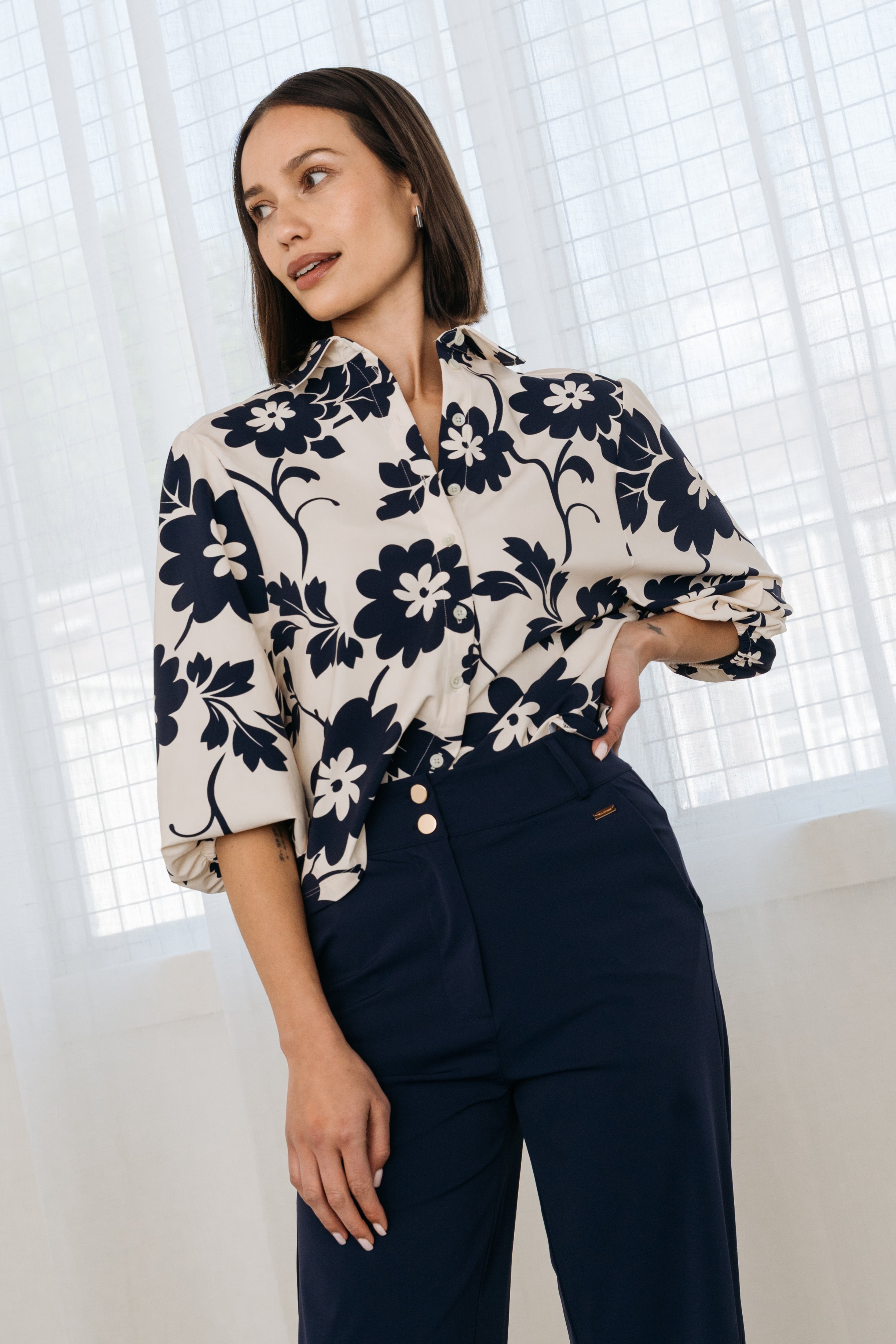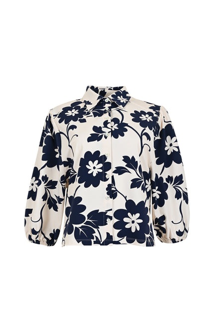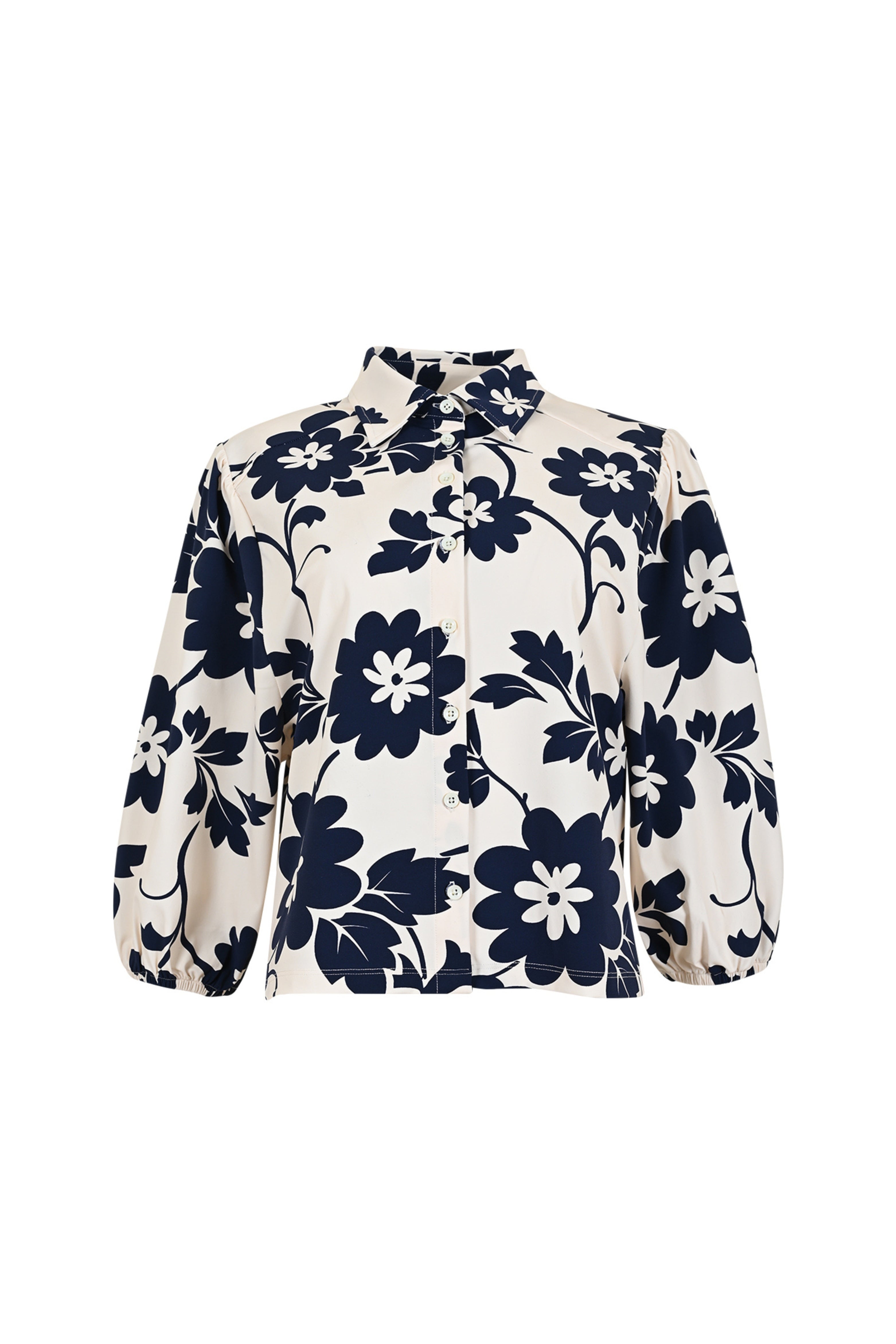 De Travel Blouse Larix Blue Flower van Maicazz brengt meteen kleur en energie in je look. De opvallende bloemenprint, speelse pofmouwen en soepele fit maken dit dé blouse voor een frisse statement.