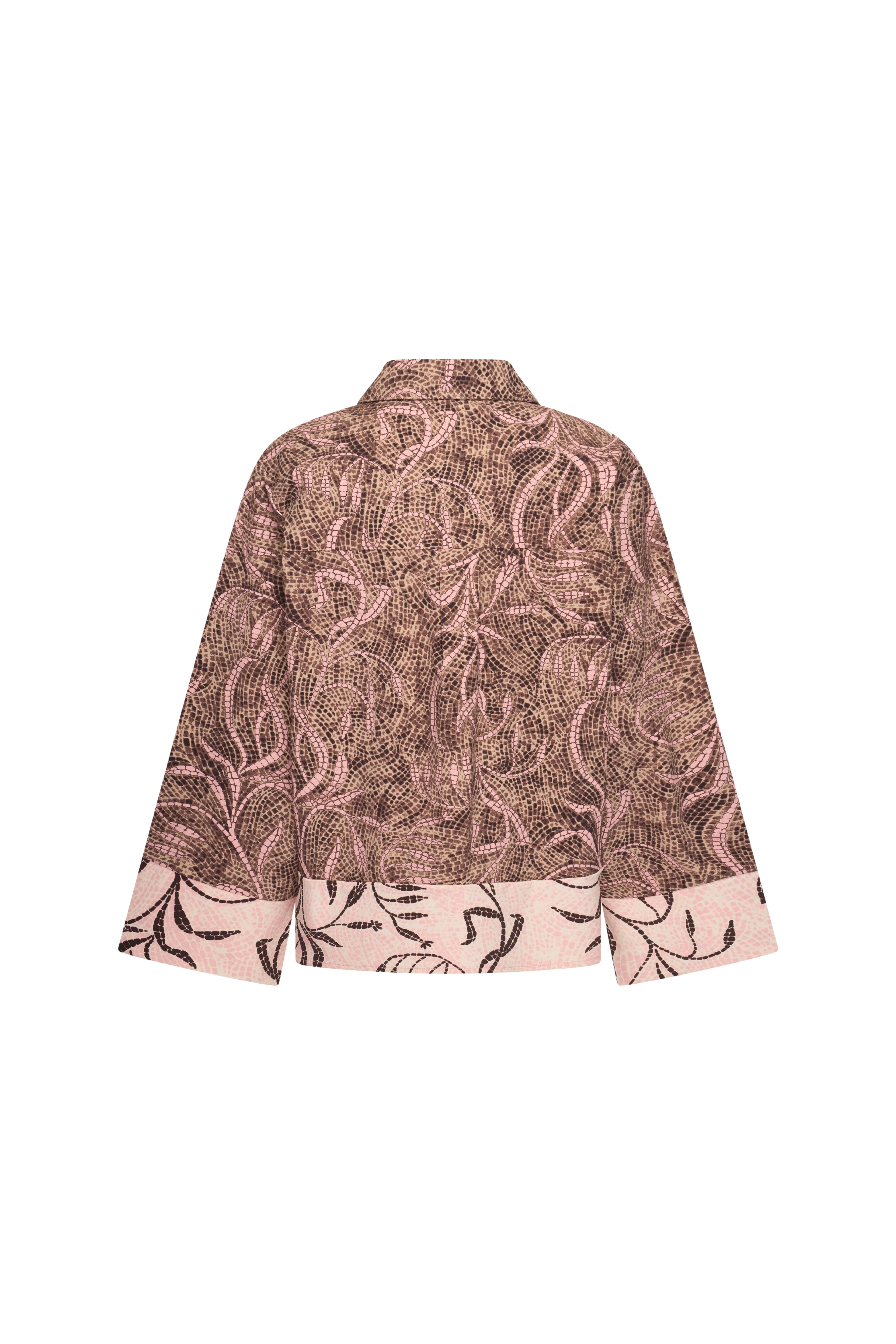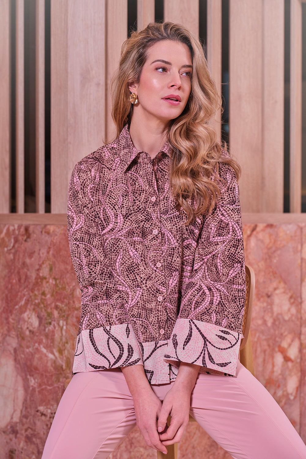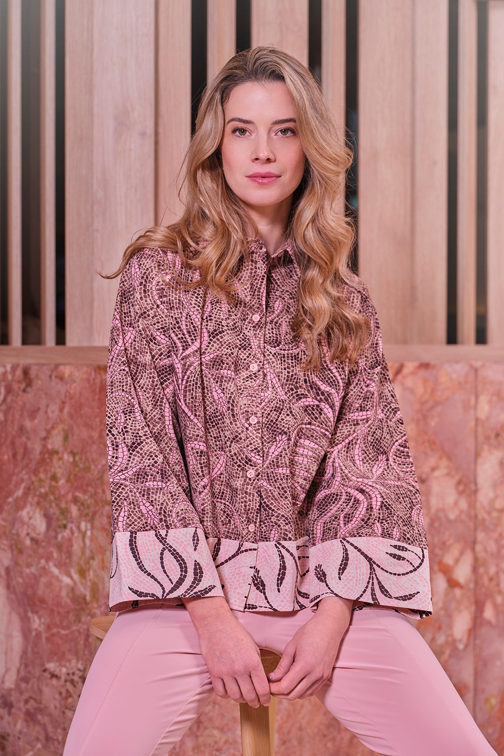 De Travel Blouse Mix Twilight Twigs Print Espresso van Mi Piace is een stijlvolle blouse van comfortabele travelstof met speelse mix van prints. Kreukarm, stretchy en met losse pasvorm. Perfect voor werk, reizen en een modieuze look.