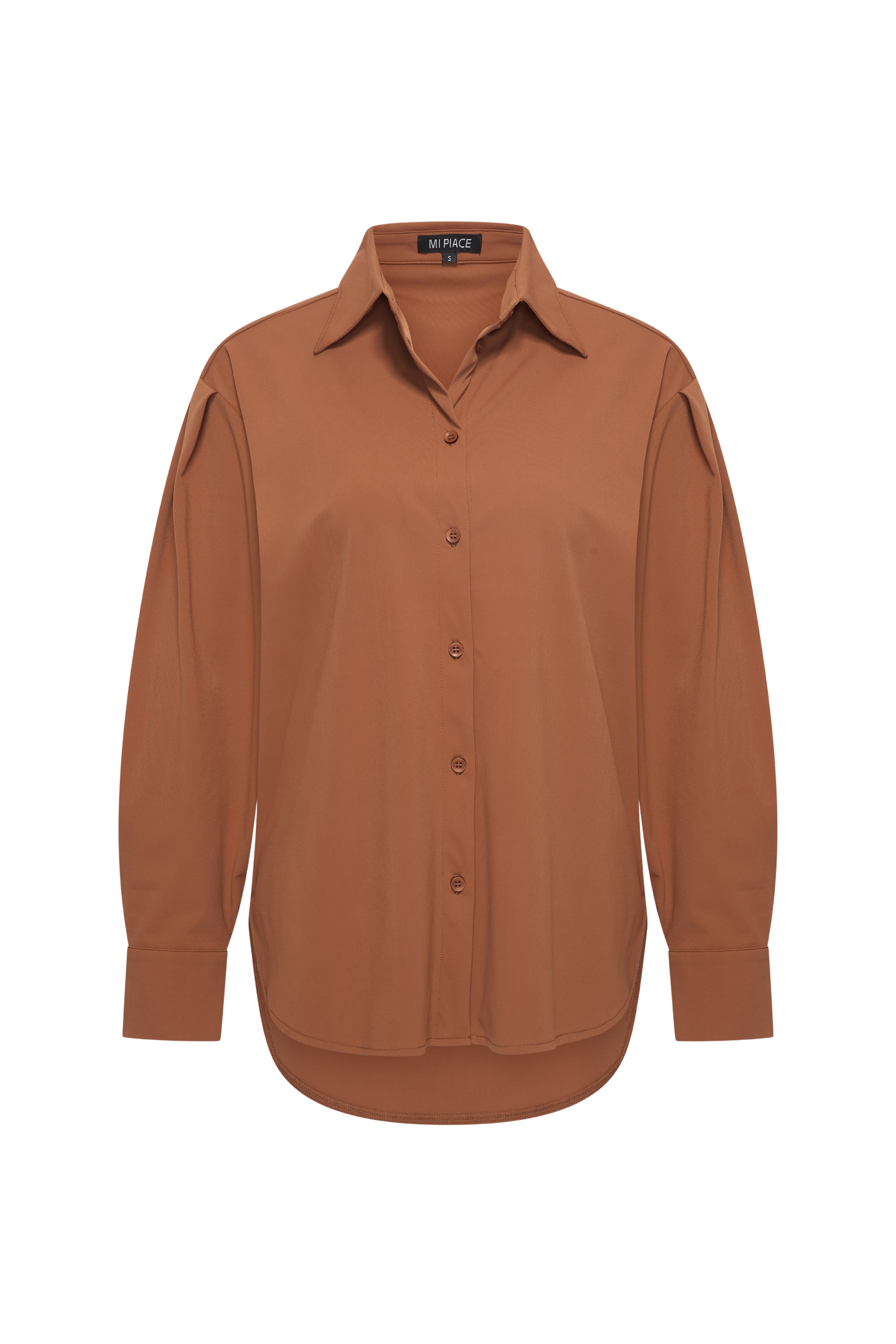 De Travel Blouse Oversized Caramel van Mi Piace is een elegante blouse in een warme caramelkleur. De oversized pasvorm en soepele travelstof geven een moderne, ontspannen uitstraling. Perfect om zowel chic te stylen met een pantalon als casual met een jeans.