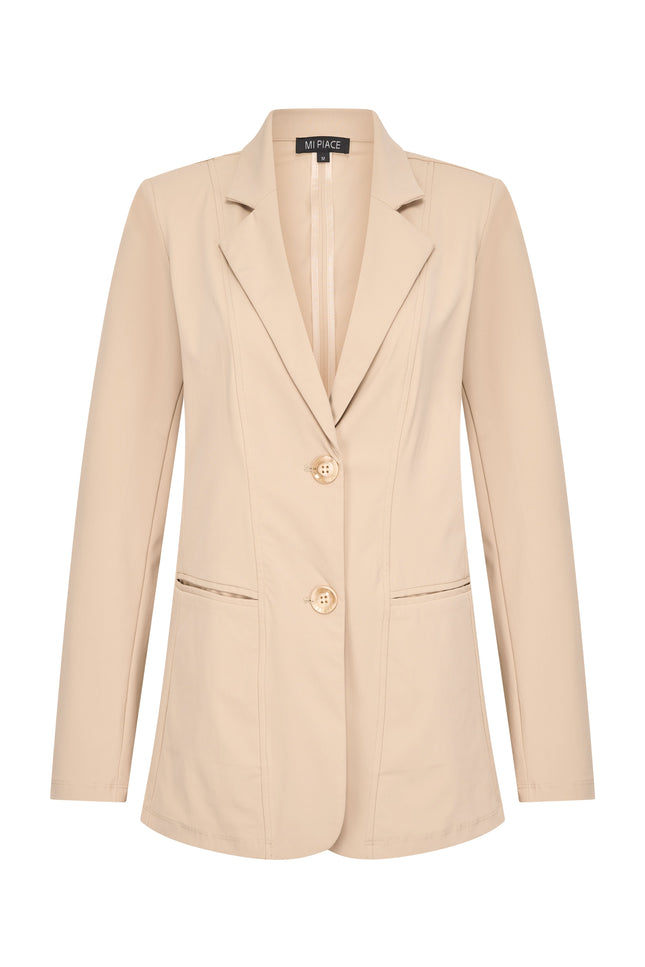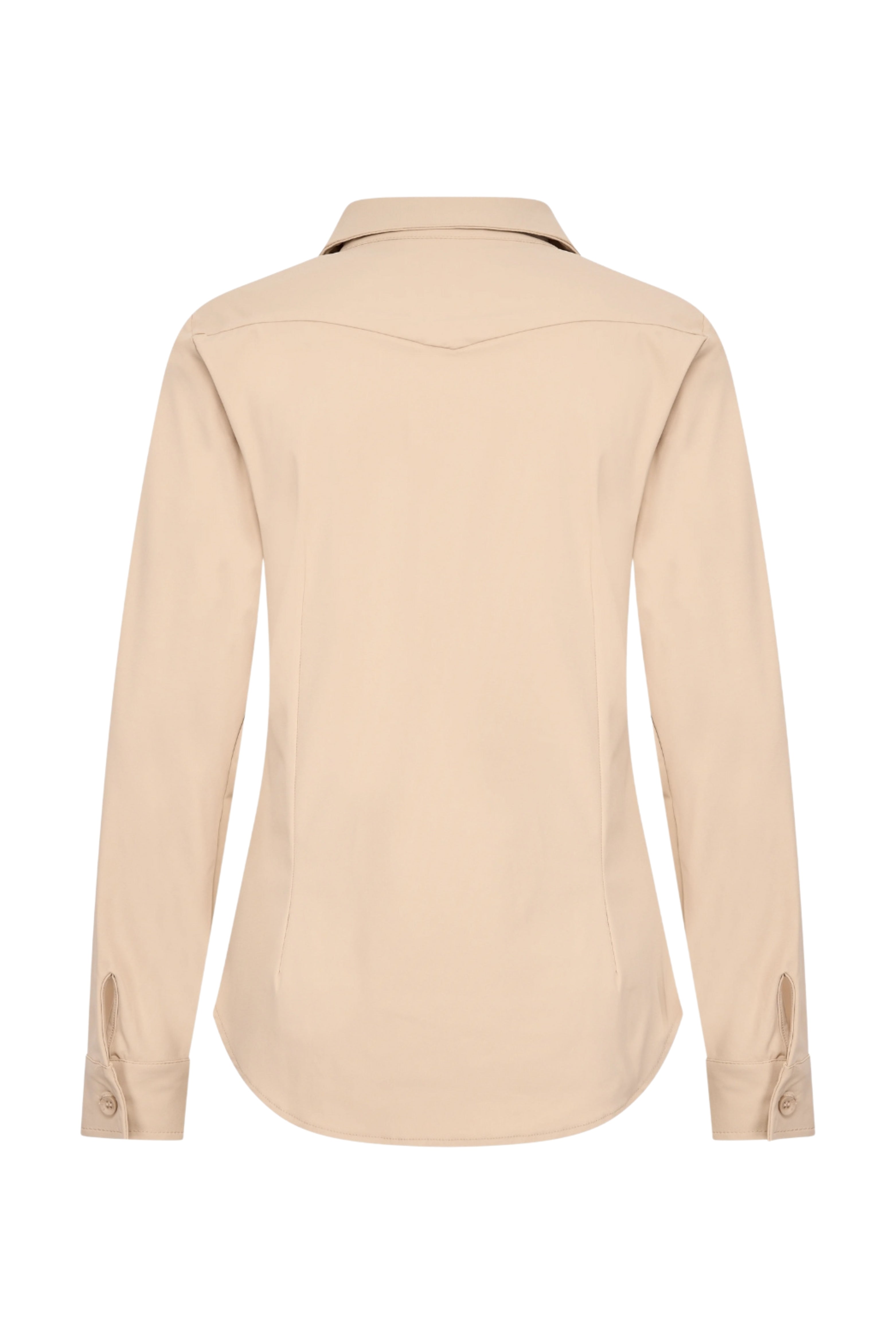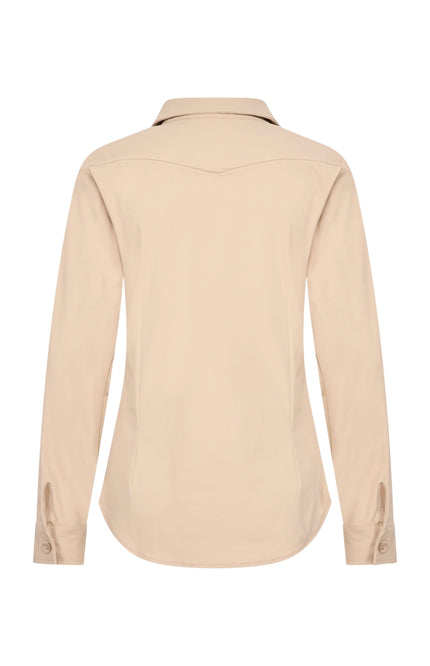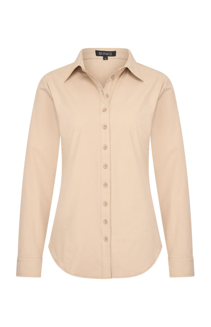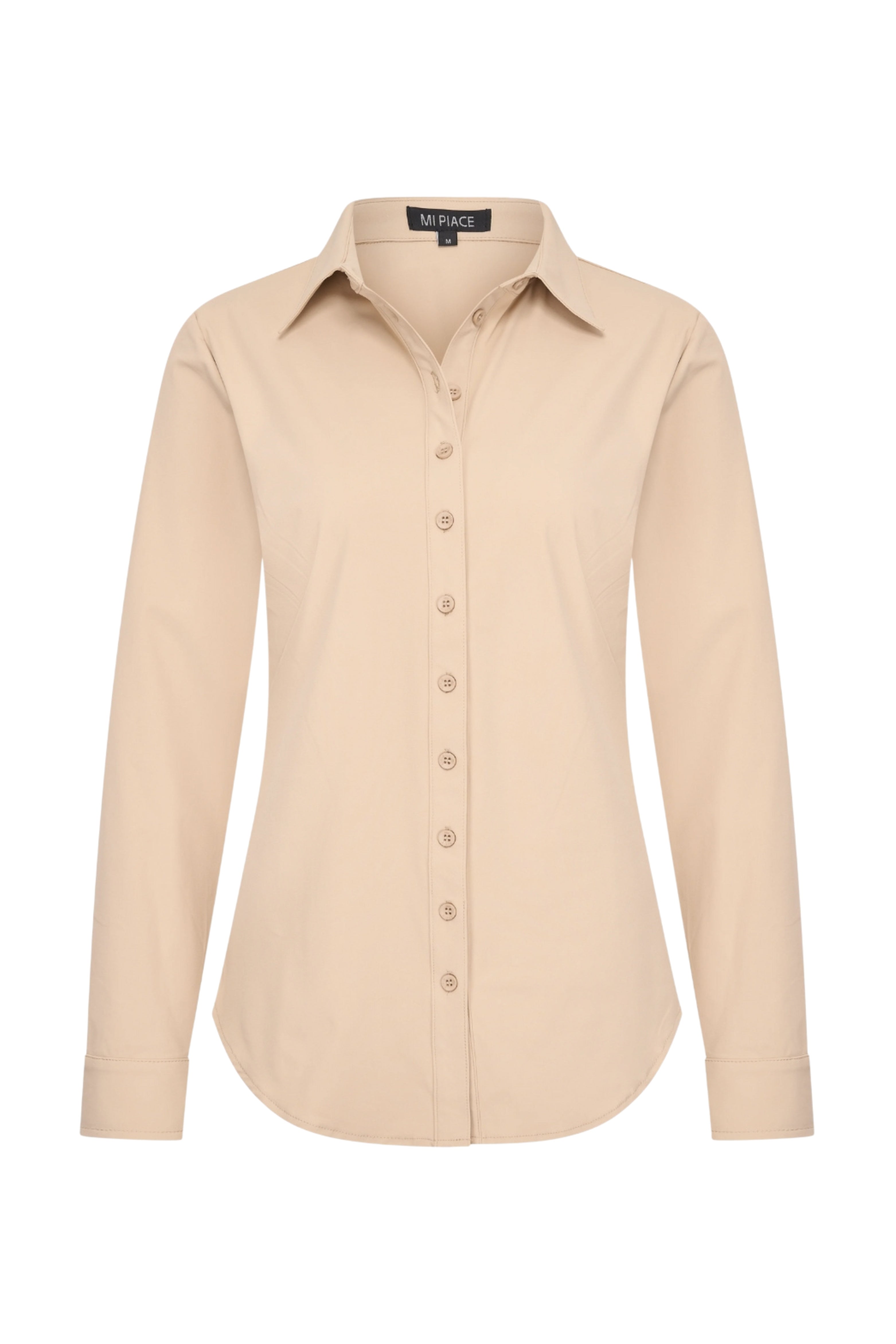 De Travel Blouse Sand van Mi Piace combineert elegantie met comfort. De zachte beige tint en de soepele travelstof zorgen voor een luxe uitstraling en ultiem draaggemak.