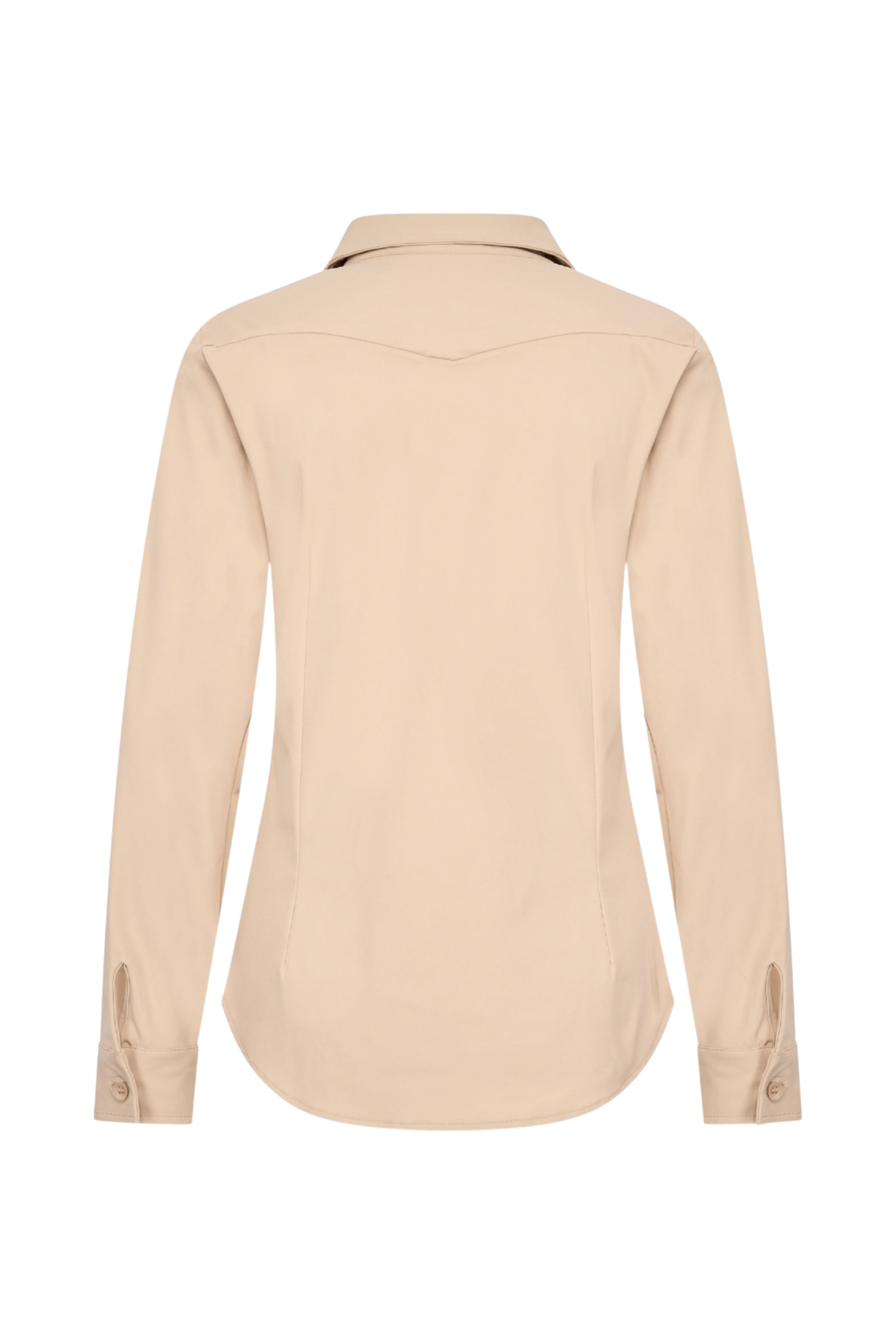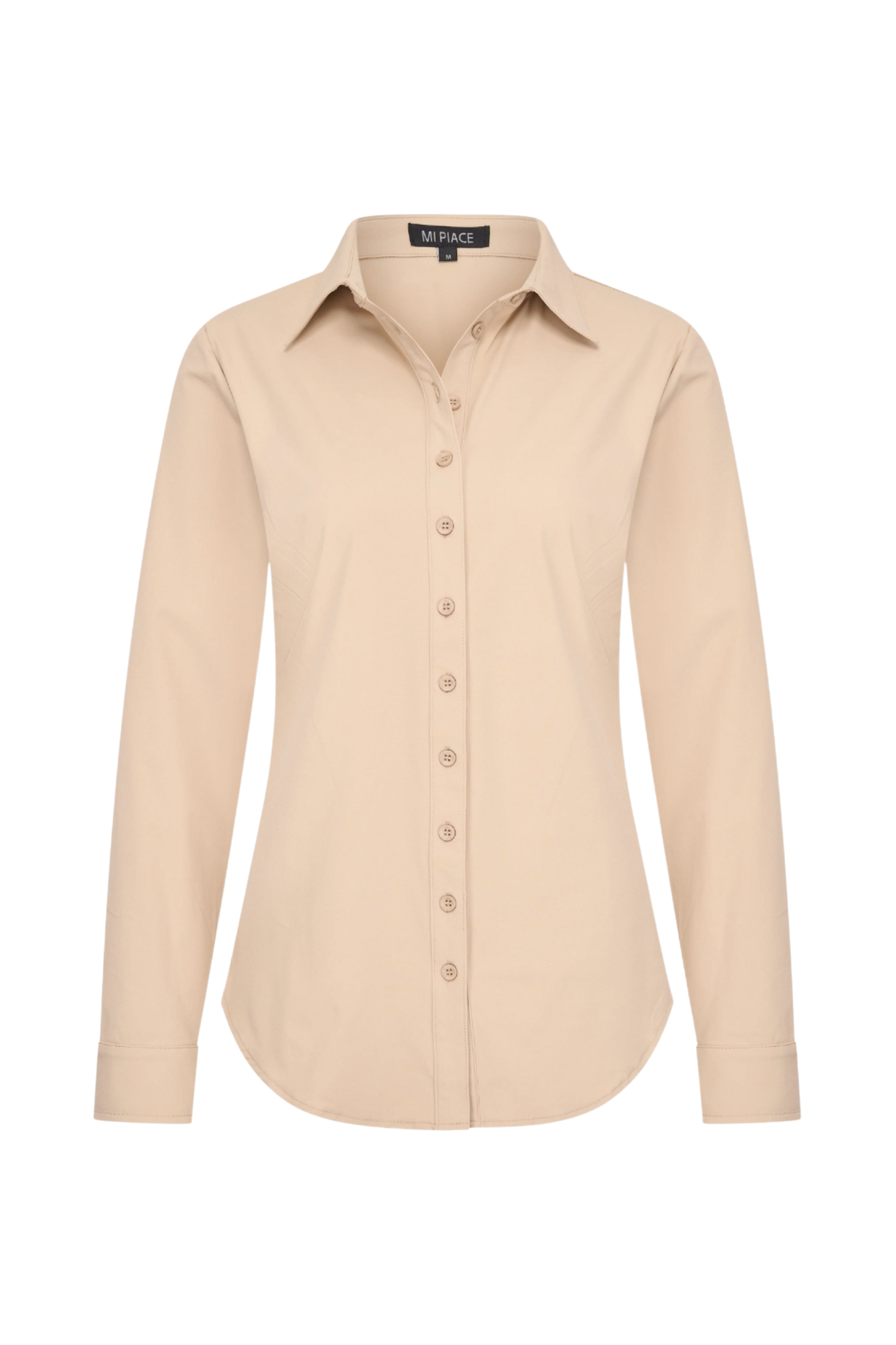 De Travel Blouse Sand van Mi Piace combineert elegantie met comfort. De zachte beige tint en de soepele travelstof zorgen voor een luxe uitstraling en ultiem draaggemak.