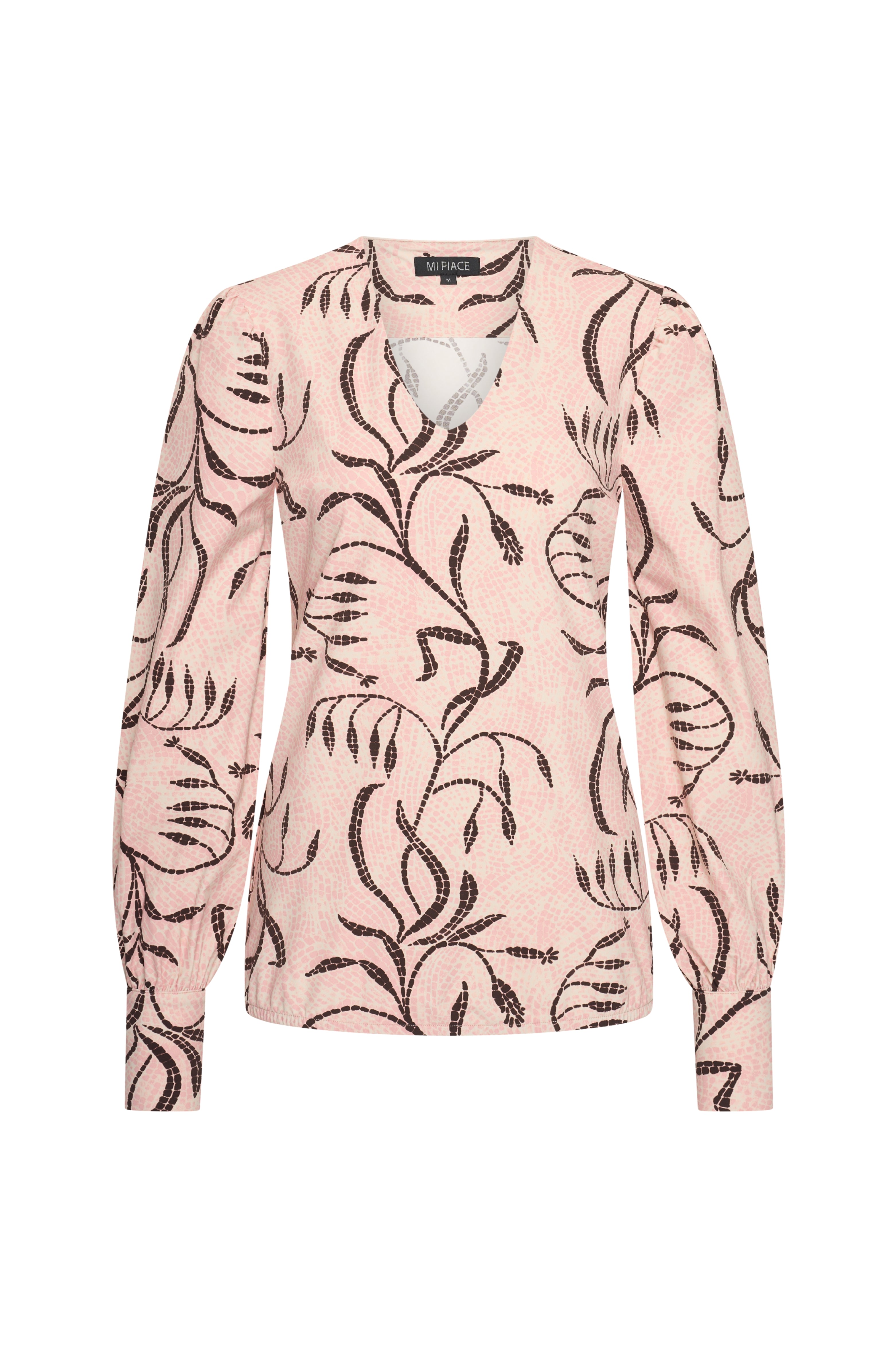 De Travel Blouse Twilight Twigs Print Mellow Rose van Mi Piace is een elegante blouse met een verfijnd all-over dessin. De vrouwelijke pasvorm en comfortabele travelstof zorgen voor een verzorgde uitstraling.