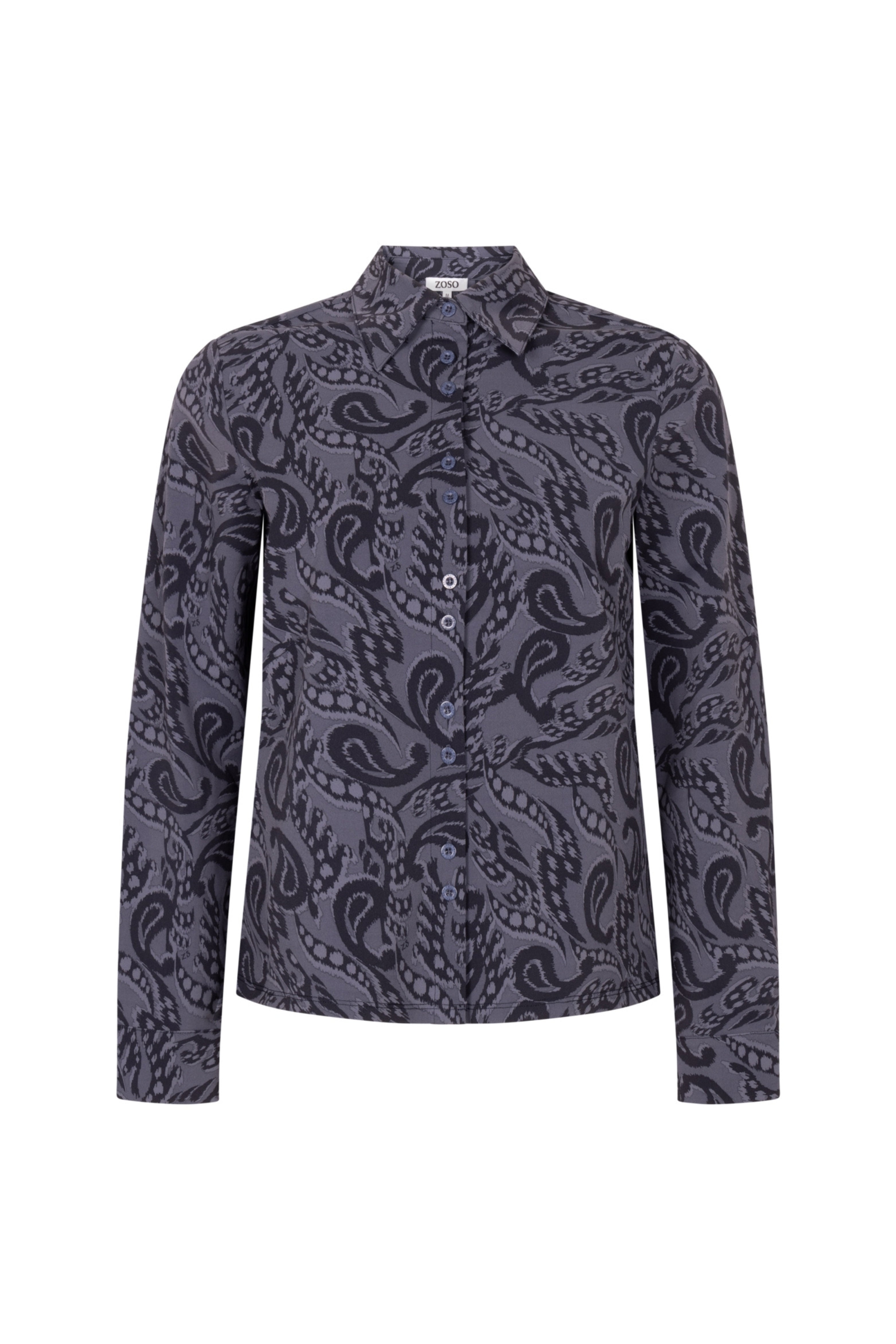 De Travel Blouse Vicky Navy van ZOSO is een stijlvolle blouse met een uniek paisley dessin in donkere tinten. Dankzij de comfortabele travelstof is deze blouse kreukvrij, ademend en gemakkelijk te onderhouden.
