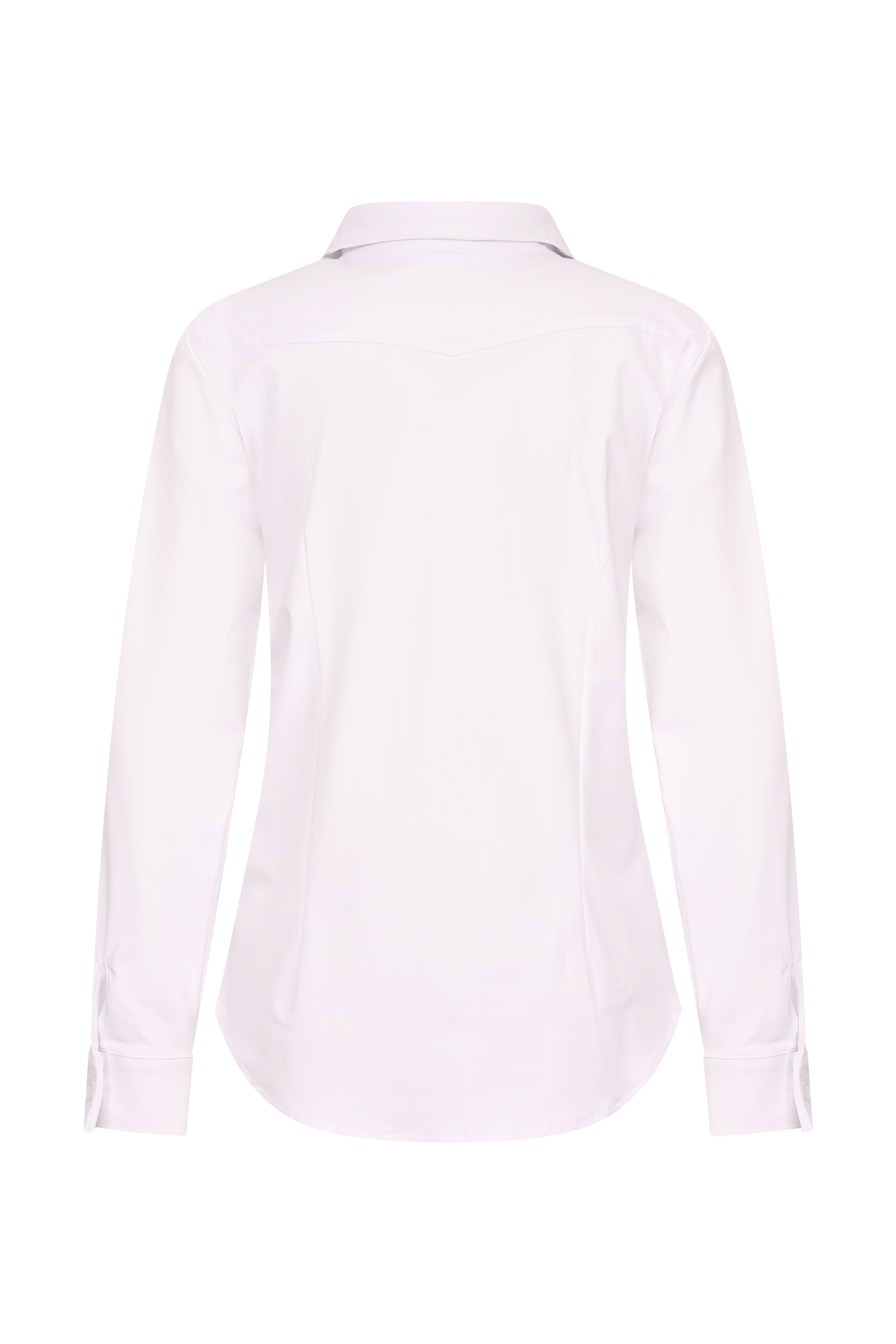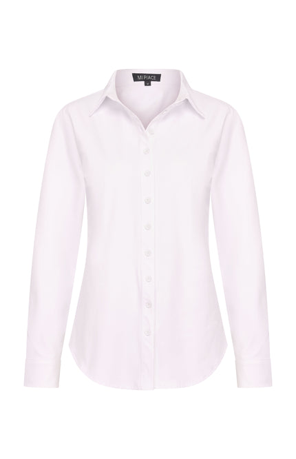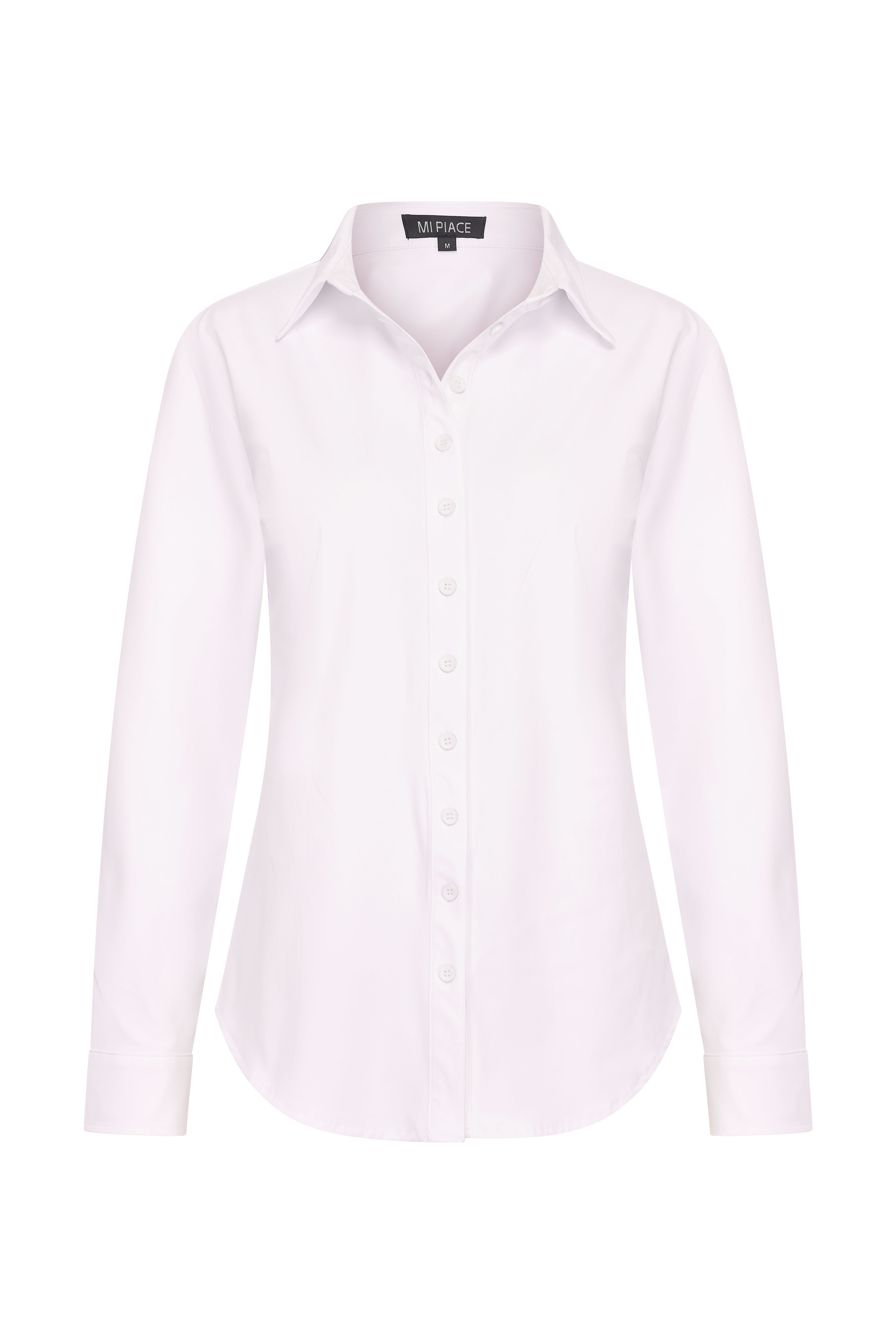 De Travel Blouse White van Mi Piace is een stijlvolle basic die in iedere garderobe past. De ademende, rekbare travelstof biedt een perfecte pasvorm en een frisse, verzorgde look.