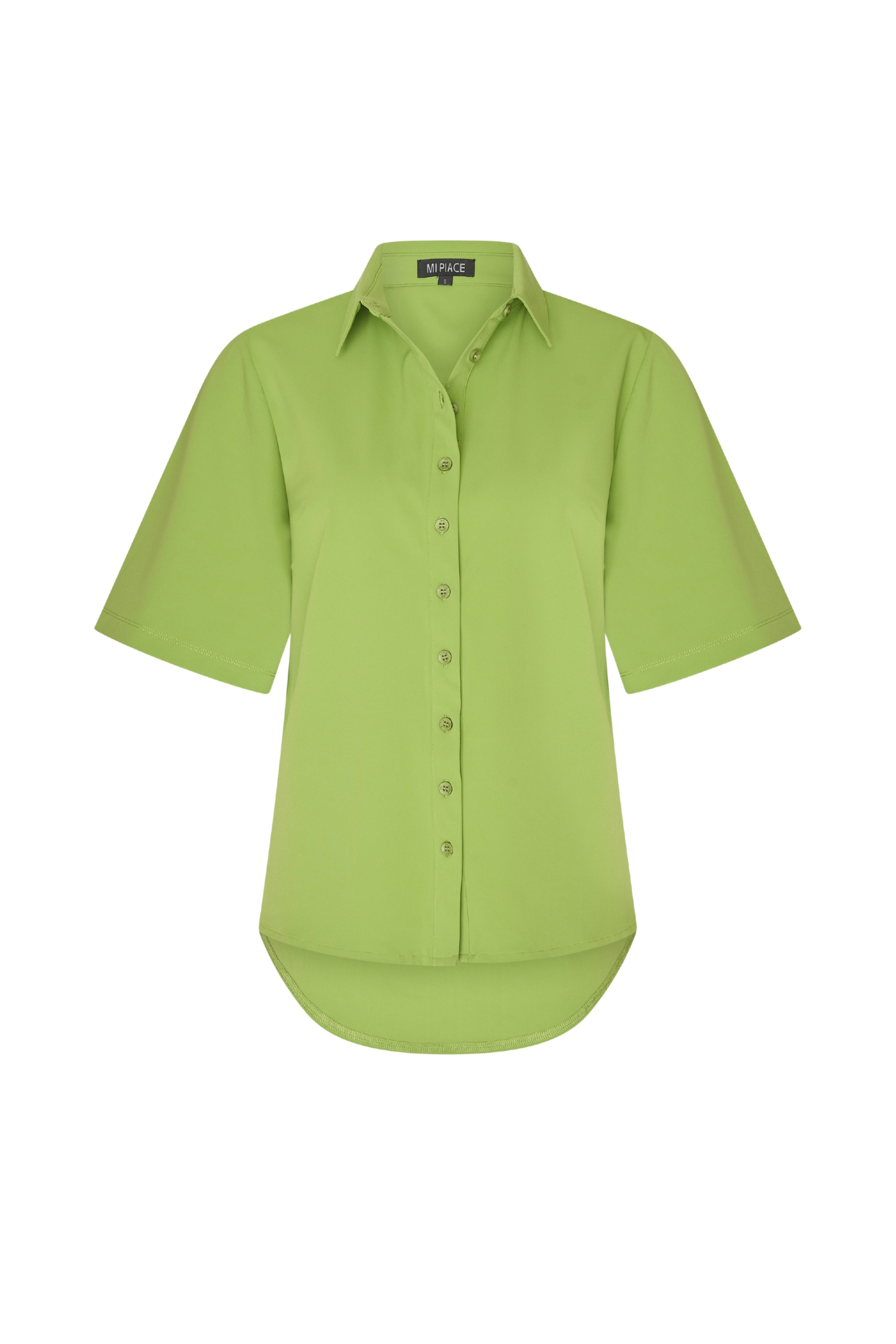 De Travel Blouse Wijde Mouw Kelp Forest van Mi Piace is een luchtige blouse met korte, wijde mouwen en doorknoopsluiting. De frisse groene kleur en soepelvallende stof geven een moderne touch aan elke outfit. Ideaal voor stijlvolle comfort.