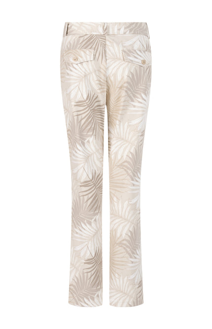 De Travel Broek Amee Sand van Zoso combineert een tropische print met een stijlvolle, rechte pasvorm. Gemaakt van soepele stretchstof met een bindceintuur voor extra flair. Comfort en karakter in één, perfect voor een relaxte, modieuze look.