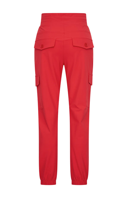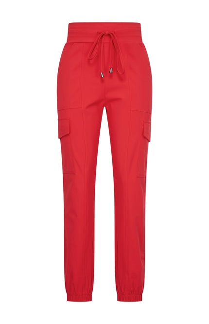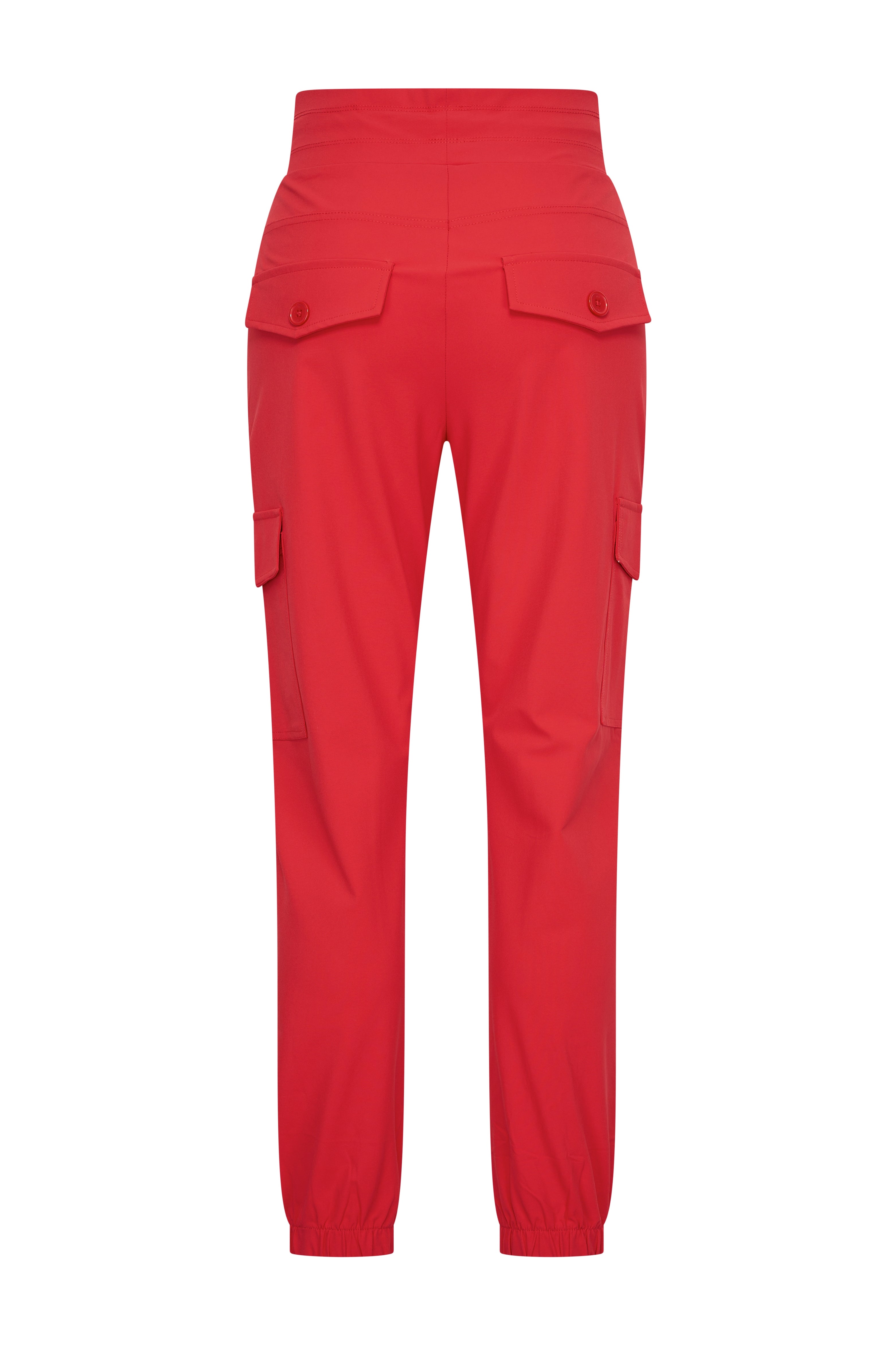 Mi Piace Travel Broek Cargo Red, comfort en stijl komen samen in deze kreukvrije broek met cargozakken en elastische tailleband. Ideaal voor reizen of dagelijks gebruik. Gemaakt van ademende travelstof voor ultiem draagcomfort.