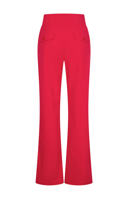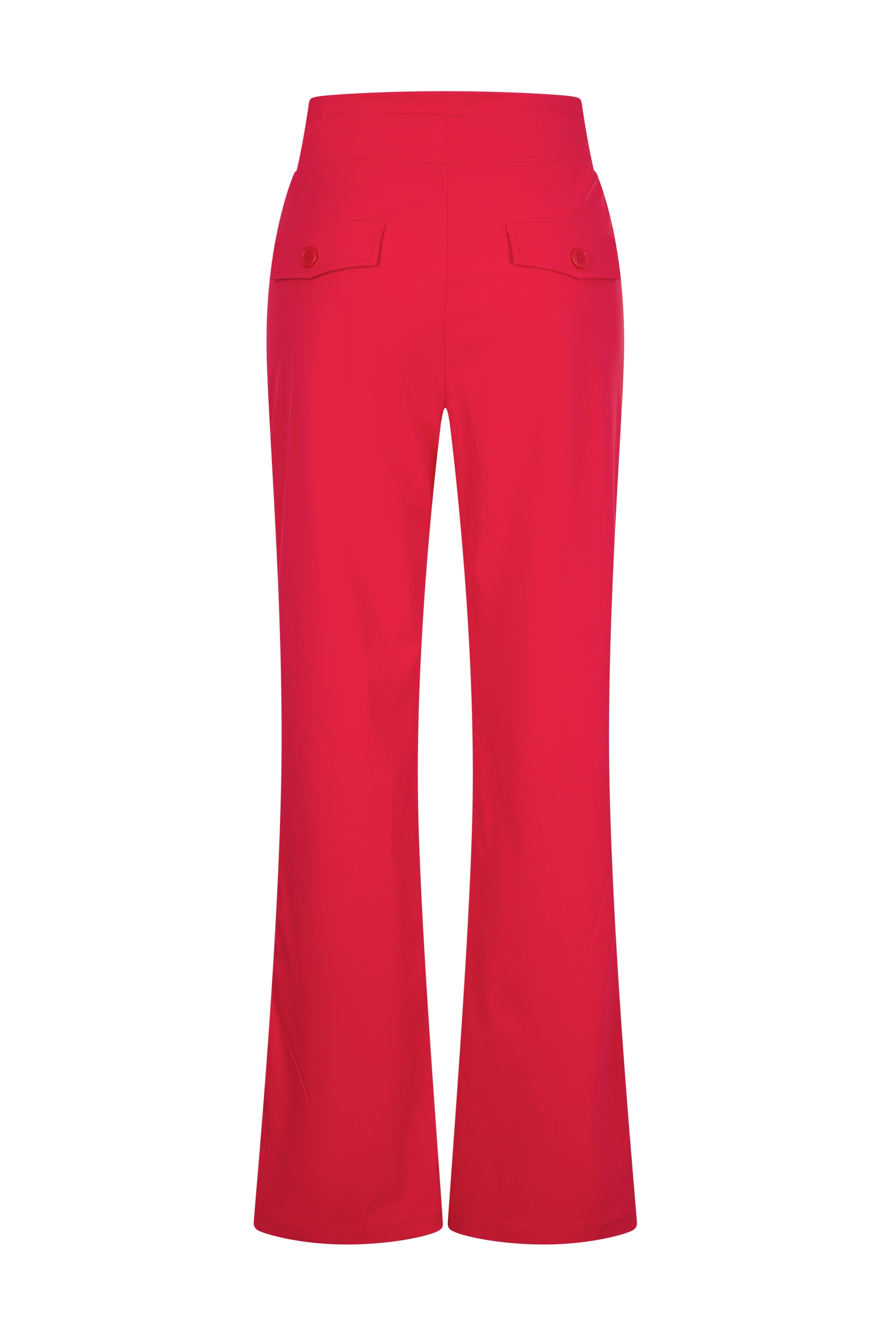 De Mi Piace Travel Flared broek in rood is een echte eyecatcher. De soepele travelstof zorgt voor ultiem draagcomfort en een perfecte pasvorm. Combineer deze broek moeiteloos voor een stijlvolle, opvallende look.
