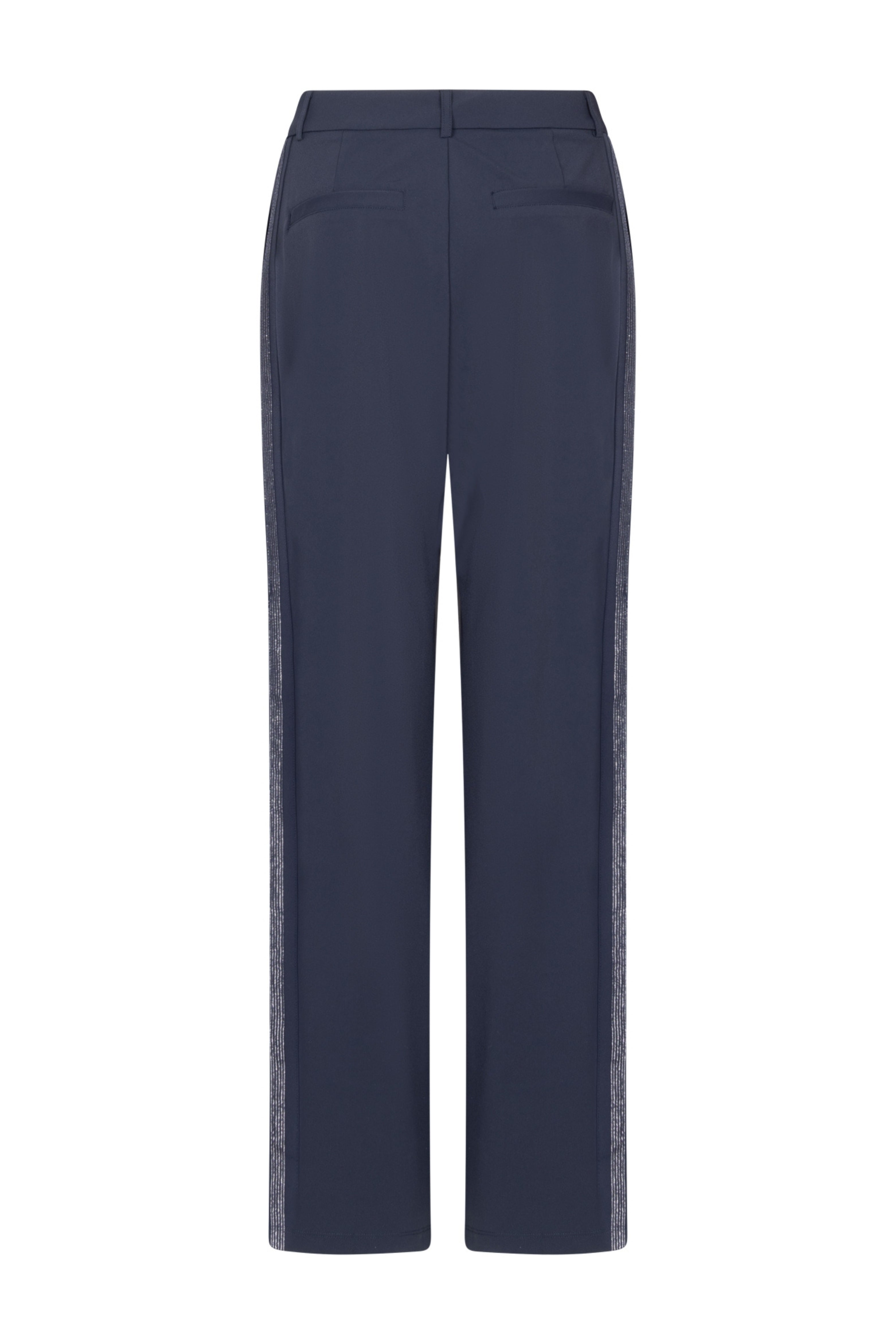 De Travel Broek Nadia Navy van ZOSO is een stijlvolle en comfortabele toevoeging aan je garderobe. Uitgevoerd in een diepe navy kleur, heeft deze broek een elegante rechte pijp en een moderne twist dankzij de subtiele glitterbies langs de zijnaden.