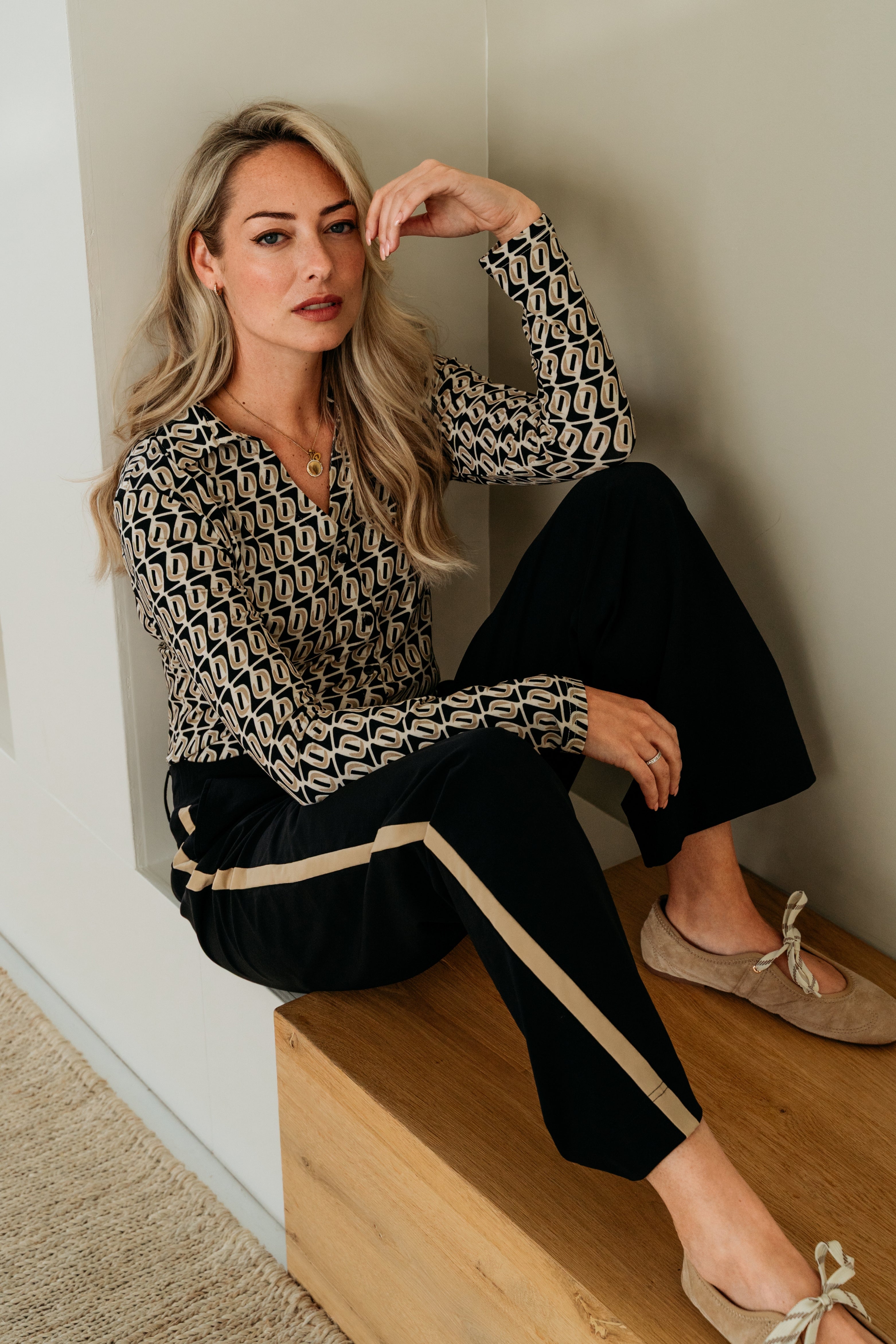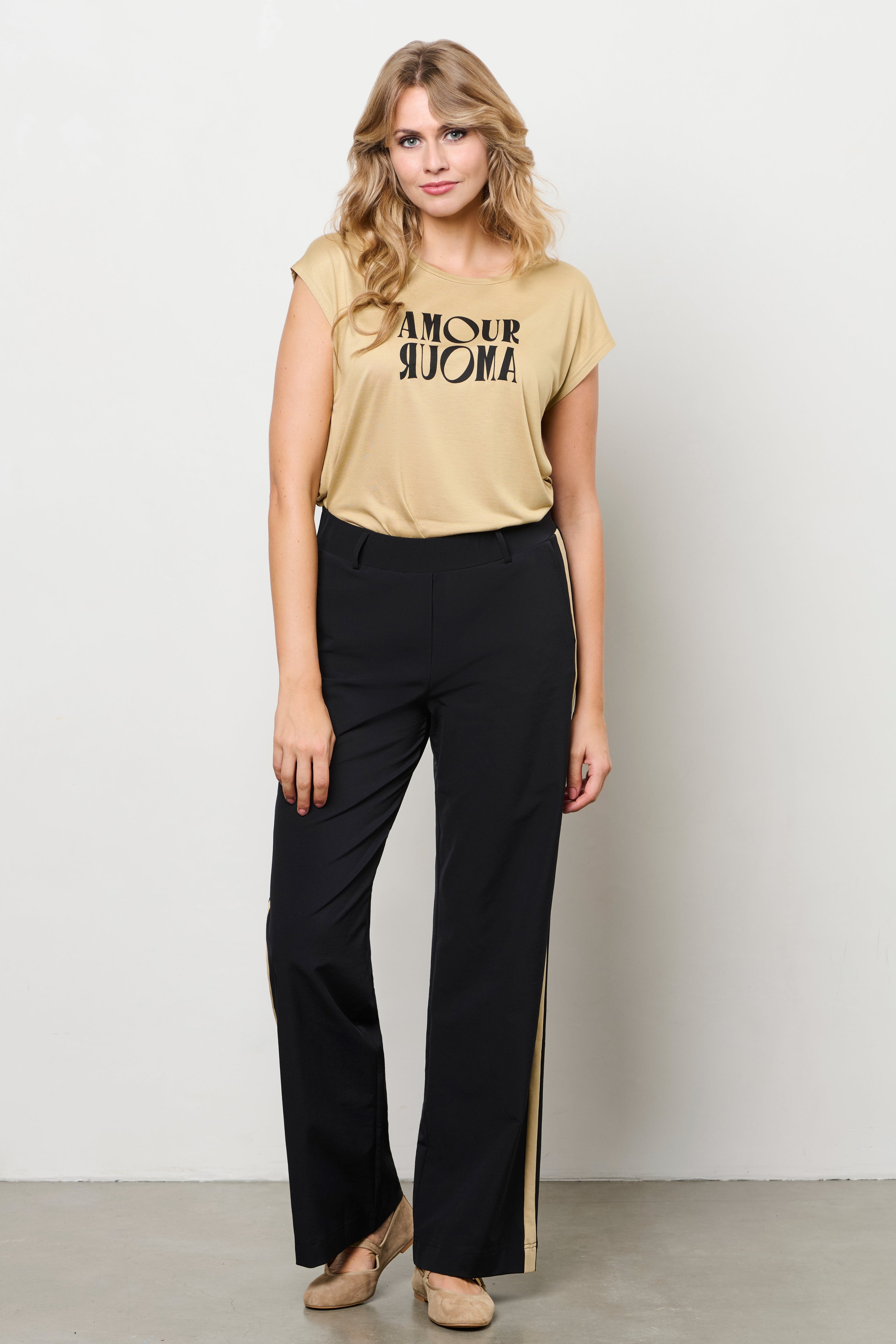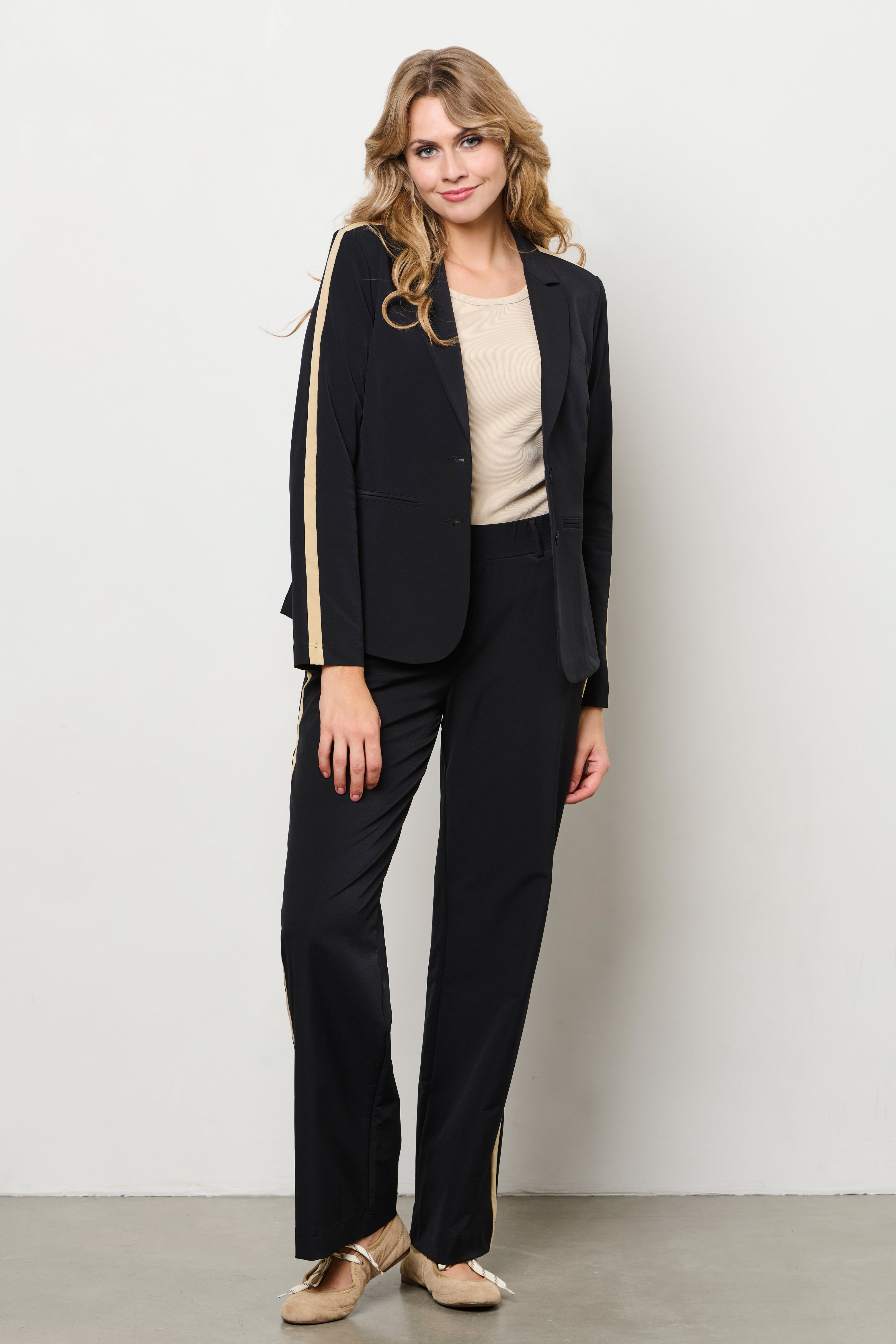 De Travel Broek Pammy Black van &Co Woman is een elegante travelbroek met rechte pijpen en een contrasterende zijstreep. De comfortabele stof maakt deze broek perfect voor elke dag.
