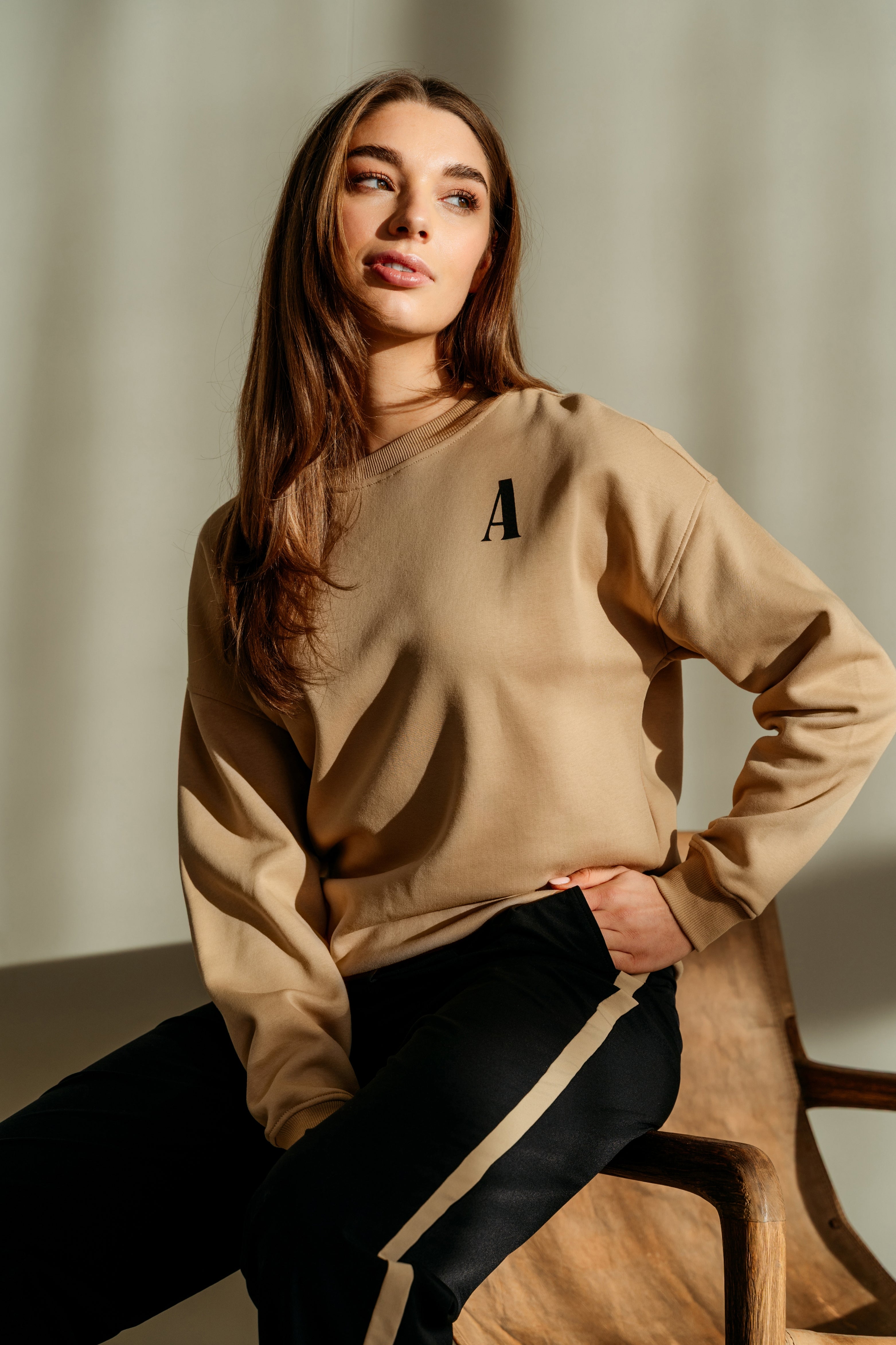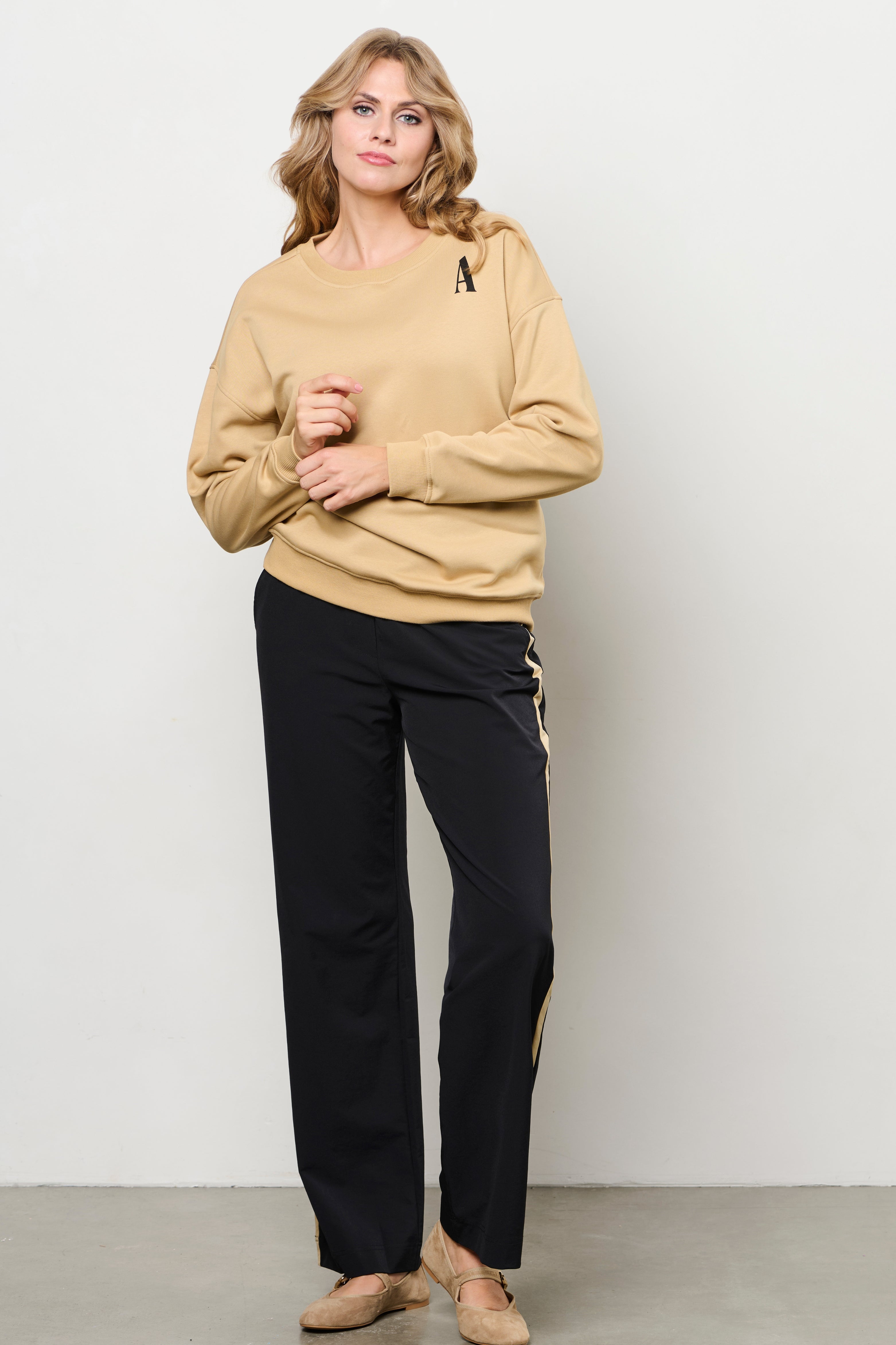 • Het ecom model is 177 cm en draagt maat M, de campagne modellen zijn 172 cm en dragen maat S