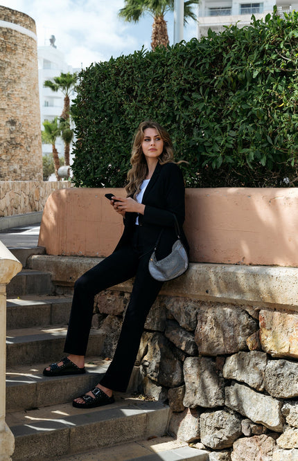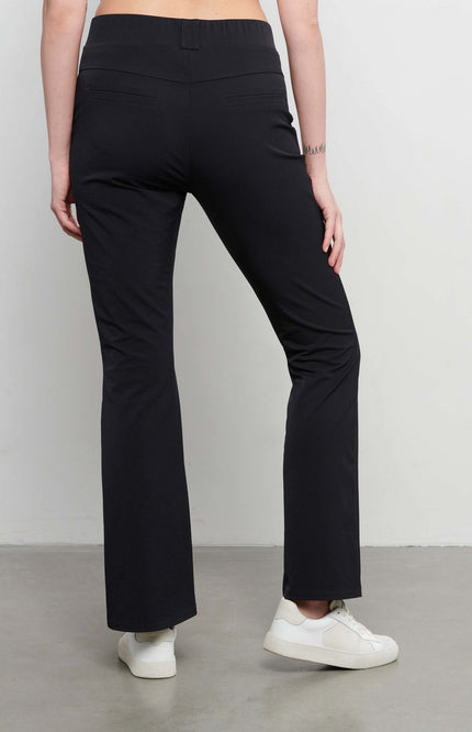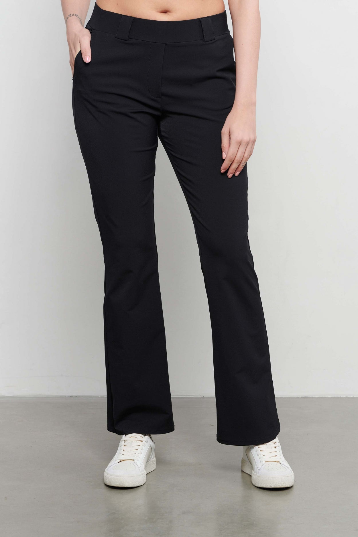 De Penelope Flare broek van &Co woman is gemaakt van zachte travelstof, wat zorgt voor een comfortabel en ademend gevoel tijdens het dragen. De stof is ook elastisch, waardoor het perfect is voor verschillende activiteiten, zoals reizen of sporten.