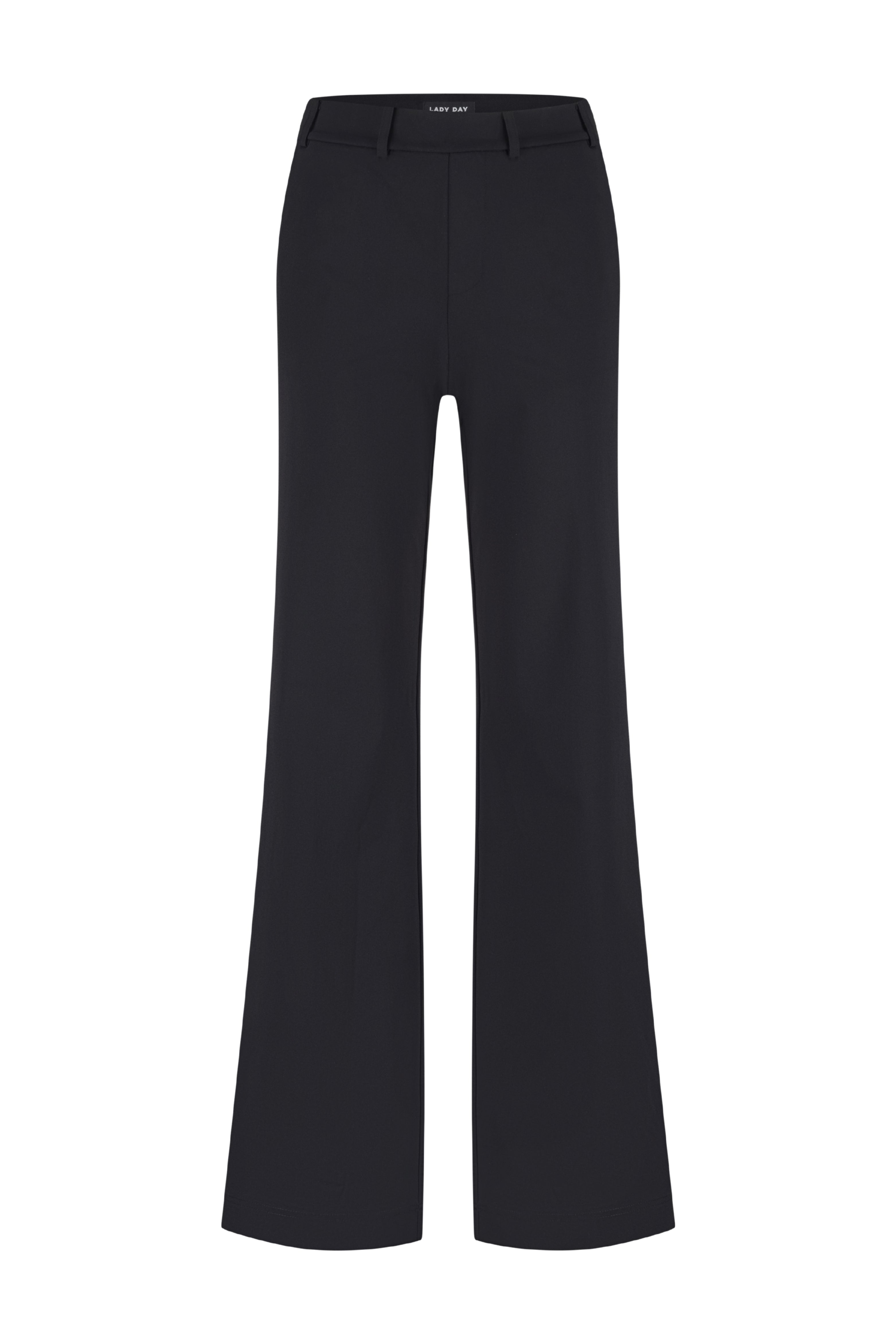 De Travel Broek Phoenix Black van Lady Day is een comfortabele travelbroek met hoge taille. Van stretchy Travelstof en de flared pijpen geven lengte. Perfect voor kantoor en reizen.