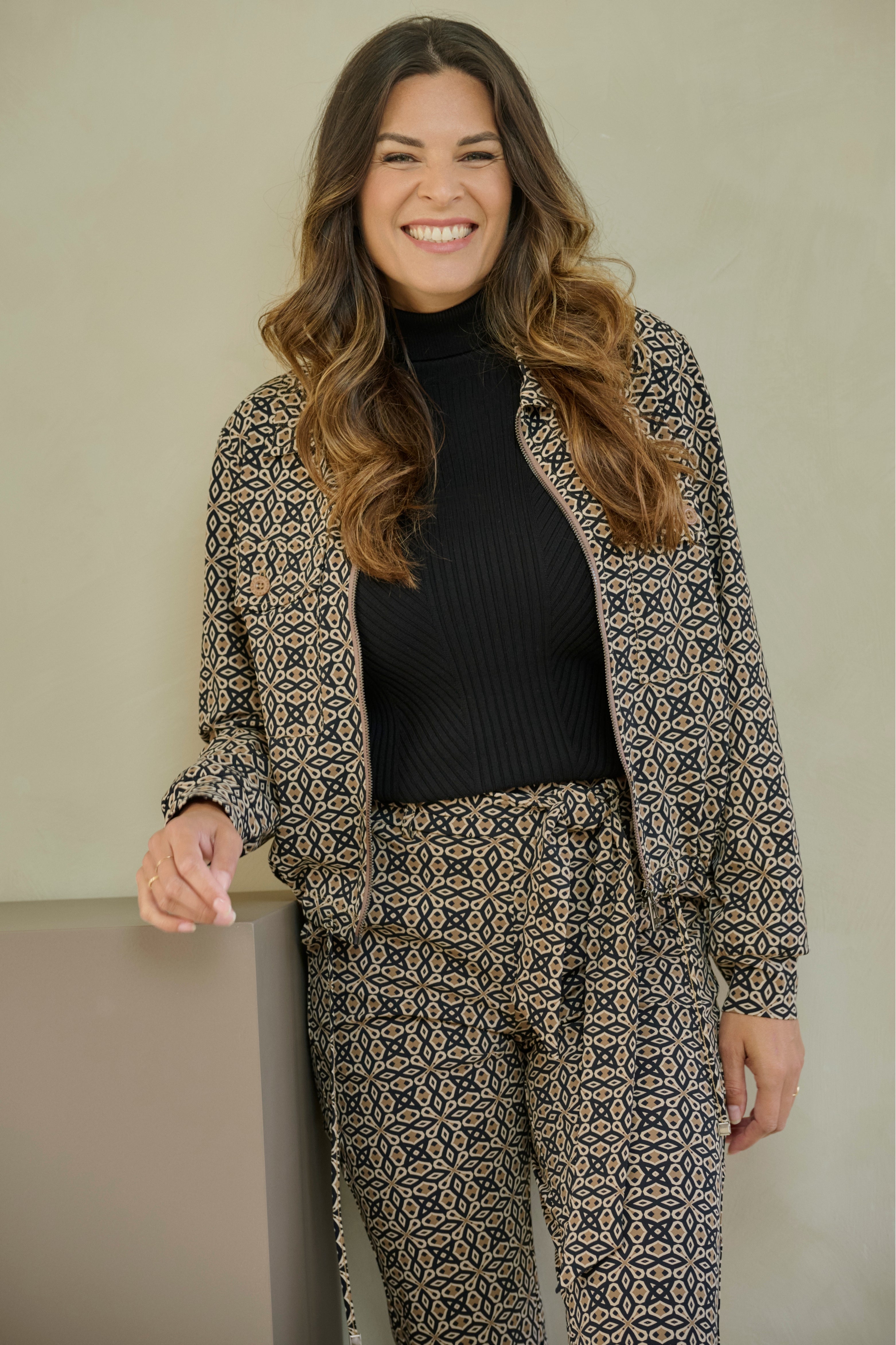De Travel Broek Pretty Black Camel van Zoso is een comfortabele broek met opvallende grafische print. Het rechte model met strikceintuur zorgt voor een trendy en relaxte uitstraling.