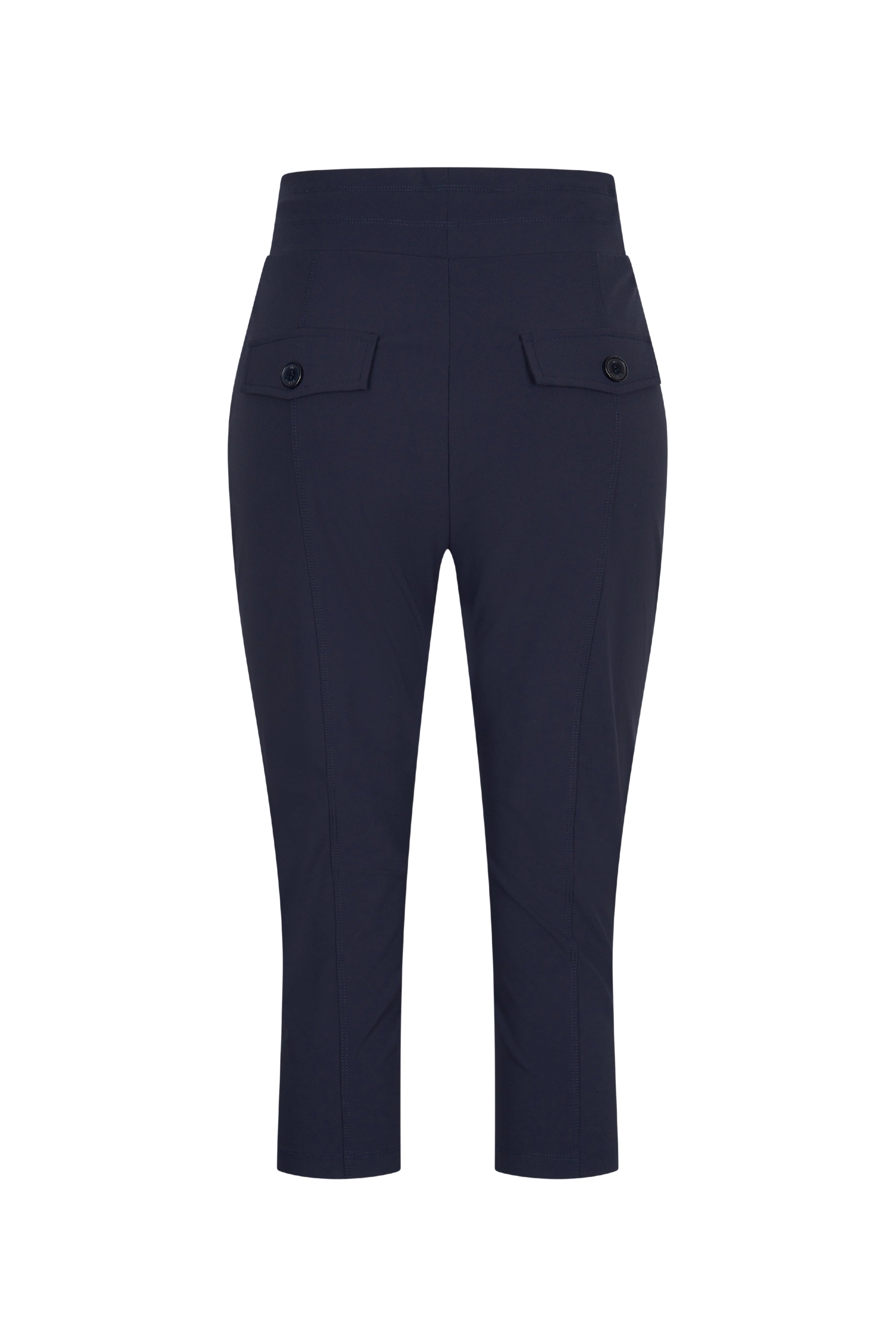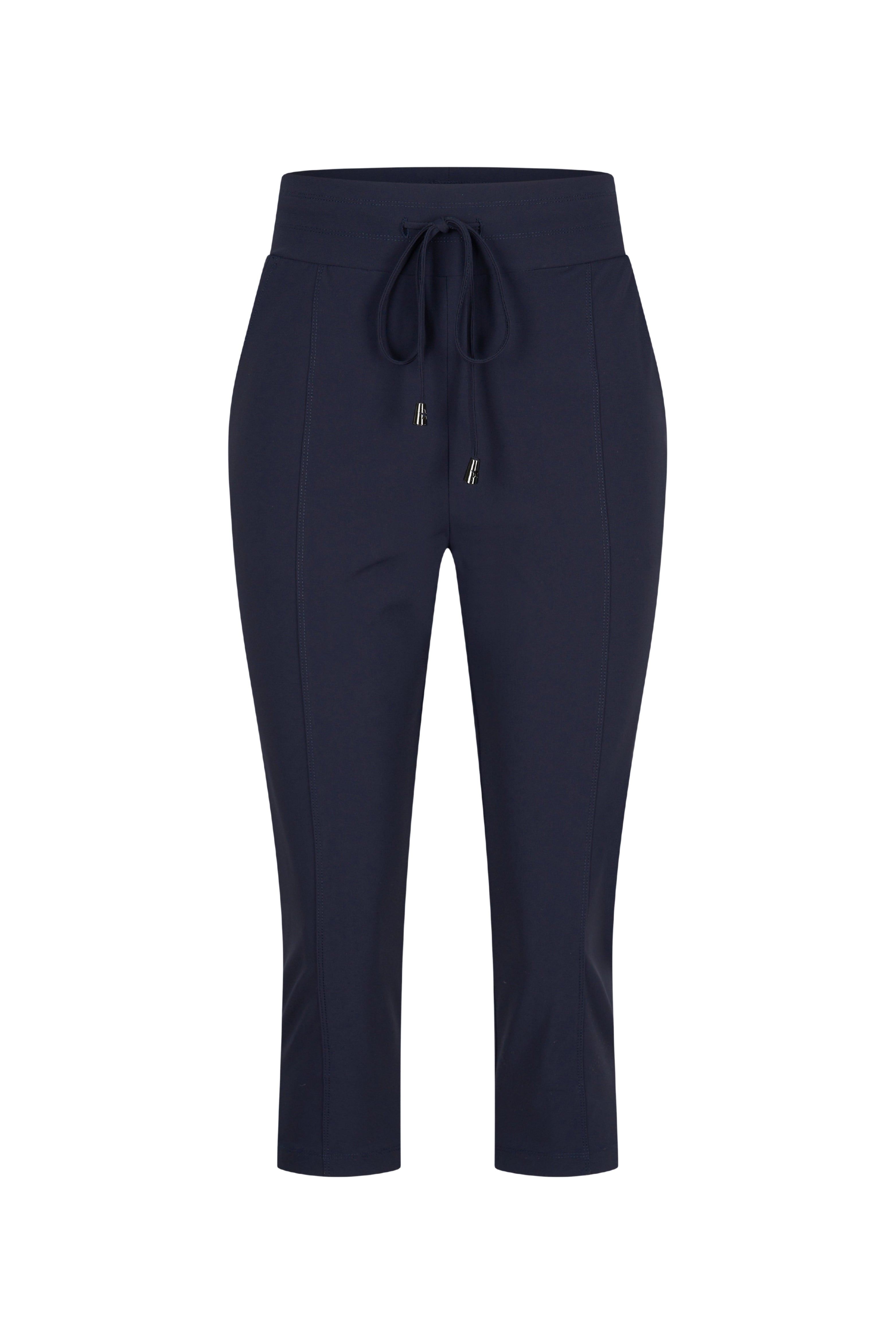 De Travel Capri Navy van Mi Piace is een elegante broek met een flatterende pasvorm. De donkerblauwe kleur geeft een verzorgde, stijlvolle uitstraling. De travelstof zorgt voor een zachte, soepele feel en blijft altijd mooi in vorm.
