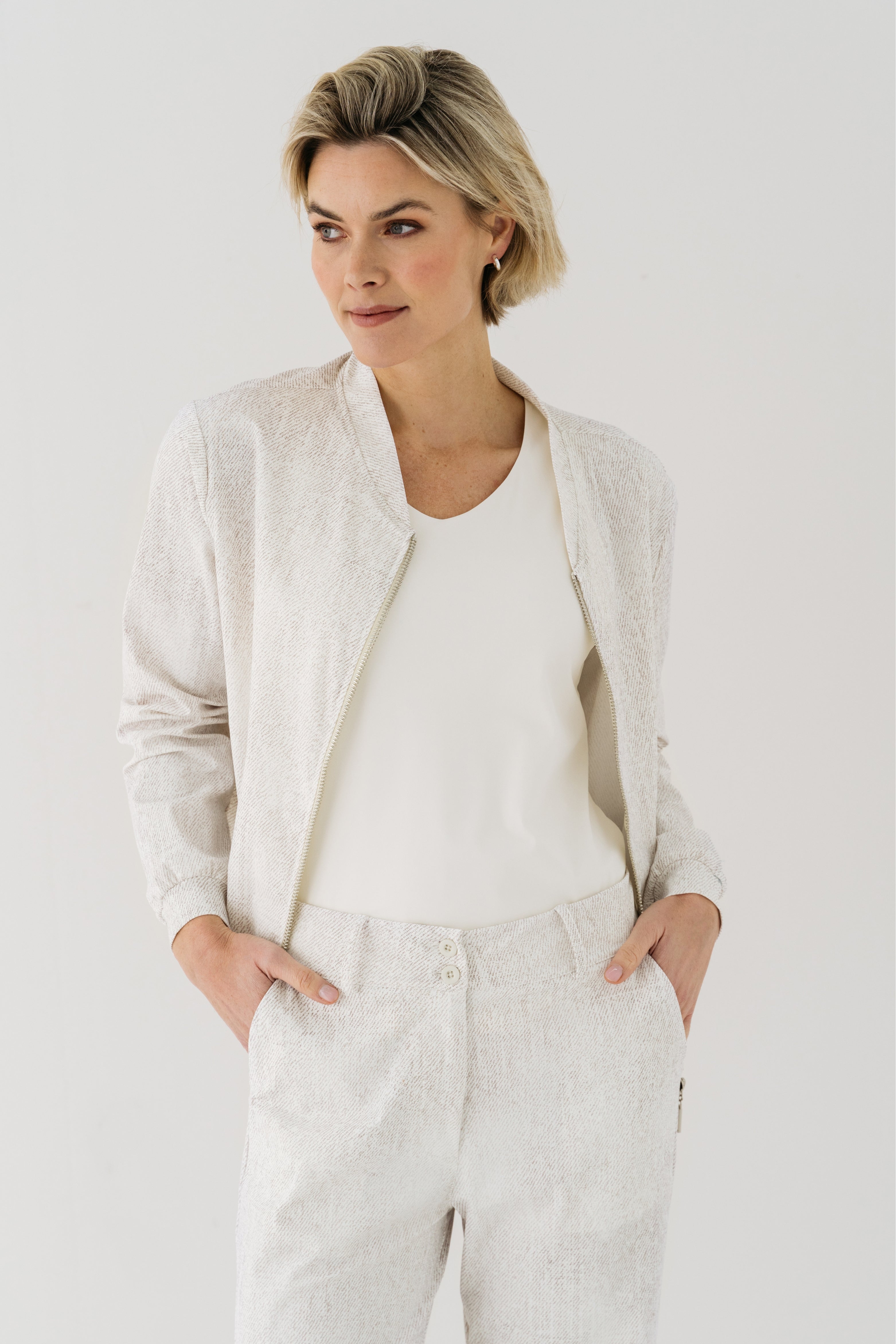 De Travel Jacket Taupe Jeans van Maicazz is een stijlvolle en trendy bomberjack met een luxe uitstraling. De subtiele taupe kleur met een verfijnde jeansstructuur maakt deze jas perfect voor zowel casual als chique outfits