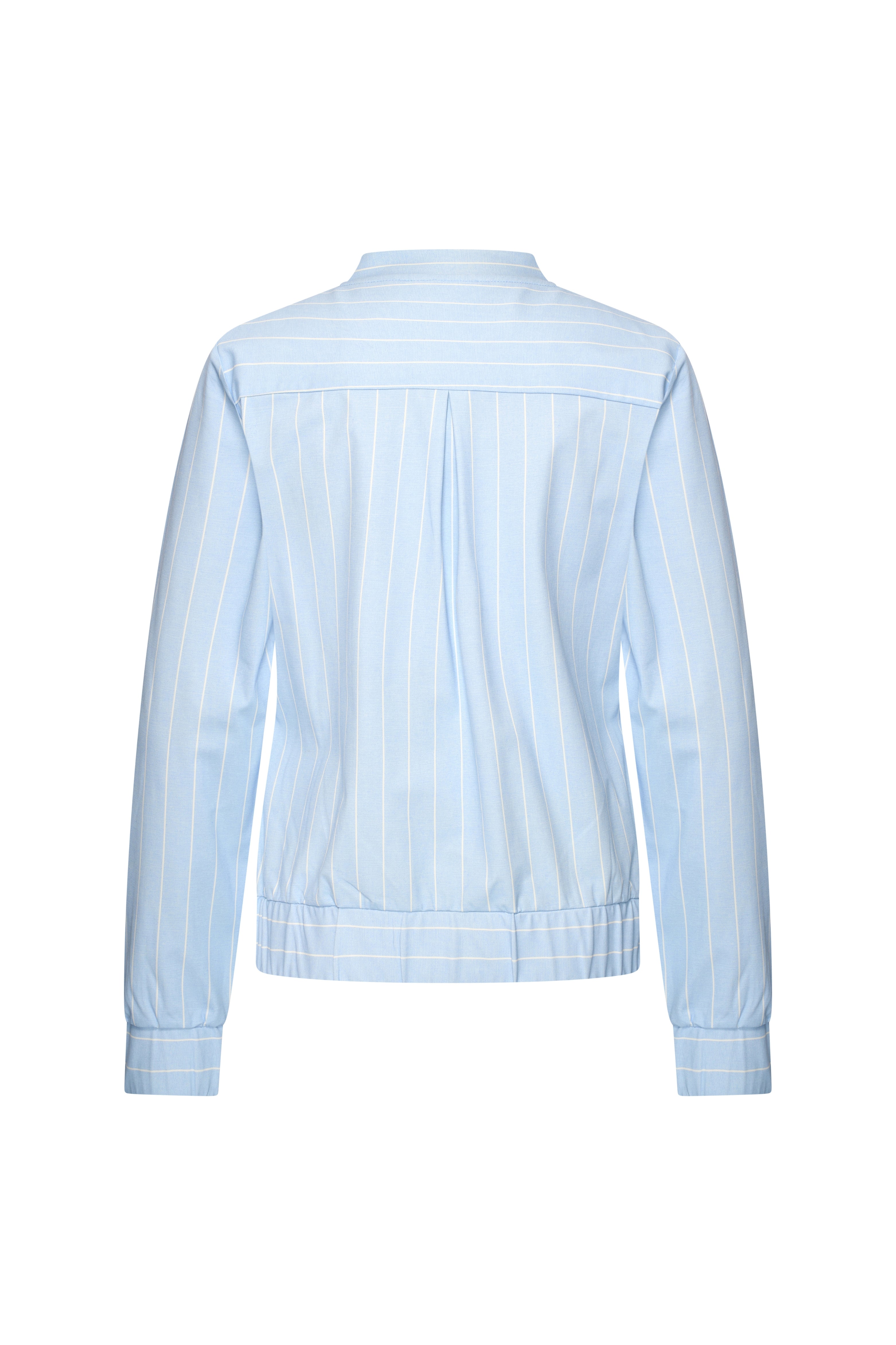Het Travel Jacket Classic Stripe Lavender Blue van Mi Piace is een stijlvol bomberjack met een tijdloze streep en een moderne uitstraling. De soepele travelstof biedt veel draagcomfort en geeft het jasje een mooie valling. Door het korte bombermodel is dit item ideaal om te dragen als lichte jas of als stijlvolle extra laag over je outfit.