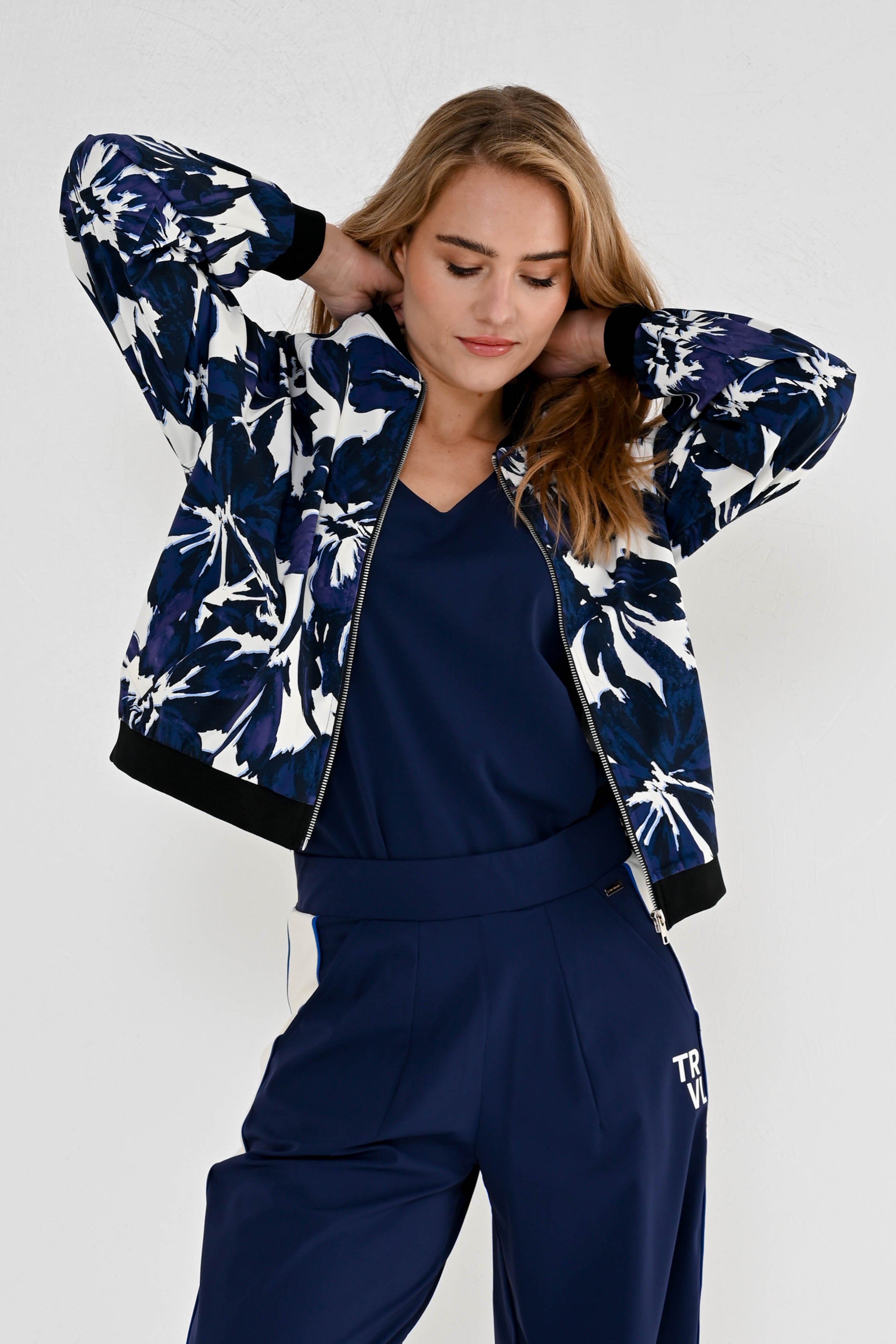 De Travel Jacket Jossy Blue Flower is een stijlvolle eyecatcher met een frisse bloemenprint. De soepele travelstof draagt comfortabel en maakt dit jasje perfect voor zowel casual als geklede outfits.