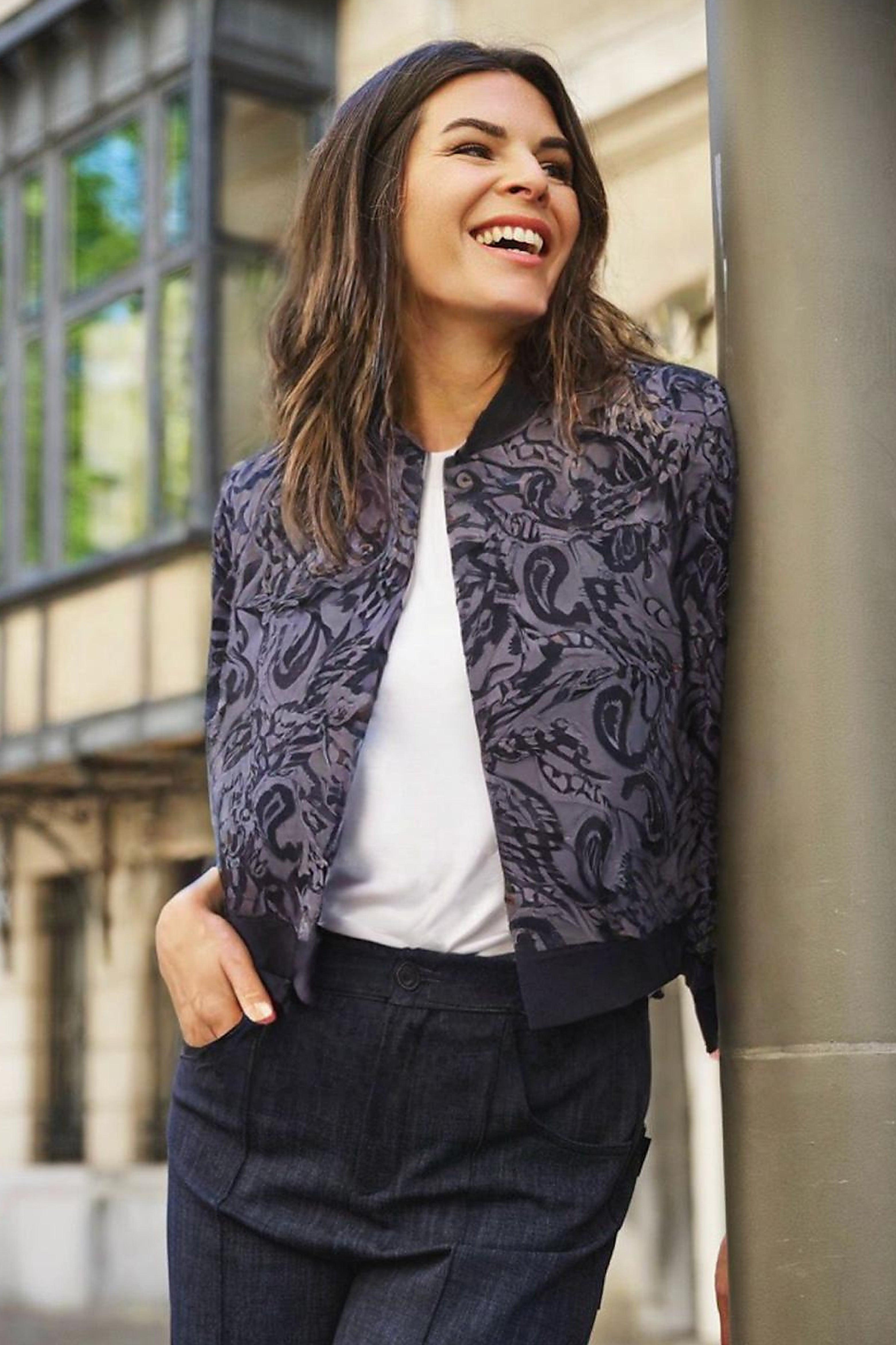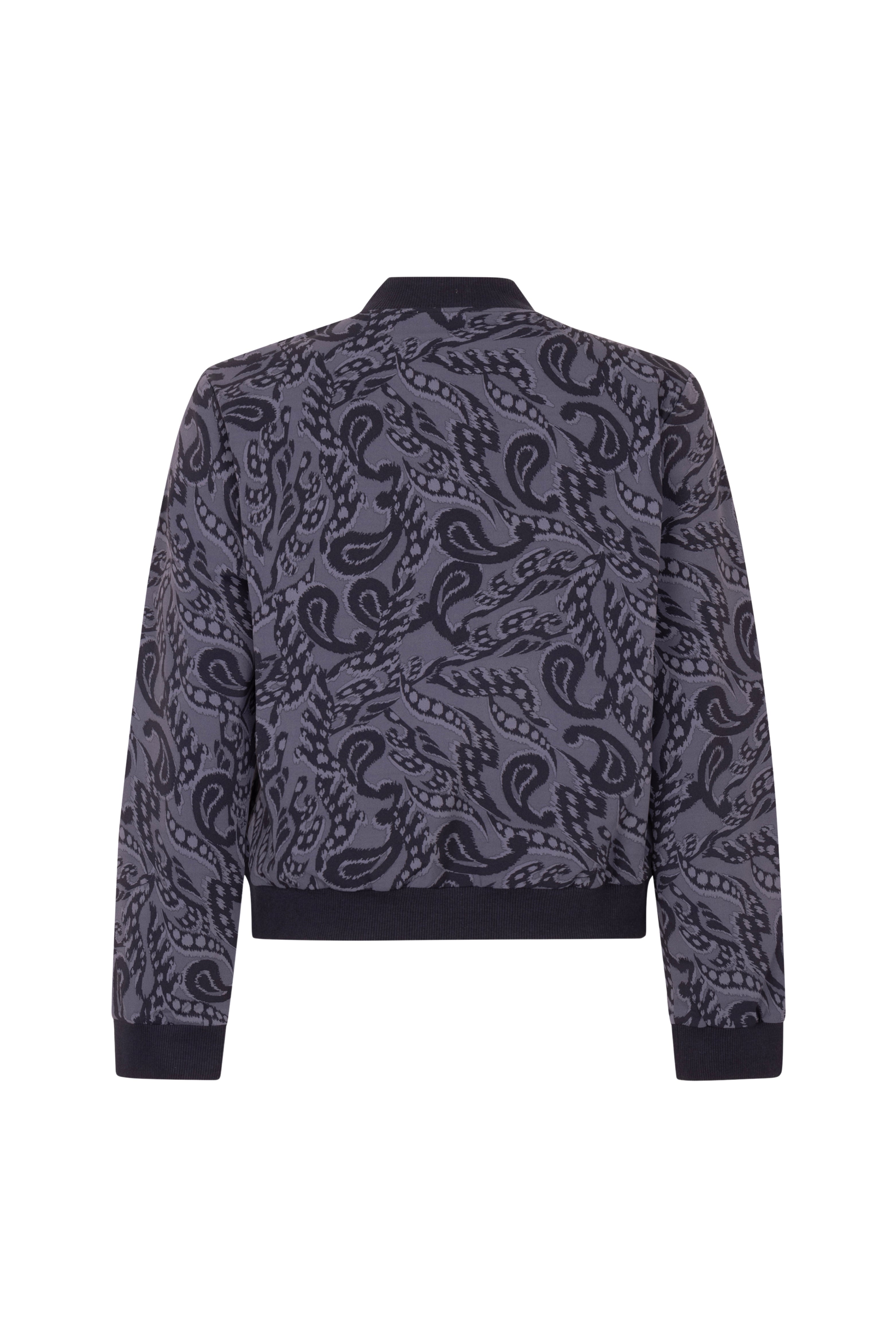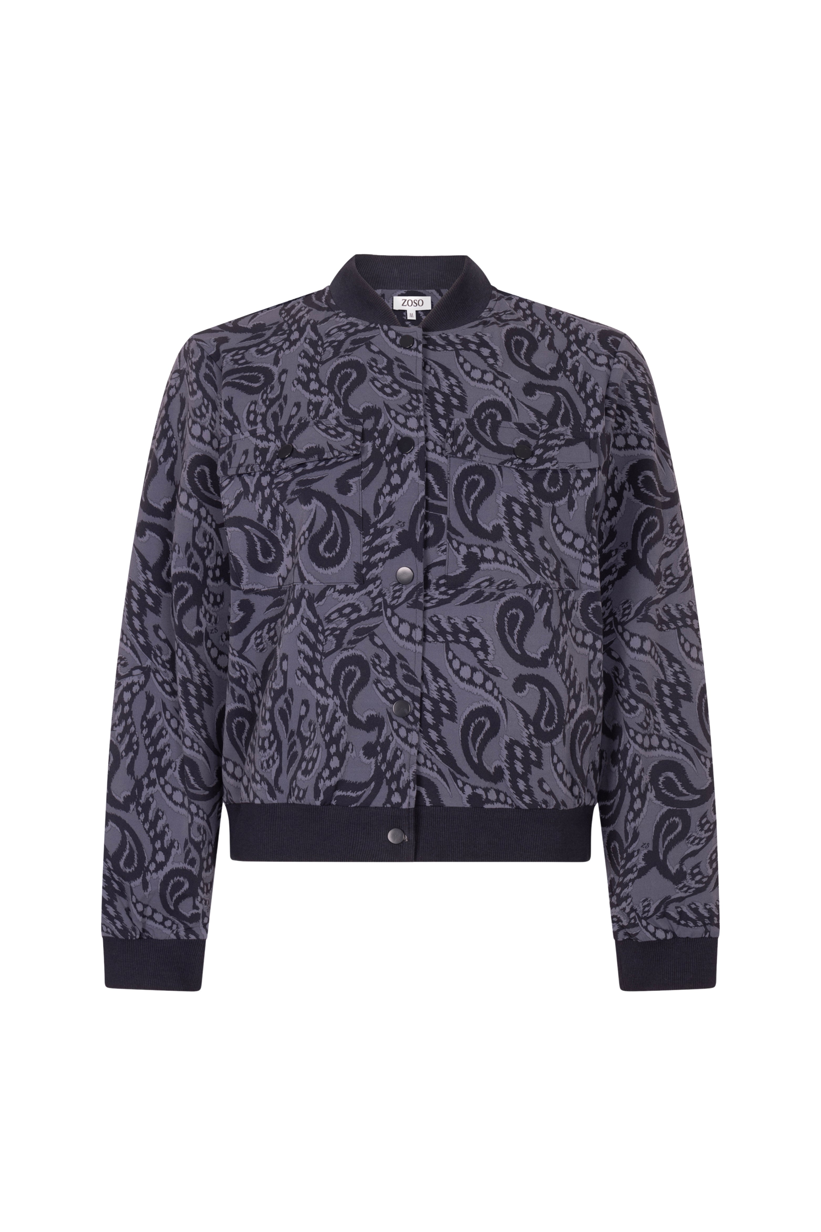 Travel Jacket Lotte Navy van Zoso geeft je look een frisse twist met zijn opvallende paisley dessin. De geribde boorden en bomberkraag zorgen voor een sportieve touch, terwijl de drukknoopsluiting en borstzakken het ontwerp praktisch maken.
