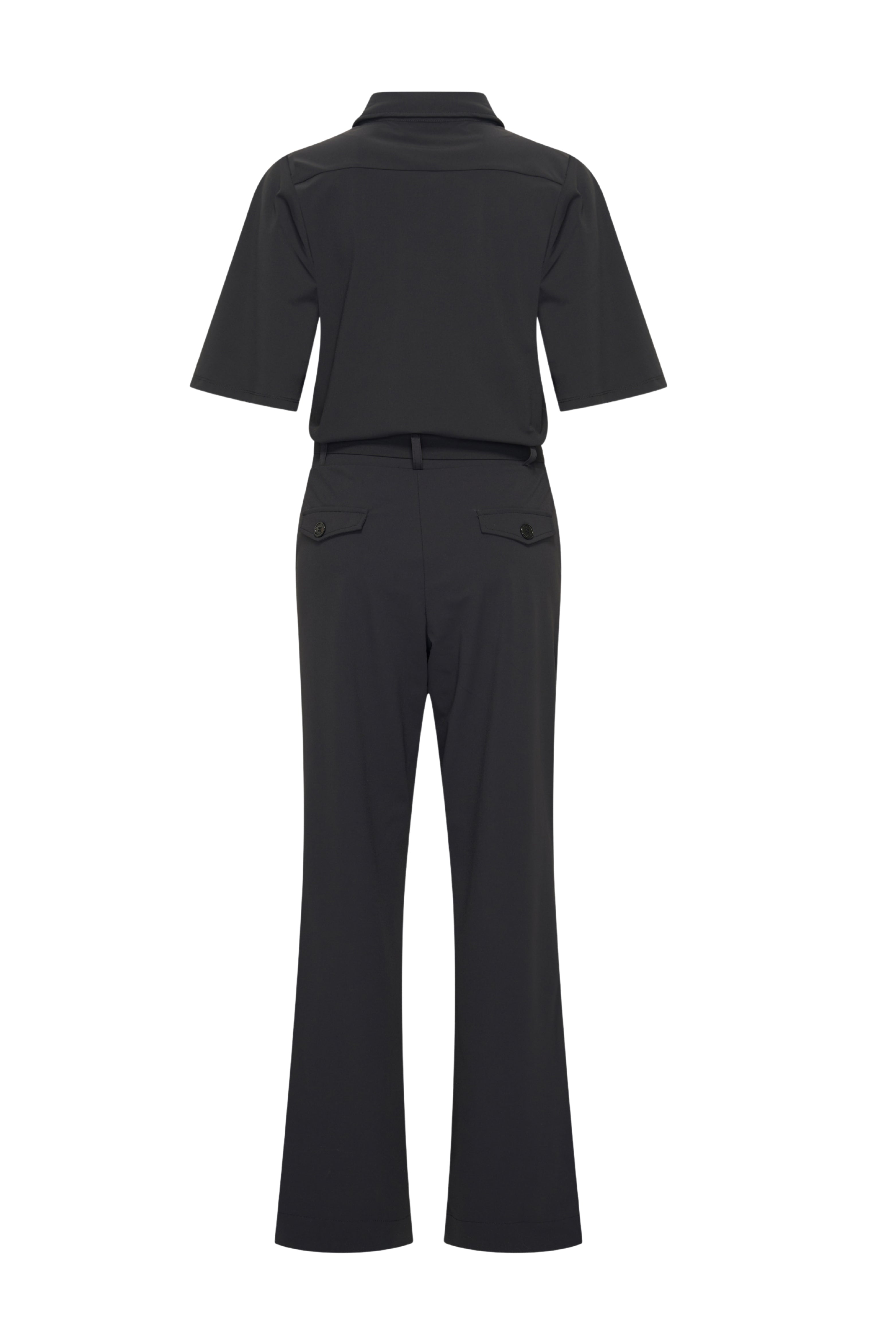 De Travel Jumpsuit Black van Mi Piace is een stijlvolle en comfortabele keuze. Met een flatterende strikceintuur, klassieke kraag en halflange mouwen is deze jumpsuit perfect voor een moeiteloze, elegante look.