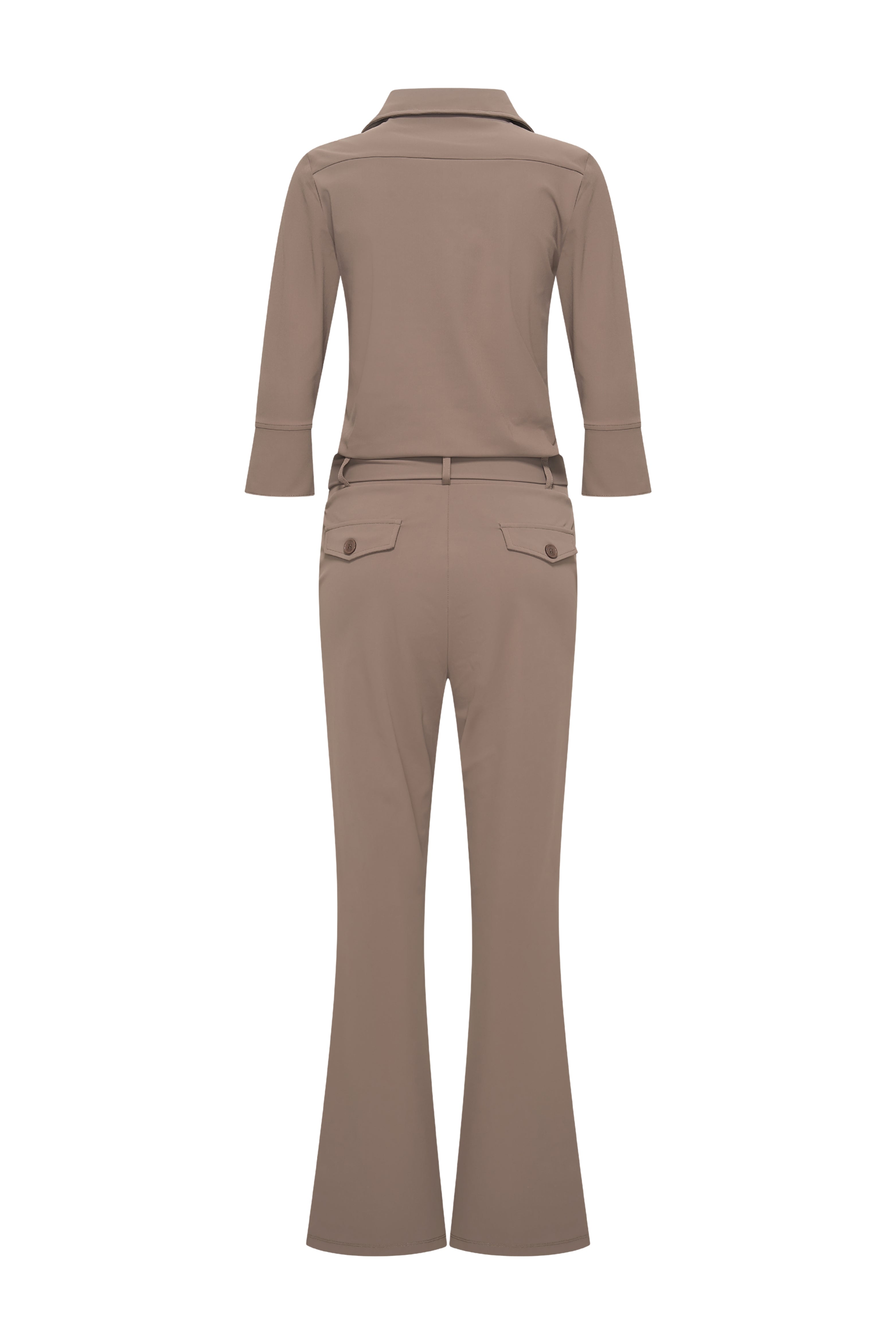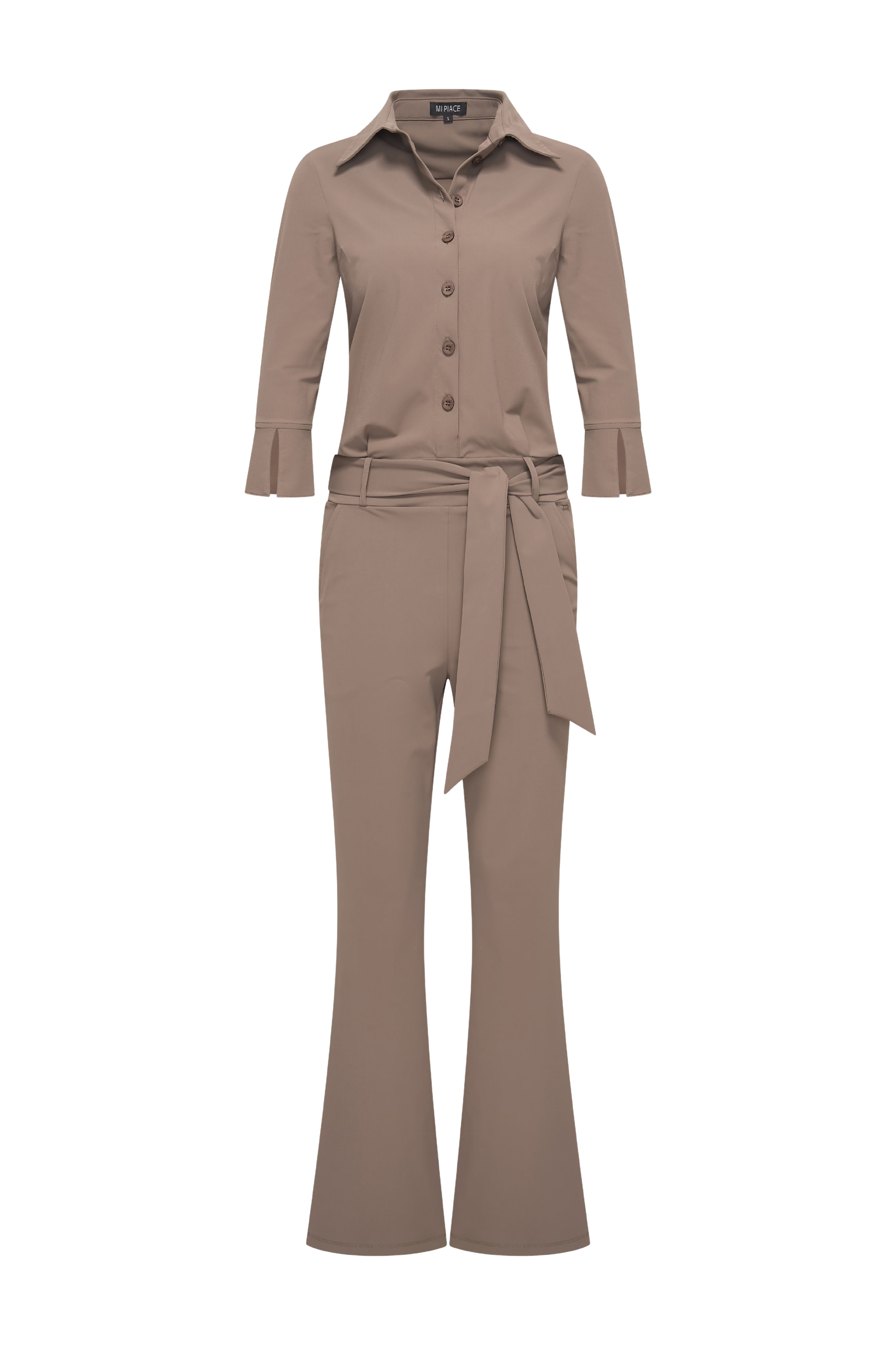 De Travel Jumpsuit Flared Falcon van Mi Piace combineert elegantie met comfort. Met knoopsluiting, strikceintuur en flared pijpen. Vervaardigd uit kreukvrije, ademende travelstof. Geschikt voor zowel casual als zakelijke gelegenheden.