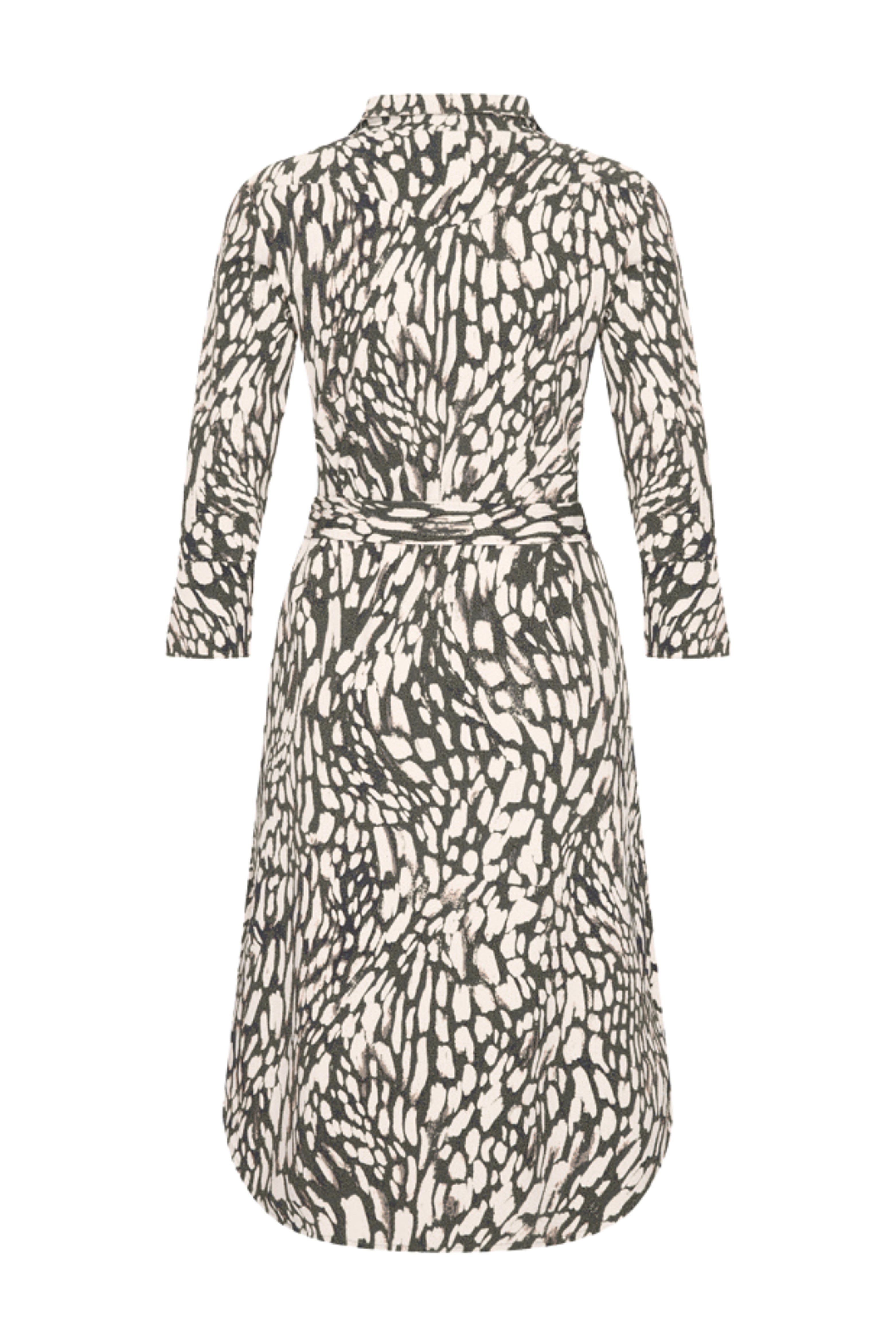 Mi Piace Travel Jurk Abstracte Print Deep Depth Kit: stijlvolle jurk met moderne abstracte print, soepele kreukvrije travelstof en flatterende taille. Perfect voor een chique of casual look, altijd comfortabel en elegant.
