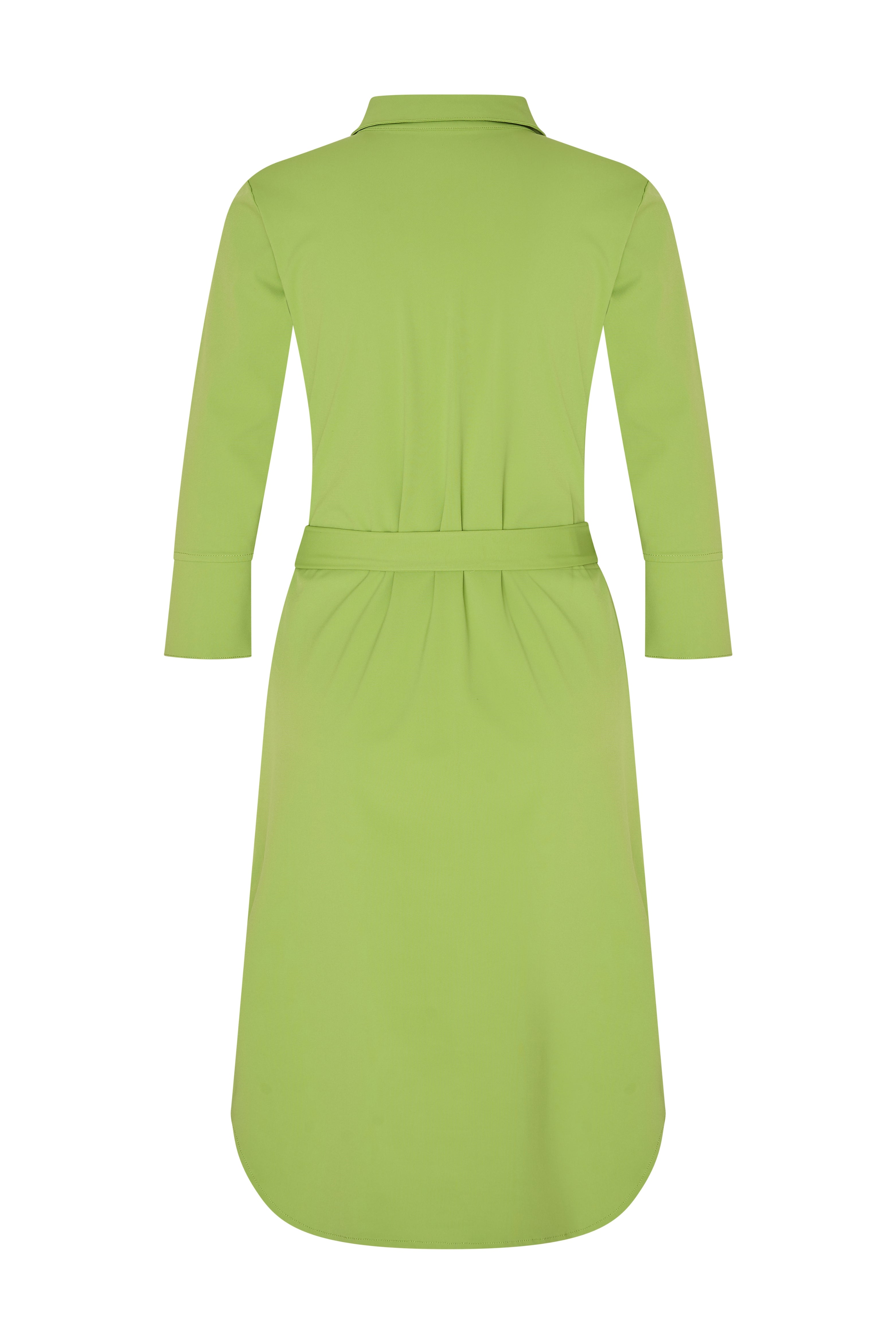 De Travel Jurk van Mi Piace in de kleur Kelp Forest is een stijlvolle essential met een frisse groene tint. De flatterende tailleriem, doorknoopsluiting en driekwartsmouwen zorgen voor een elegante en comfortabele look โ€“ perfect voor elke gelegenheid!