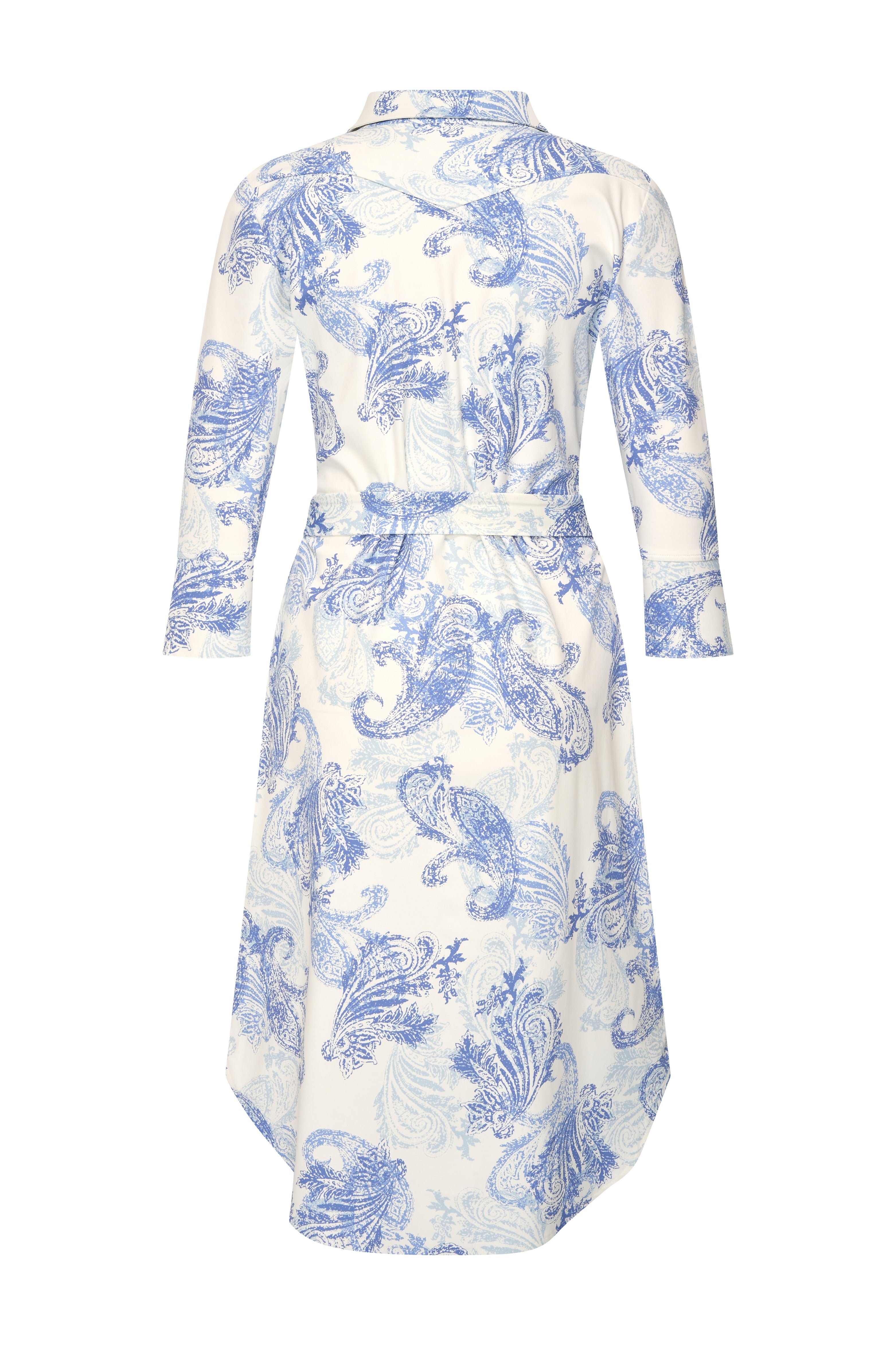 De Travel Jurk Paisley Print Lavender Blue van Mi Piace is een elegante jurk met een verfijnde paisleyprint en een vrouwelijke uitstraling. De soepele travelstof en bijpassende tailleceintuur zorgen voor een comfortabele pasvorm en een mooi geaccentueerd silhouet.