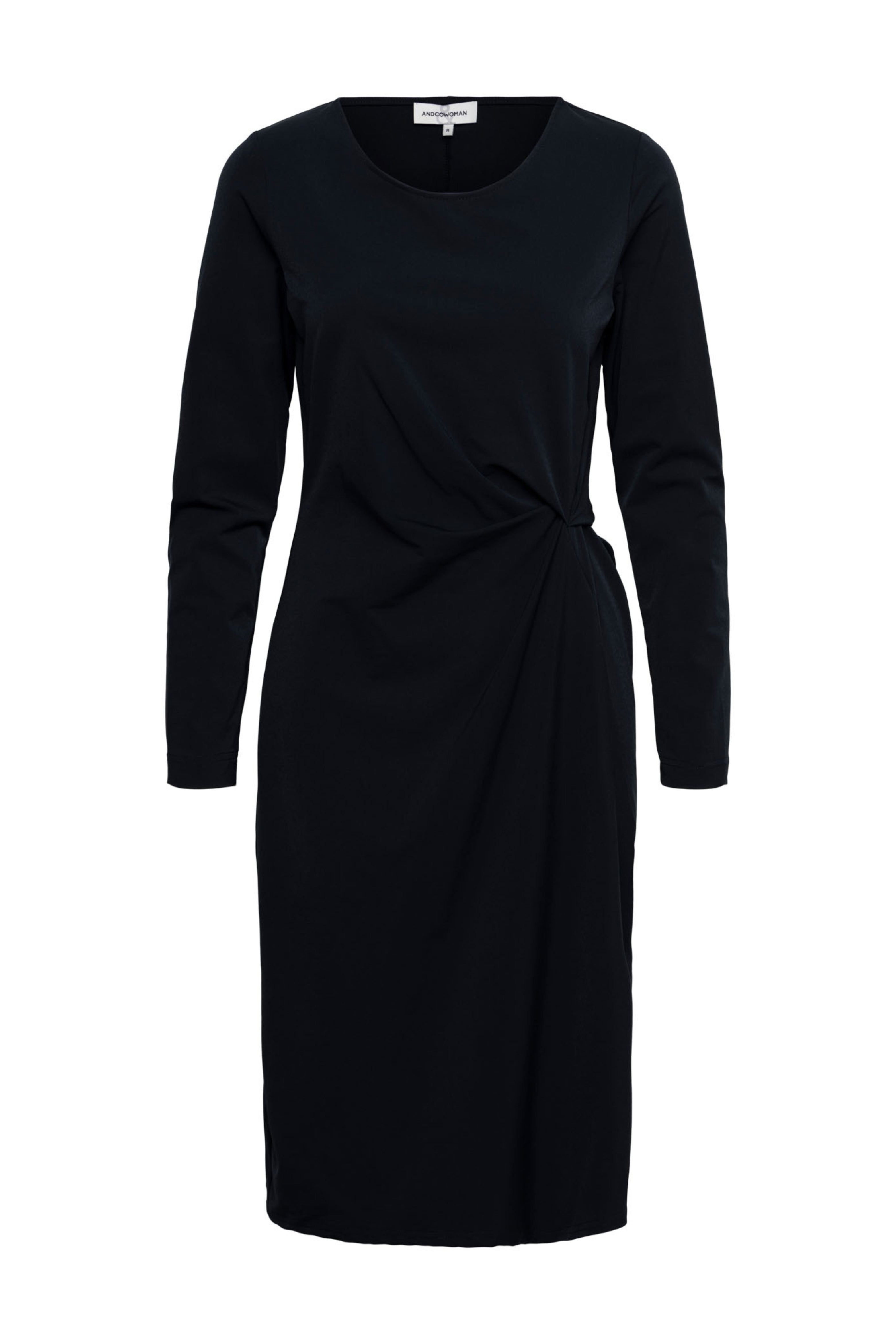 De Travel Jurk Pia Navy van &Co Woman is een elegante, vrouwelijke jurk met een flatterend drapeerdetail in de taille. De comfortabele travelstof maakt dit item ideaal voor zowel werk als een stijlvolle avondlook.