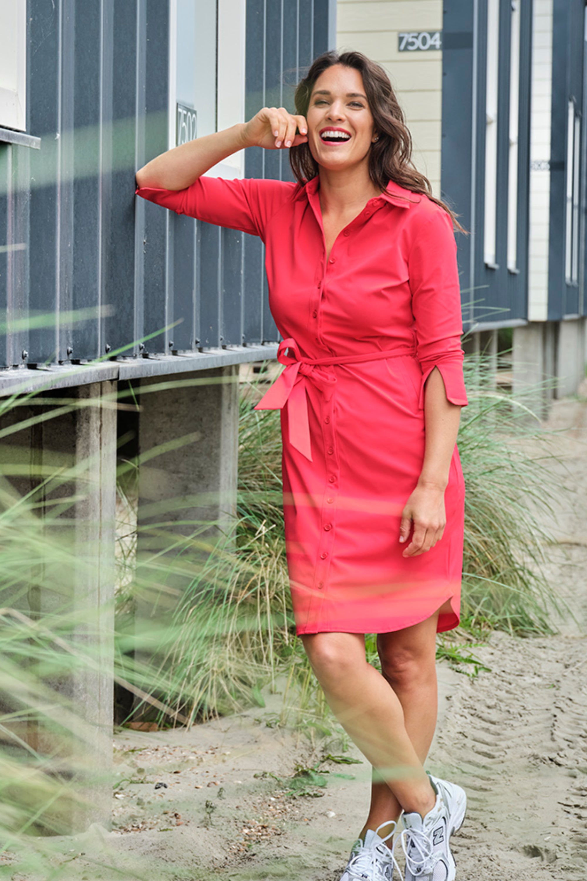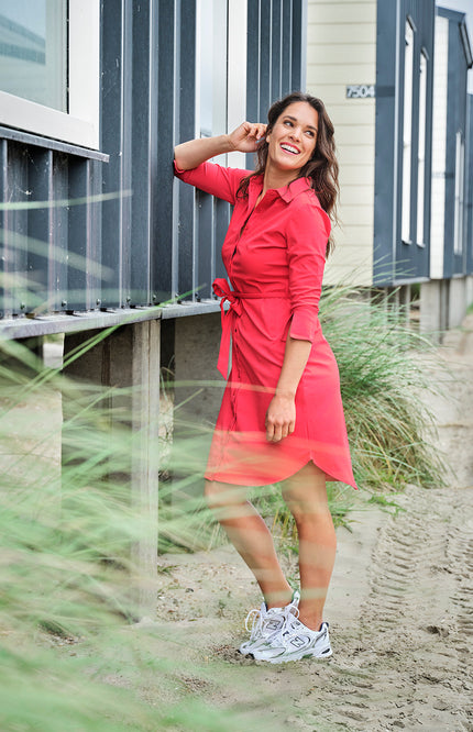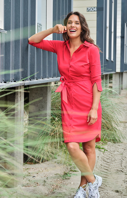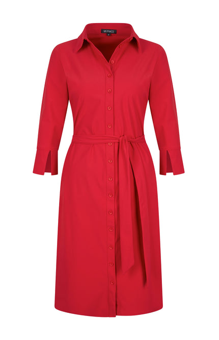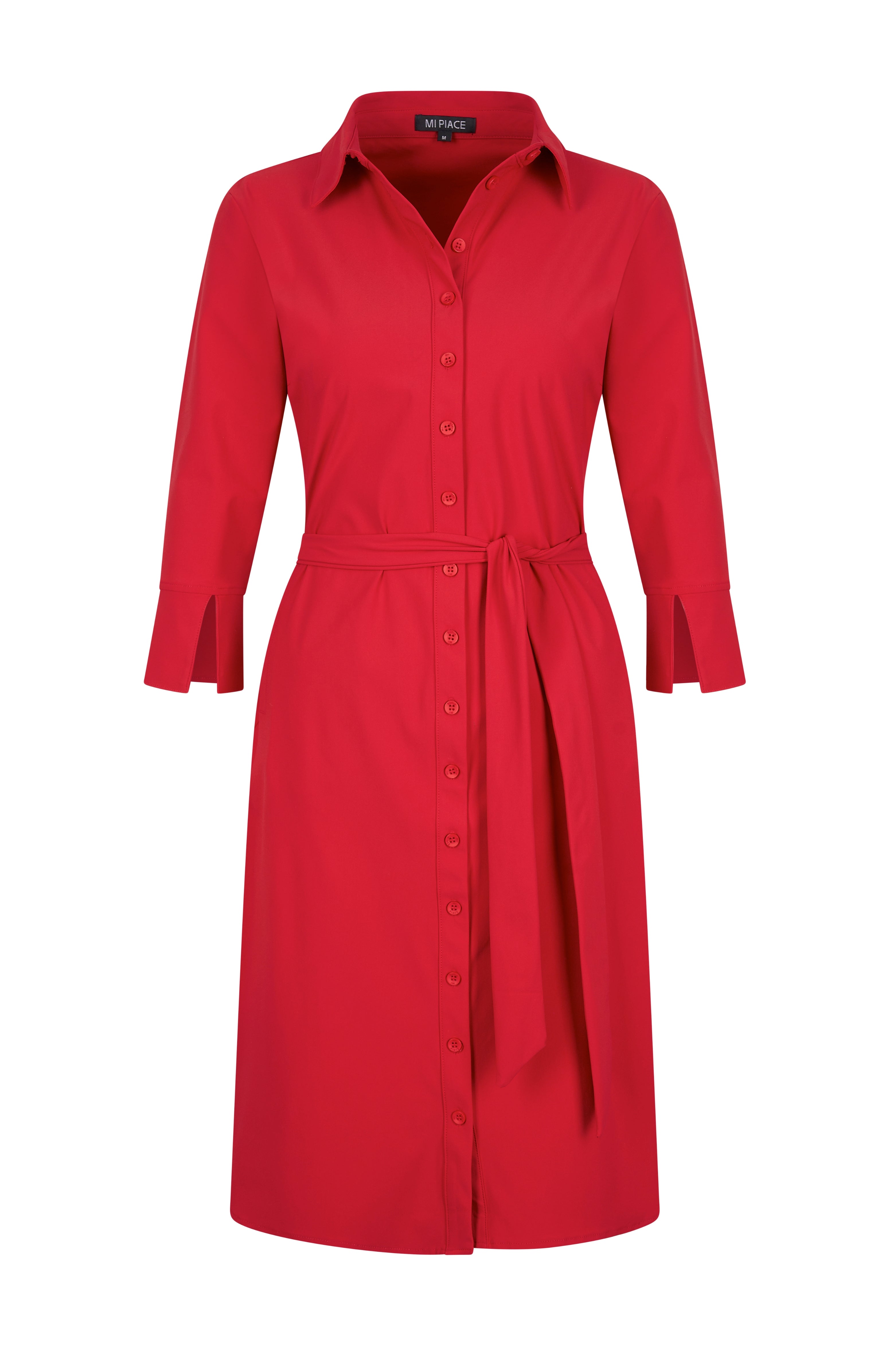 Deze verleidelijke rode travelstof jurk van Mi Piace is een ware blikvanger en een perfecte mix van comfort en stijl. De jurk, vervaardigd uit een soepele travelstof, staat garant voor een kreukvrij draaggemak en een uitstekende pasvorm door de stretchende kwaliteiten van de stof.