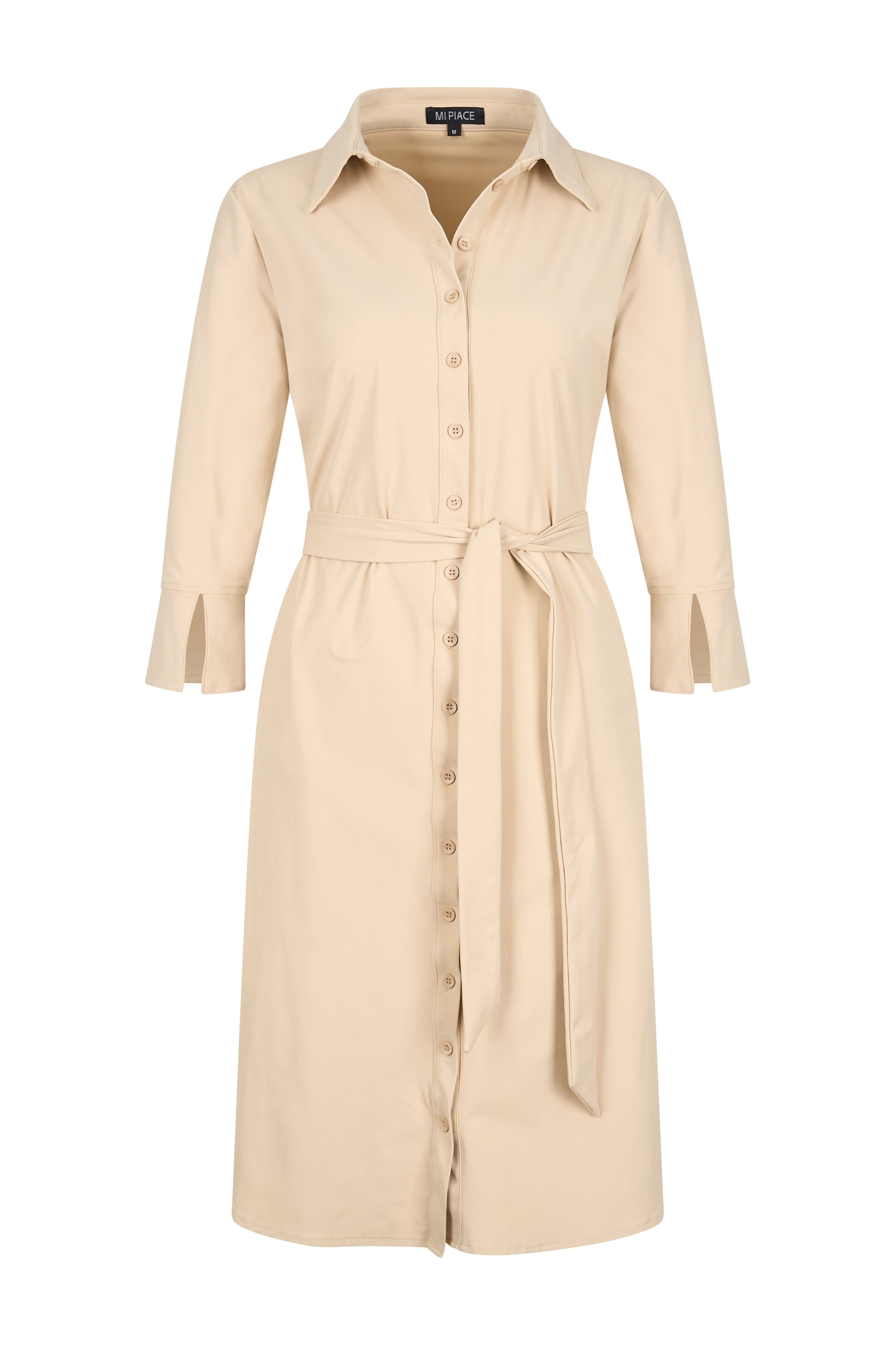 De Travel Jurk Sand van Mi Piace straalt elegantie en comfort uit. Gemaakt van soepele travelstof met stretch voor een perfecte pasvorm. De ceintuur accentueert de taille en de beige tint geeft een stijlvolle, tijdloze look.