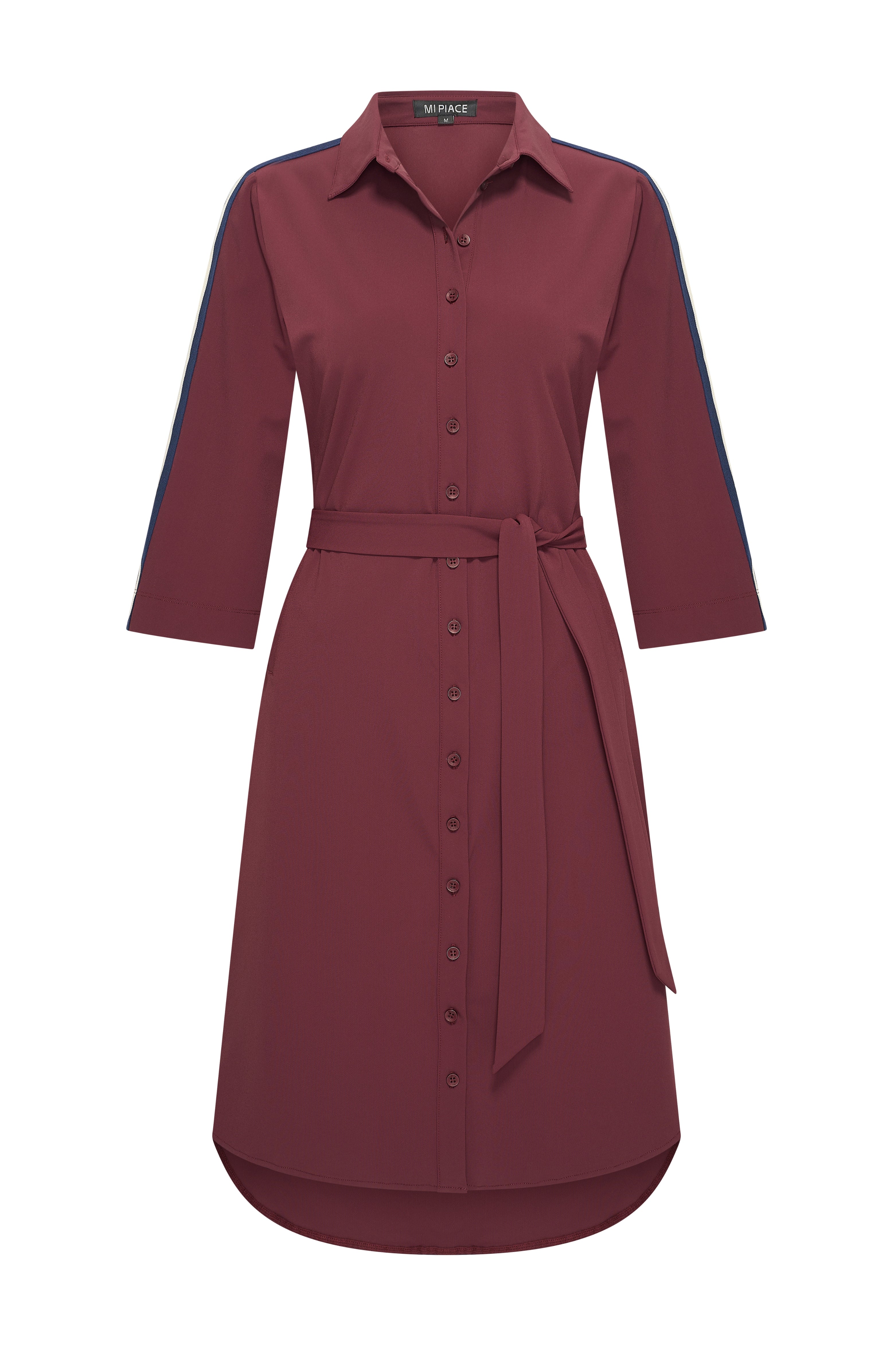 De Travel Jurk Tape Burgundy van Mi Piace combineert comfort met een sportieve twist. De doorknoopjurk heeft een flatterende fit, ceintuur in de taille en sportieve tape op de mouwen. Perfect voor een verzorgde, casual look!