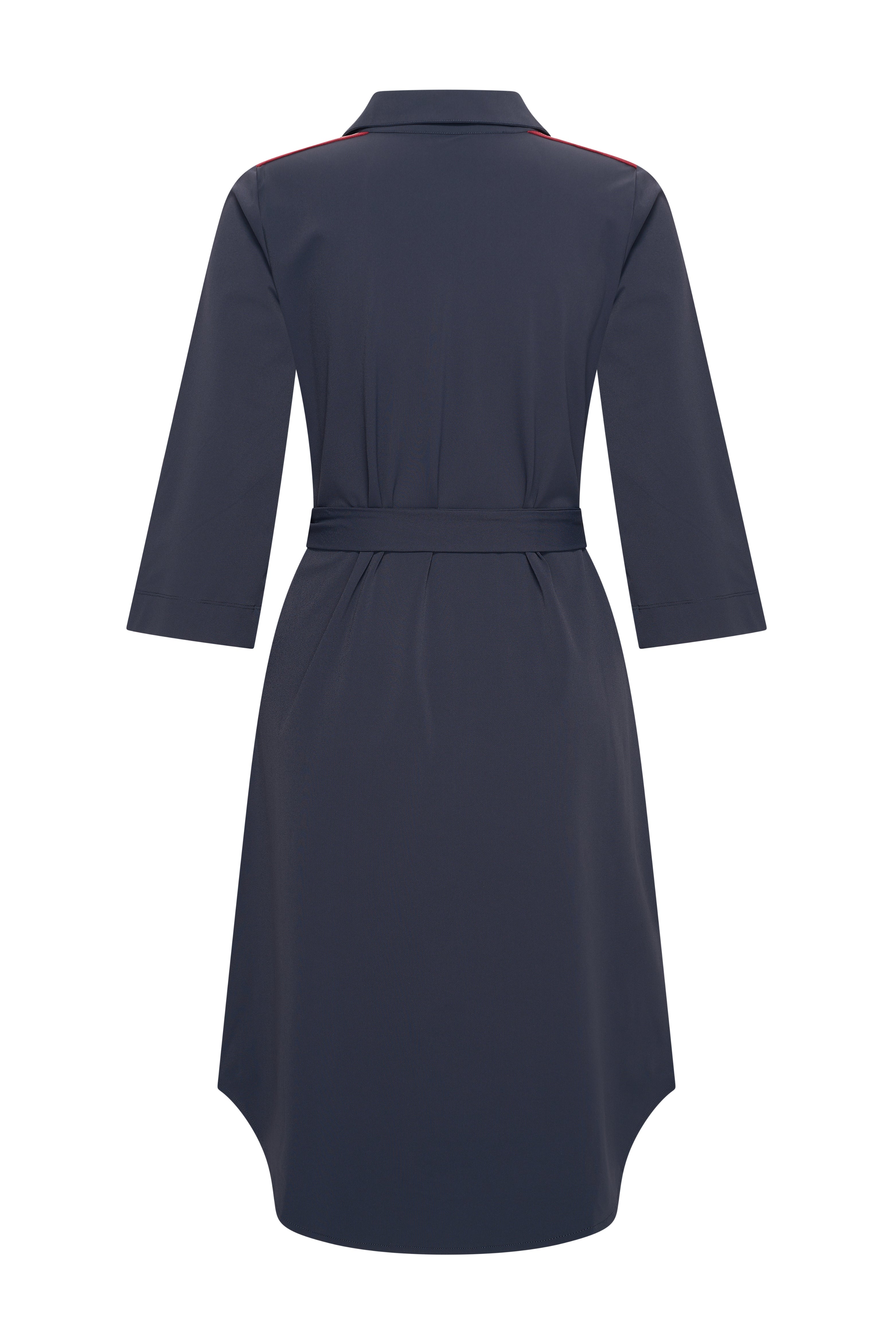 De Travel Jurk Tape Navy van Mi Piace is een sportieve doorknoopjurk met een vrouwelijke uitstraling. De contrasterende tape op de mouwen en het strikceintuur in de taille geven je look net dat beetje extra.