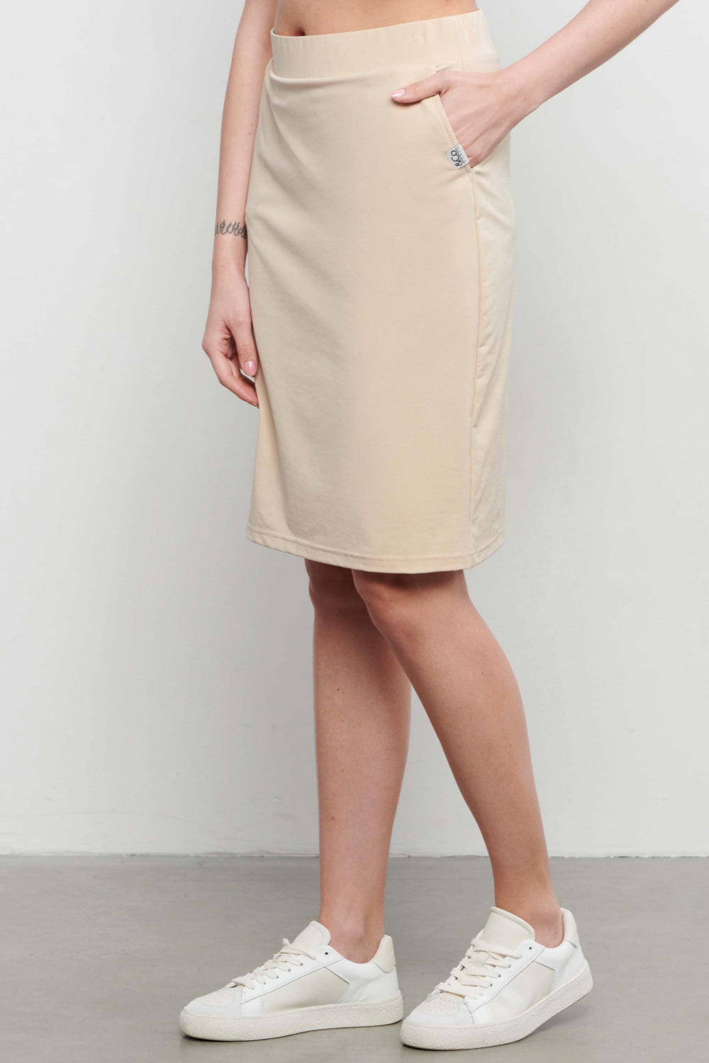 De "Travelstof Rok Pilar" van &Co Woman in de elegante zandkleur is de perfecte combinatie van stijl en functionaliteit voor de moderne reiziger. Deze rok is ontworpen om comfort en klasse te bieden, ongeacht waar uw dag u brengt.
