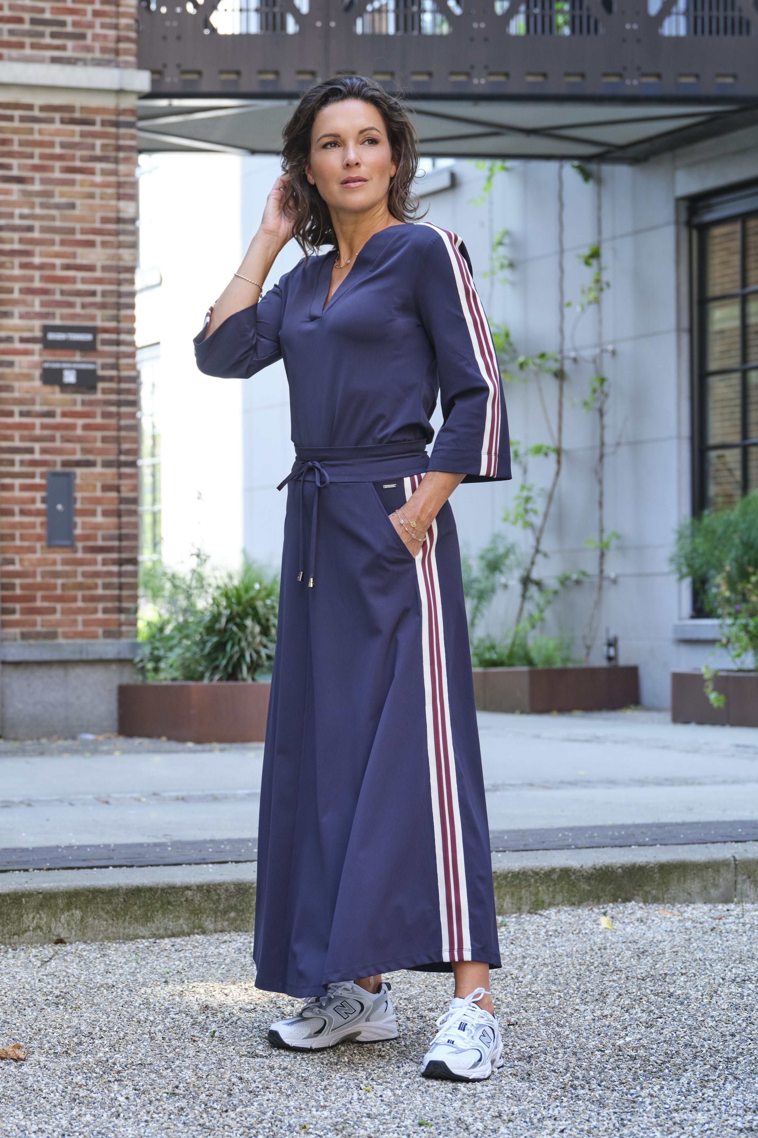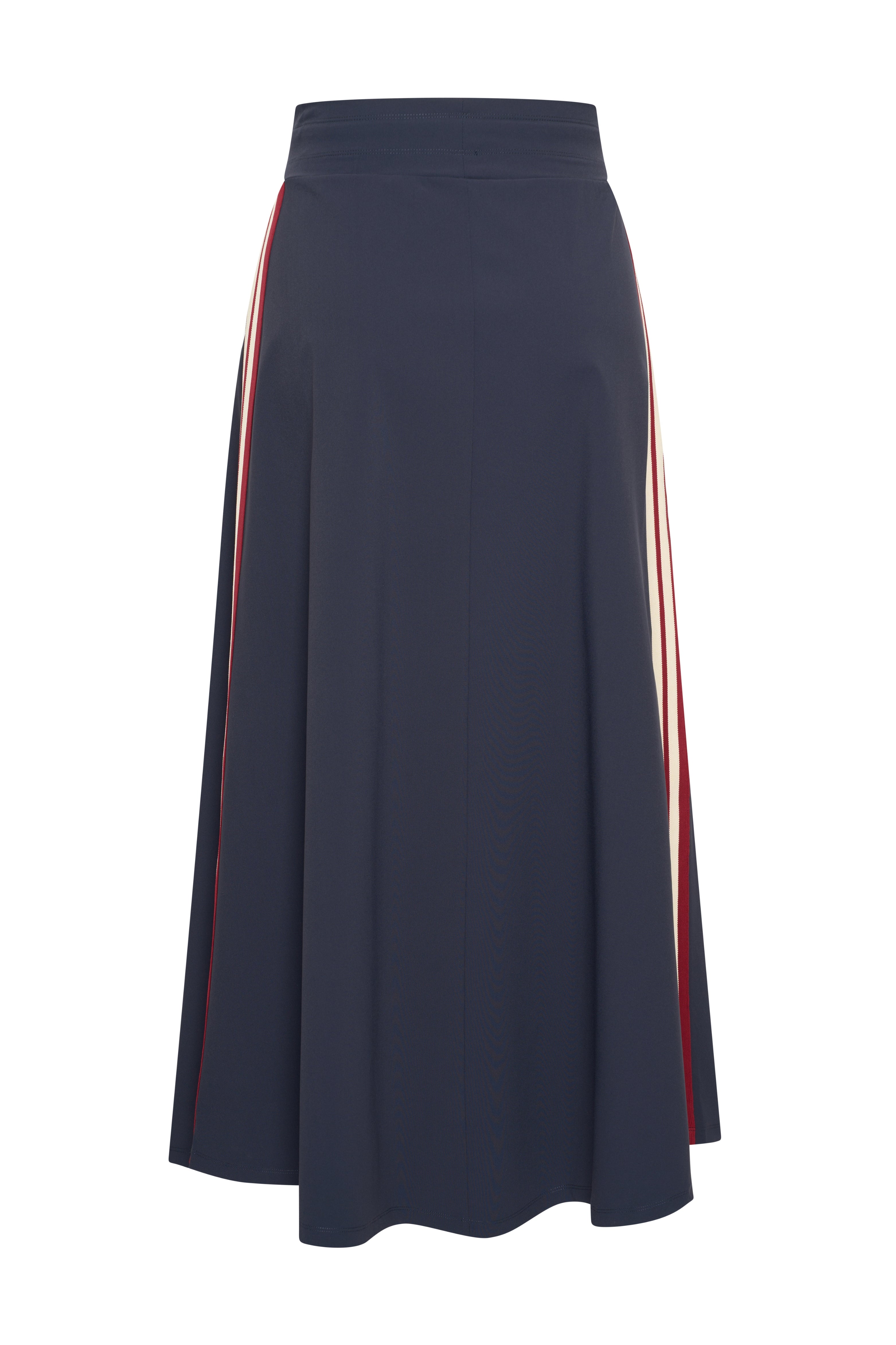 De Travel Rok Tape Navy van Mi Piace is een elegante midi-rok met een comfortabele pasvorm. Dankzij de elastische tailleband met strikkoord draag je ‘m de hele dag moeiteloos stijlvol.