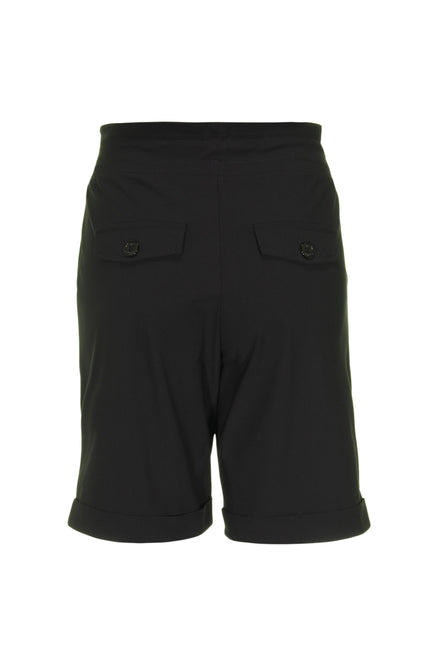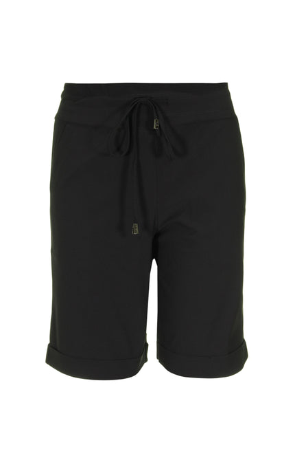 Deze elegante travelstof short van het merk Mi Piace is een perfecte mix van stijl en comfort. Uitgevoerd in klassiek zwart, is deze short gemakkelijk te combineren met verschillende tops en schoenen. De short heeft een elastische tailleband met trekkoord voor een verstelbare en comfortabele pasvorm.